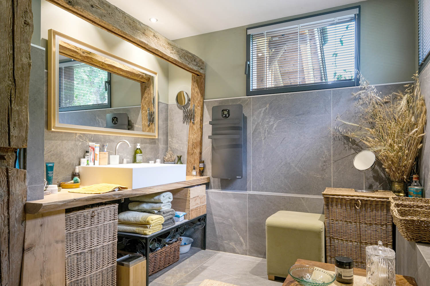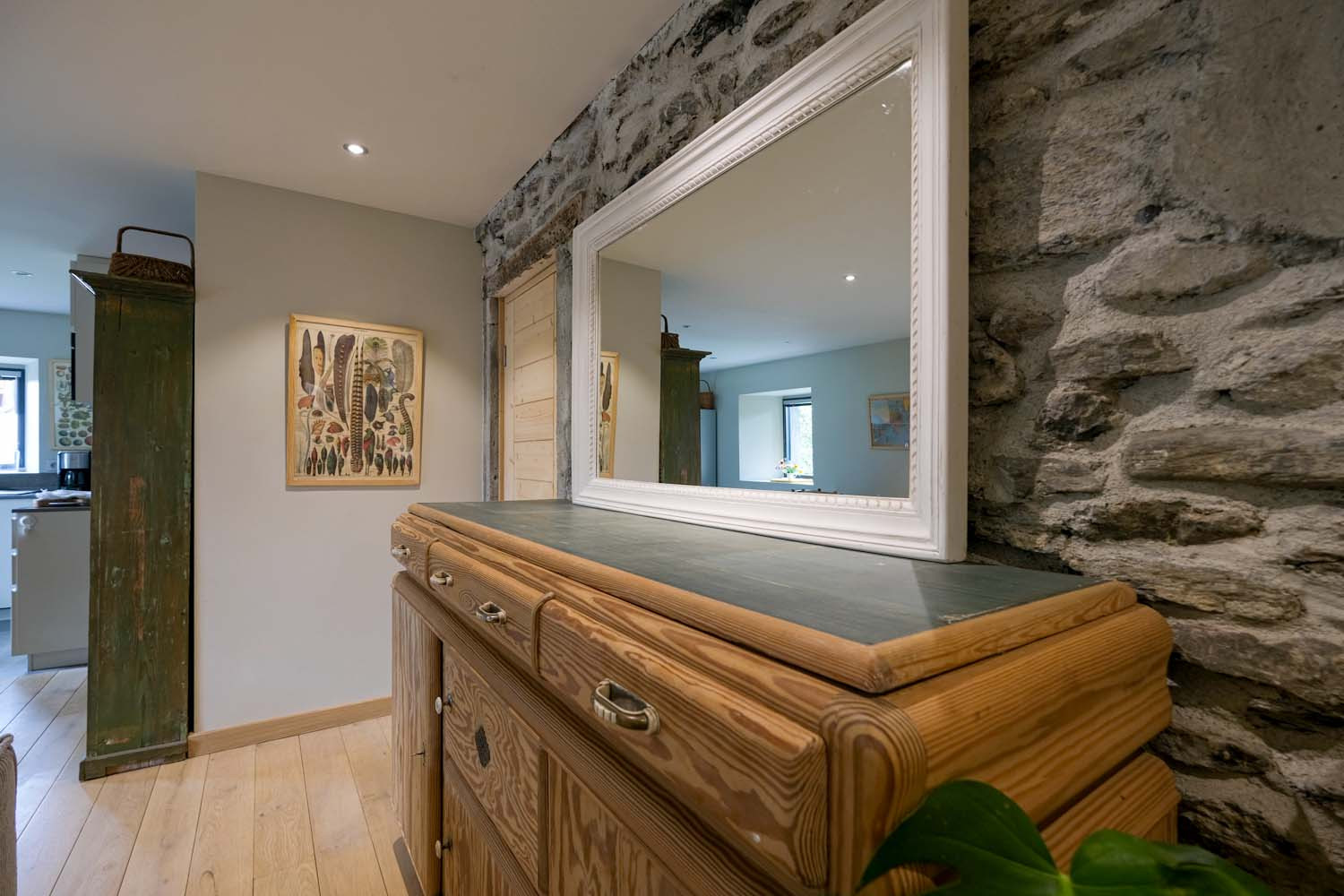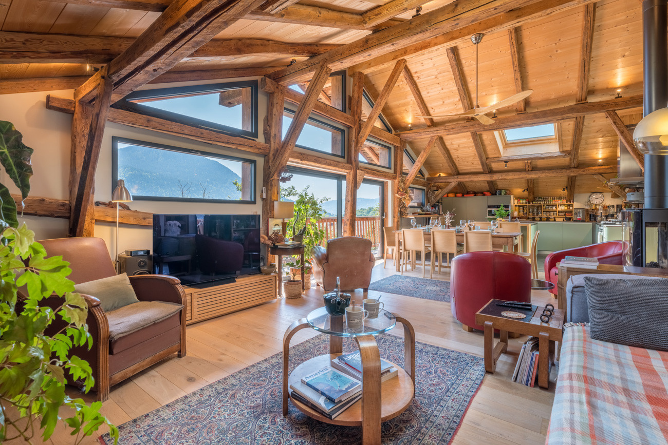 Le Mont Farm is an old farm building with foundations dating back to the 1700’s, up on the hills overlooking Servoz. It has been painstakingly restored by its owners, retaining many original features such as stone walls and solid wooden doors. The years of work has resulted in a beautiful, warm and sophisticated, personal style and yet it is somewhat playful in its design. You will find modern and classic furniture with a mixture of subdued colours, old and new wood and stone walls.