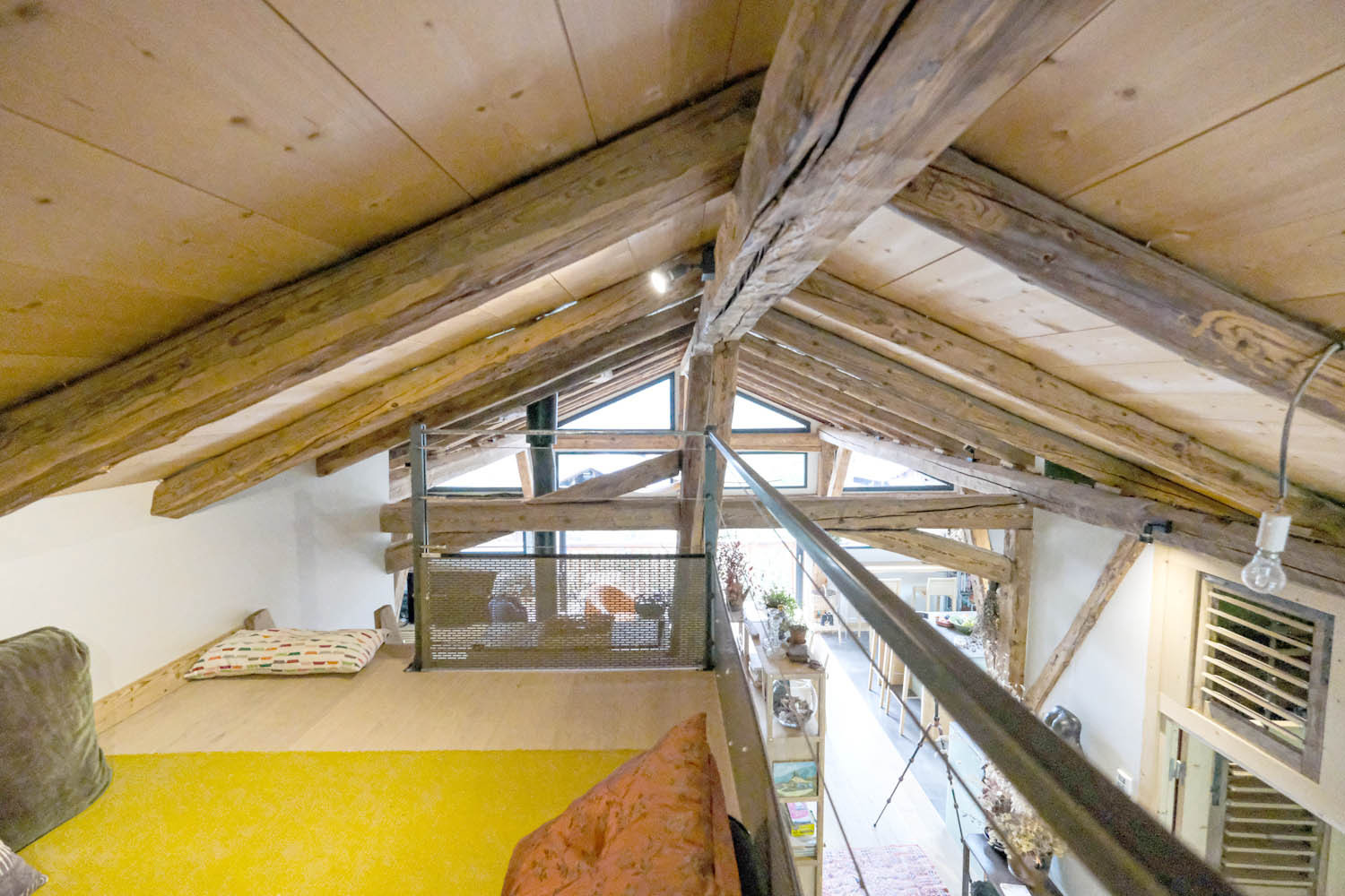 There are 2 large double bedrooms and 2 shower rooms (one en-suite). If you want to sleep a couple more, there is space to sleep 2 extra people on a mezzanine level. Access to this space is up a ladder and it has quite open edges so it is not suitable for younger children, and with the lower ceiling height we would recommend it is only used for visitors and not long term sleepers.