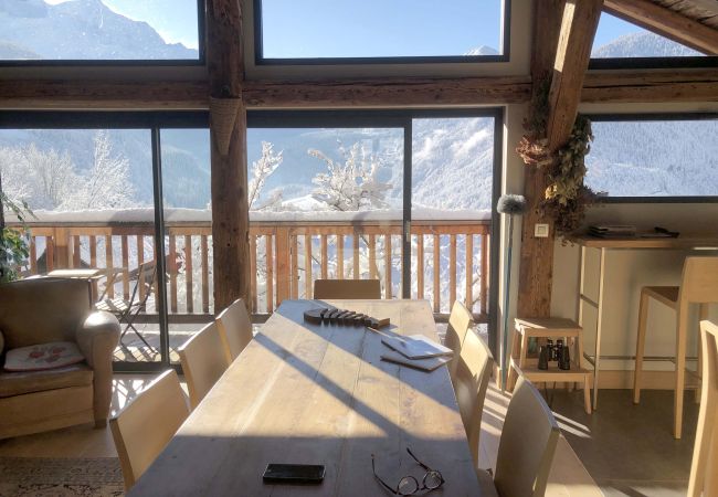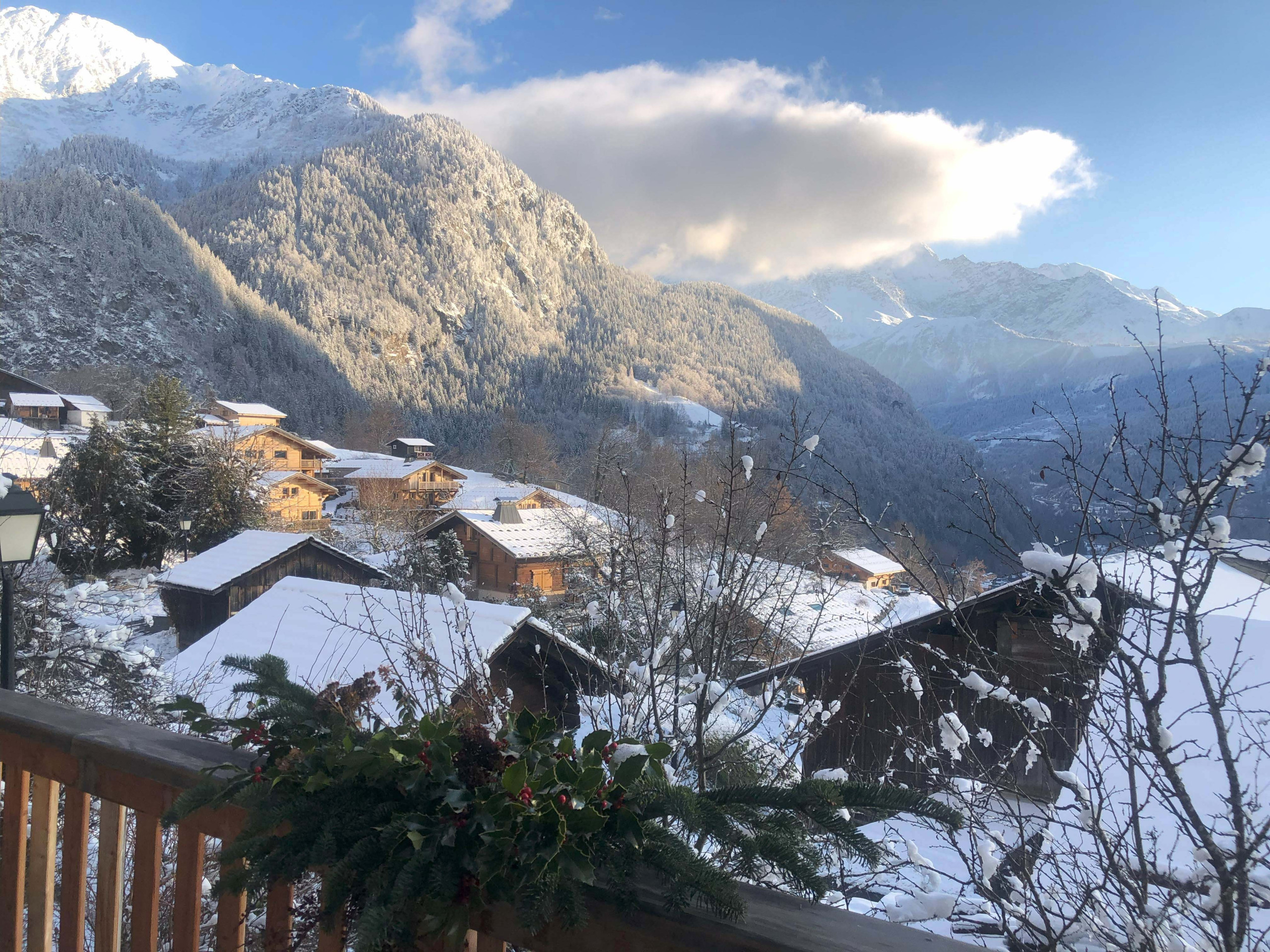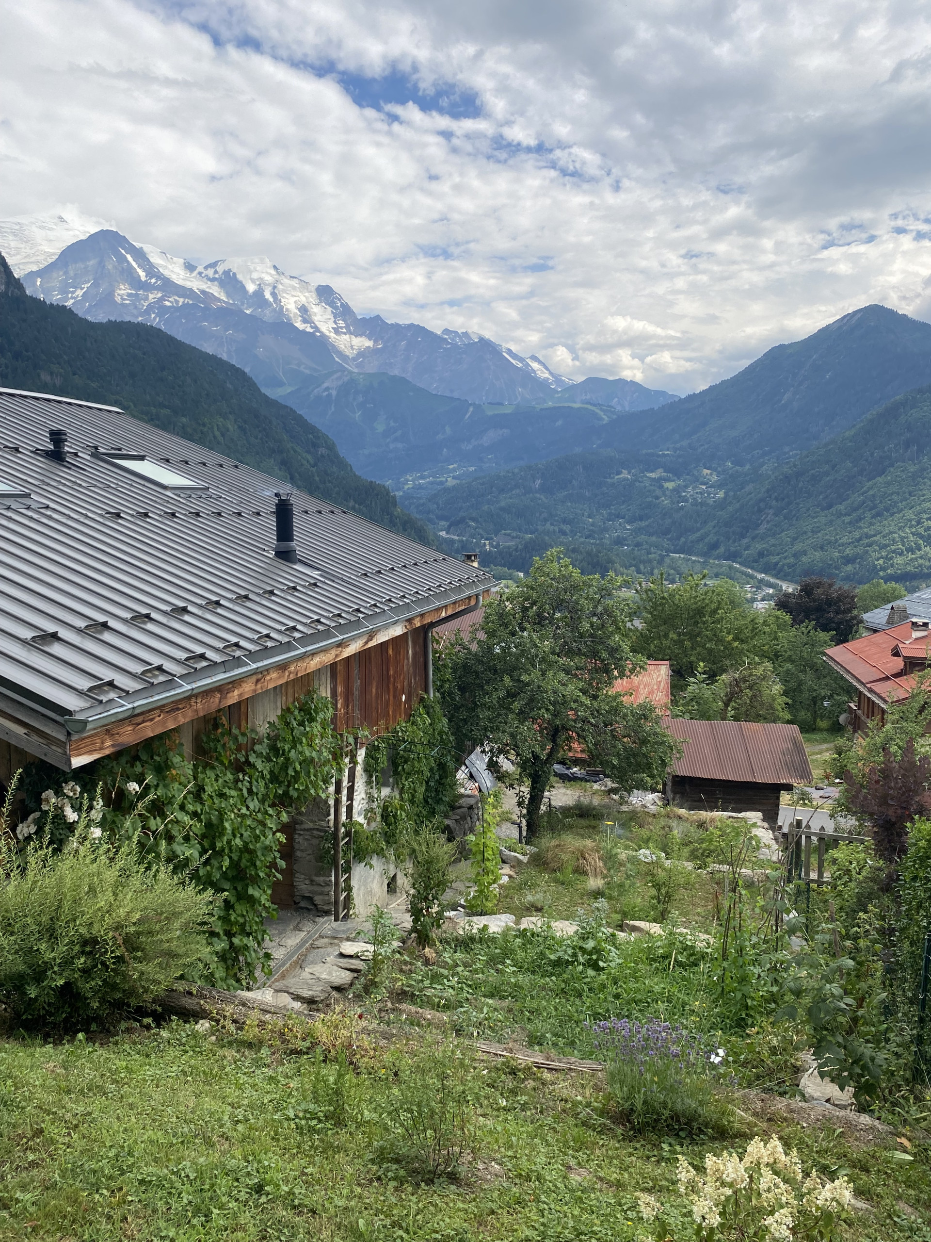 Le Mont Farm is located in the pretty hamlet of Le Mont, south facing, overlooking the village of Servoz and Mont-Blanc.