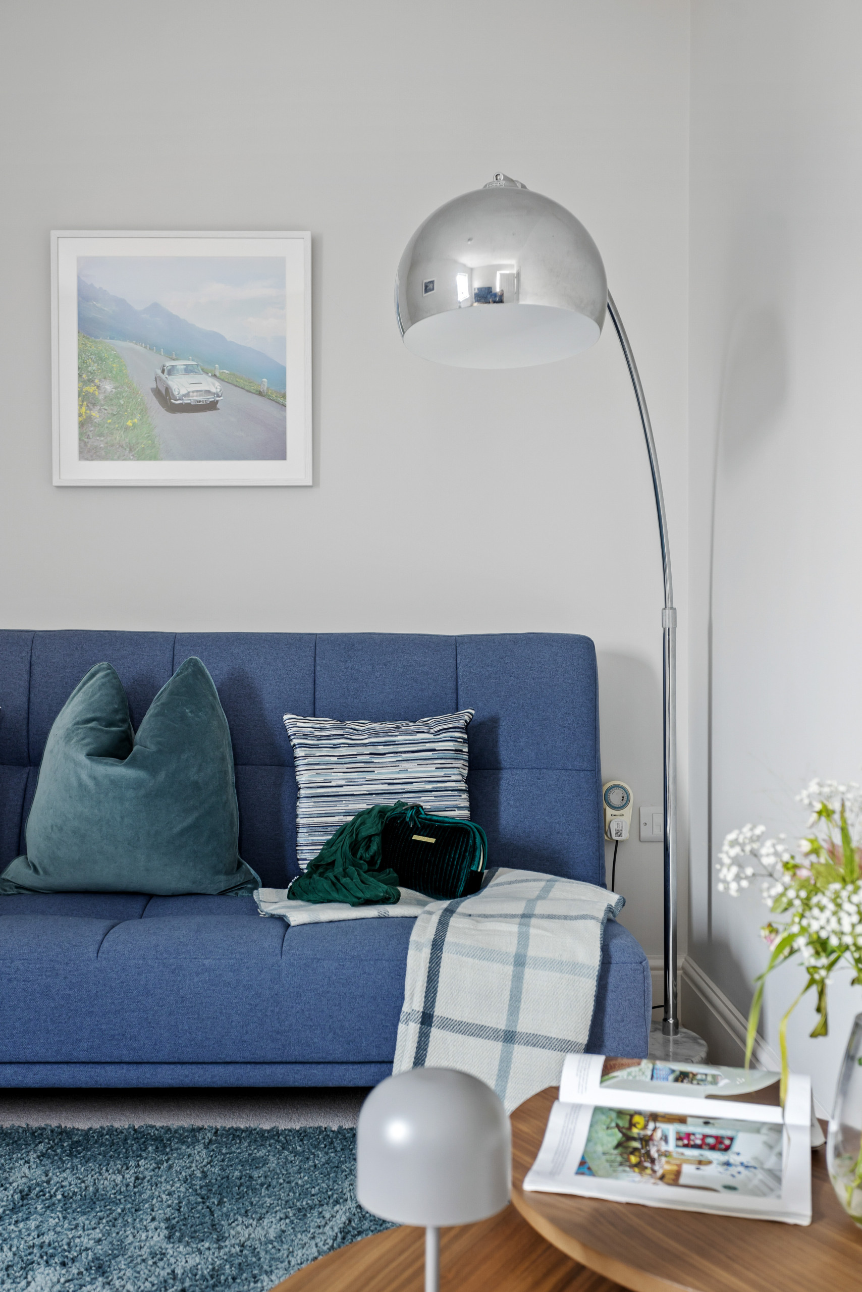 Bedroom: Upstairs, a spacious and serene bedroom with a sumptuous king-size bed dressed in crisp, hotel-quality linen and plump pillows. Built-in storage makes it easy to unpack and feel at home.