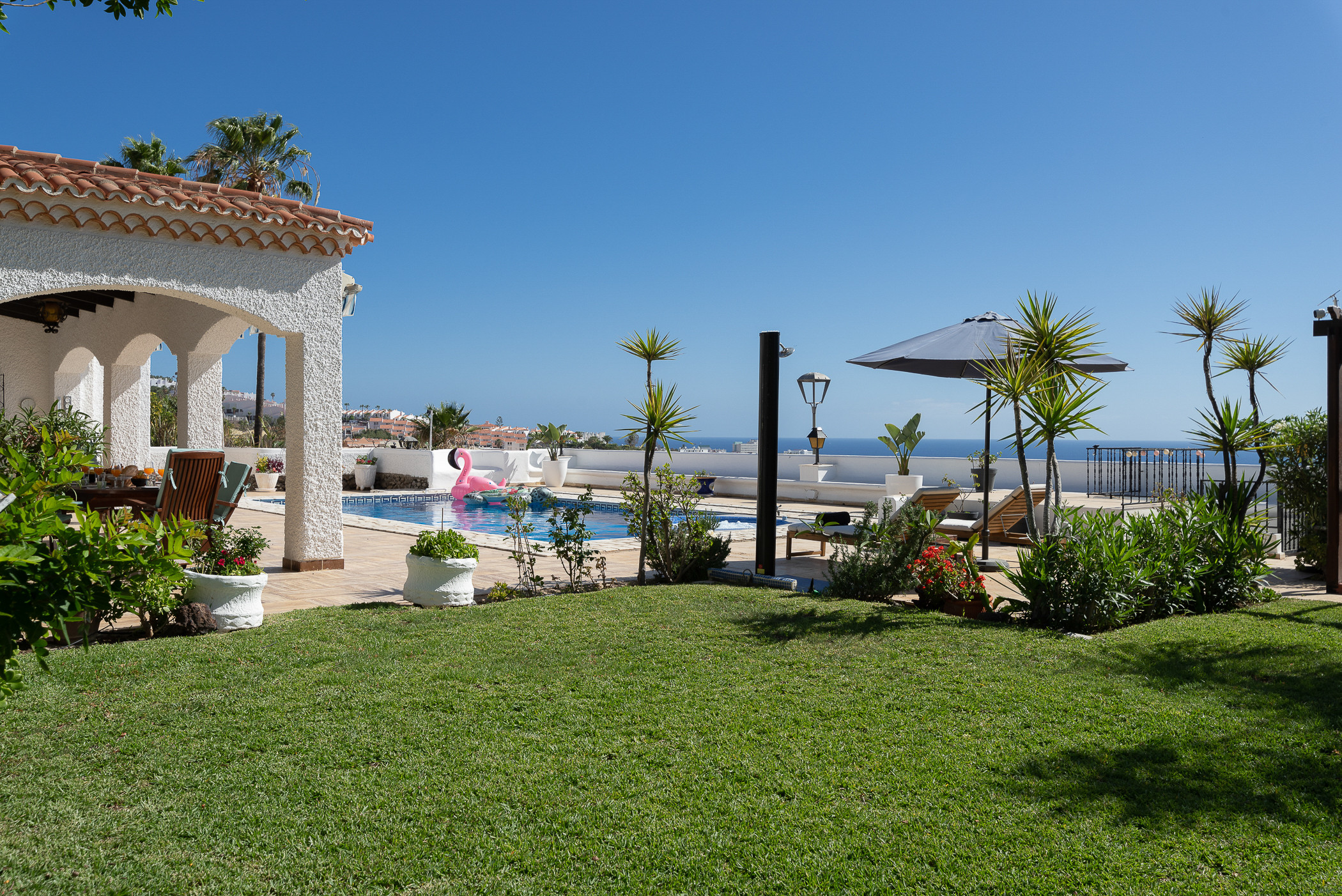The exterior is as generous as the interior: on the ground floor you will find a refreshing heated swimming pool, an elegant table for outdoor dinners, a modern barbecue and a perfectly maintained garden with loungers that invite rest. On the upper floor, the private terrace will be your favourite corner to enjoy postcard sunsets and starry nights under the Canarian sky.
