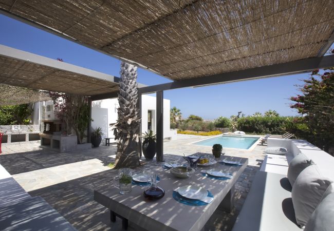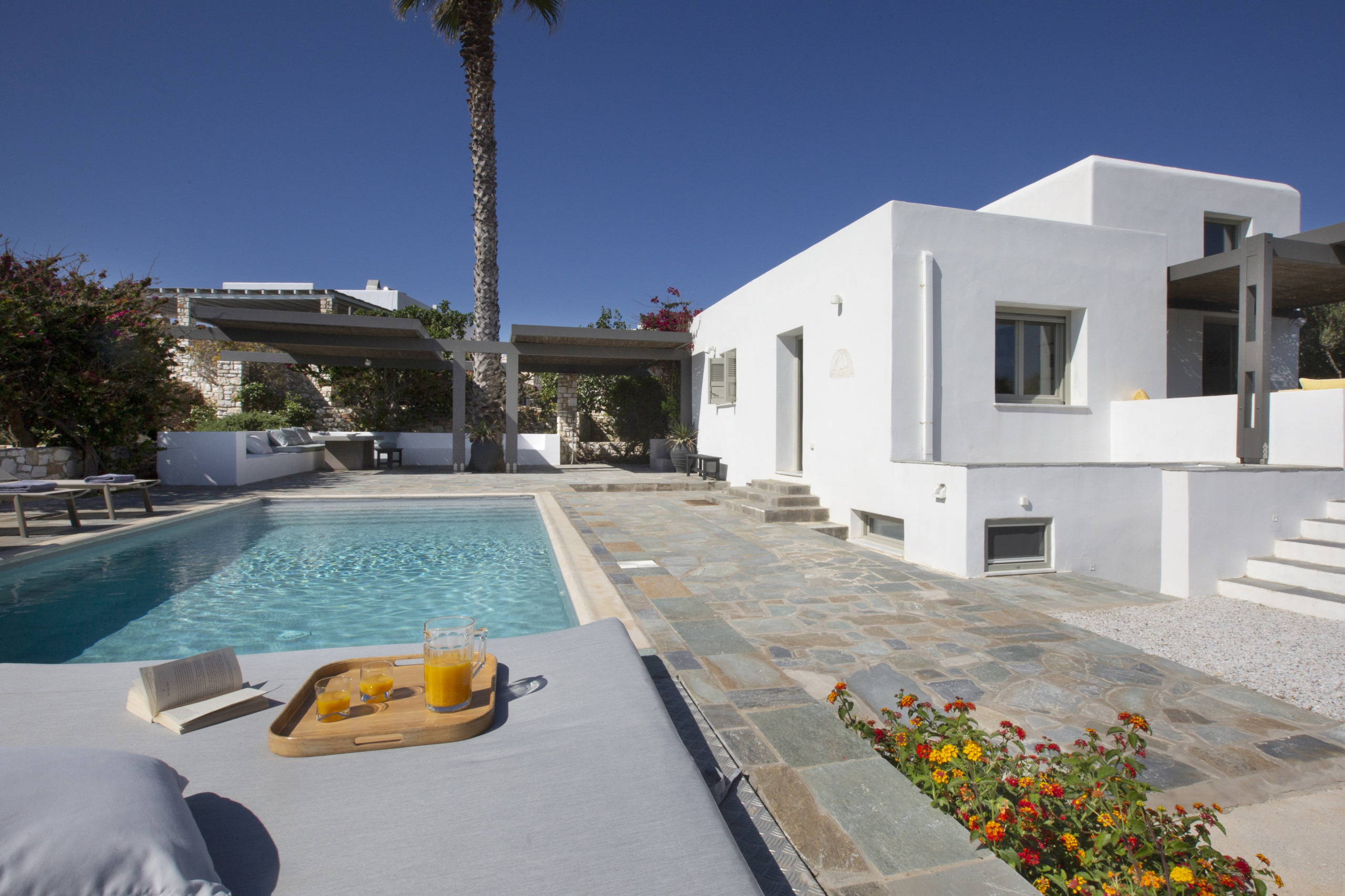 Respecting the minimal Cycladic architecture this is a rare gem, a simply luxurious choice for a big family or small group of friends. Ideally situated next to two stunning beaches, this is a magnificent villa that will lift your spirits and give you wonderful memories.