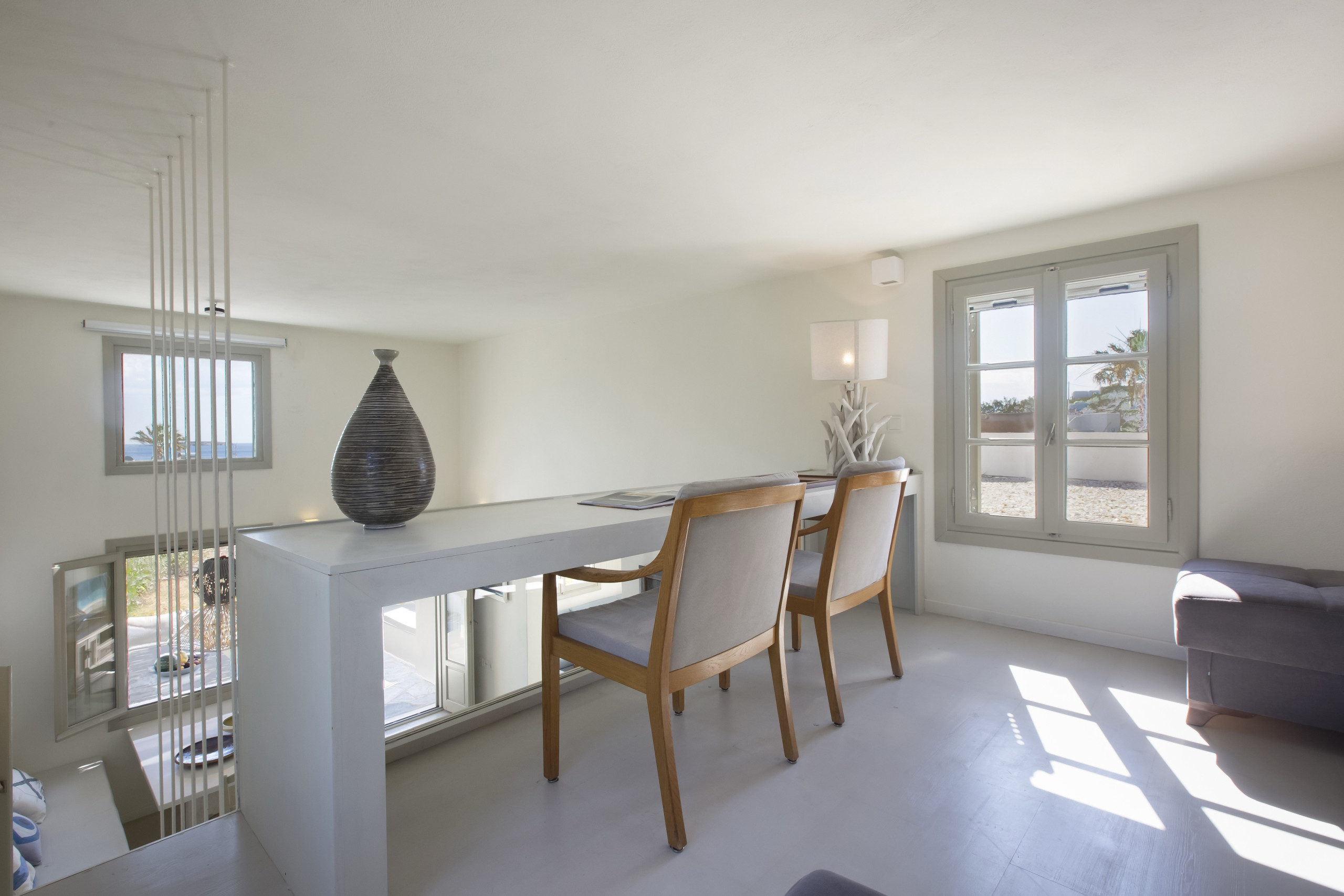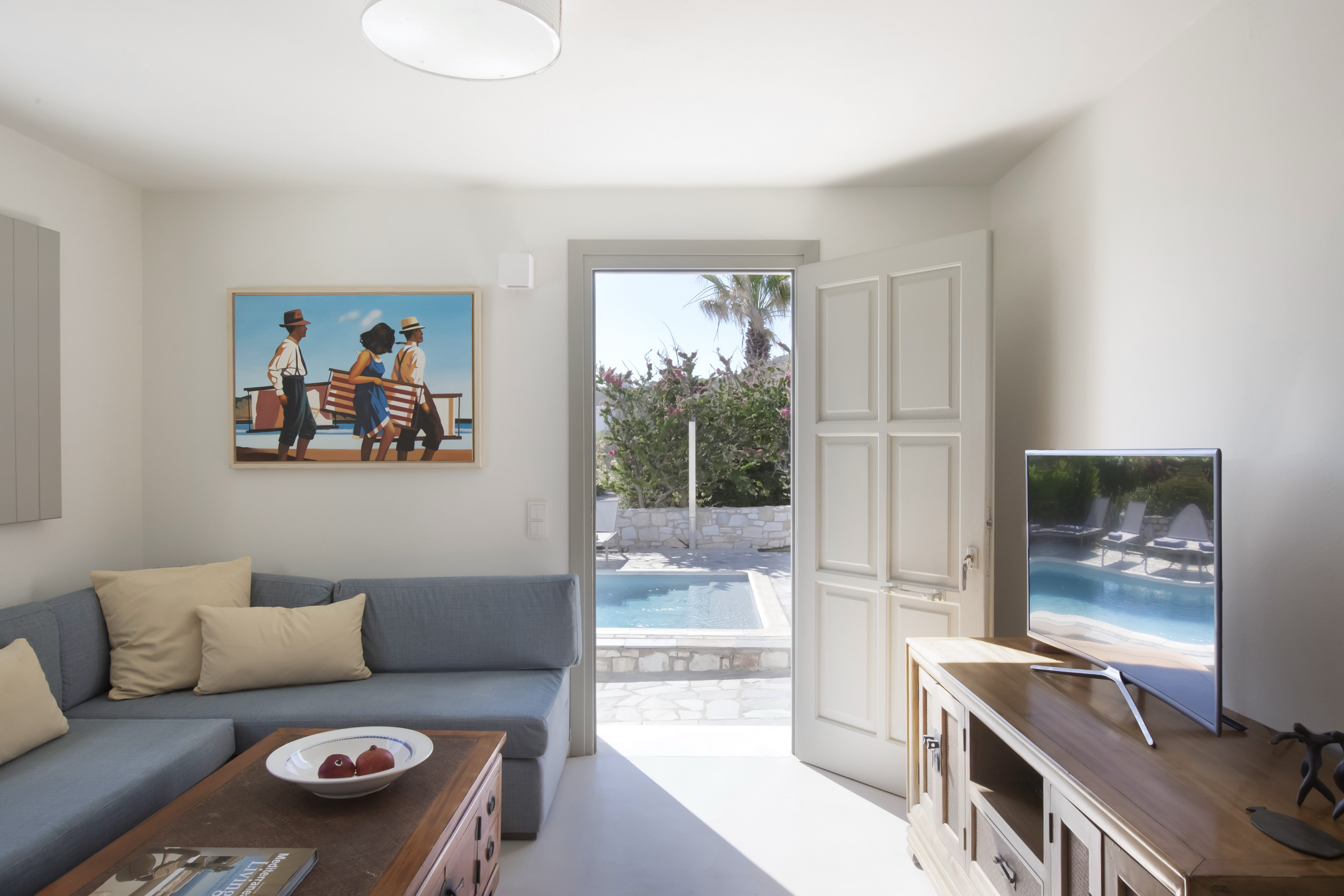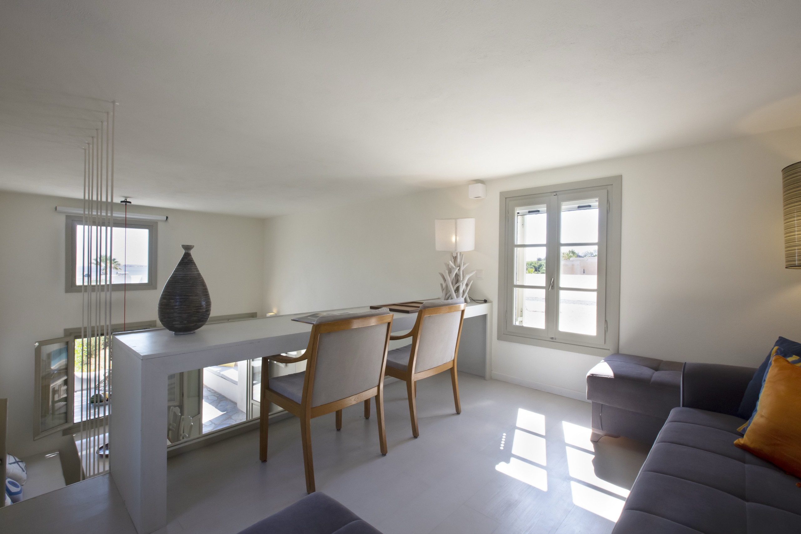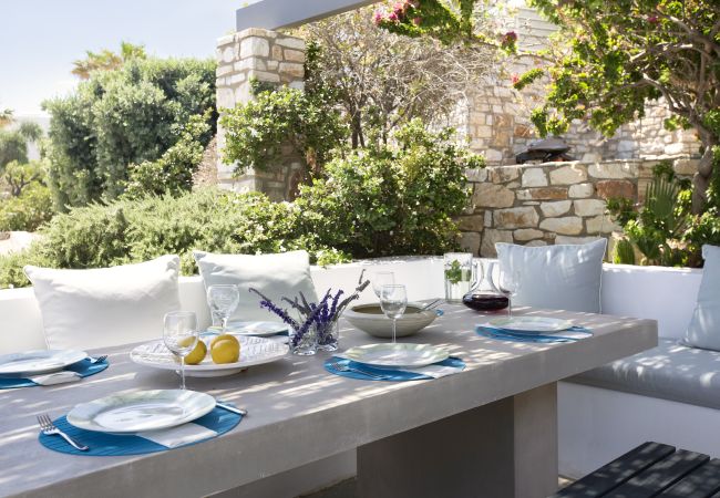 Ambelas is a charming fishing village, a few minutes’ drive from Naousa town. There is a picturesque port, lovely beaches and plenty of tavernas offering the day’s catch. Some of Paros’ best known beaches, such as Santa Maria and Kolimbithres are just a short drive away. The village also has a riding school, a yoga and meditation centre and shops for necessities. It is a great spot for those wanting to explore Paros’ hillside traditional villages like Lefkes. The villa is located in a residential area within walking distance of Ambelas.
