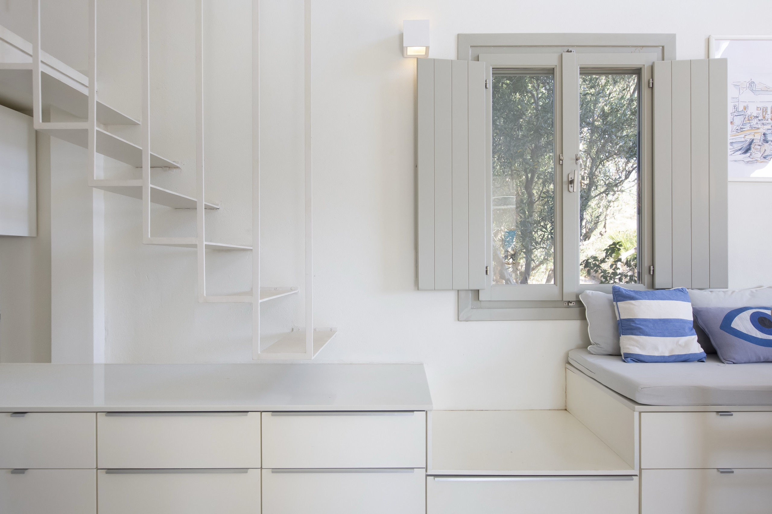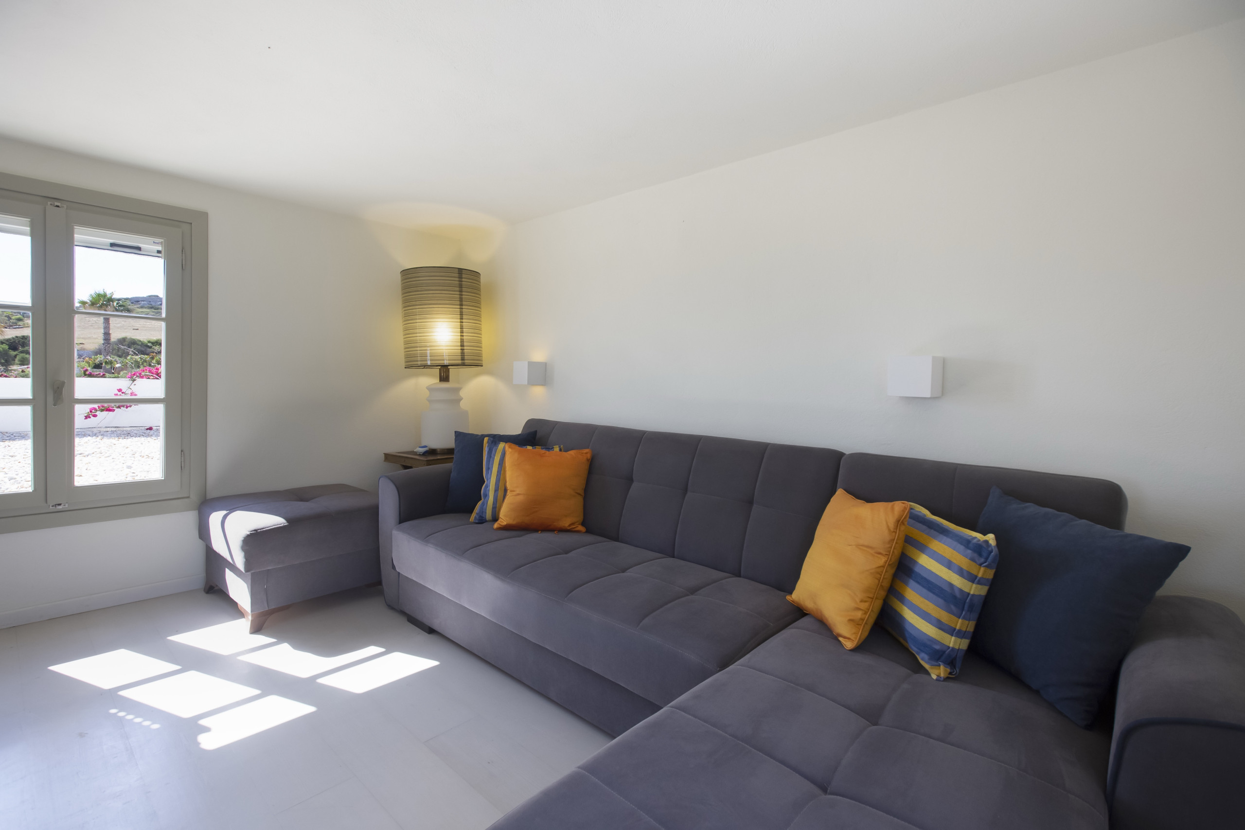 This all-white villa has been recently renovated to a very high standard. Its minimal, designer interiors are very spacious and full of light. You will have exclusive use of the villa and its very large garden with lovely sea views. The extensive outdoors areas are the perfect spot to relax after a day on the beach and gaze at the stars in the warm summer nights. You can barbeque, eat, relax or party outdoors, day or night, under the shaded terraces.