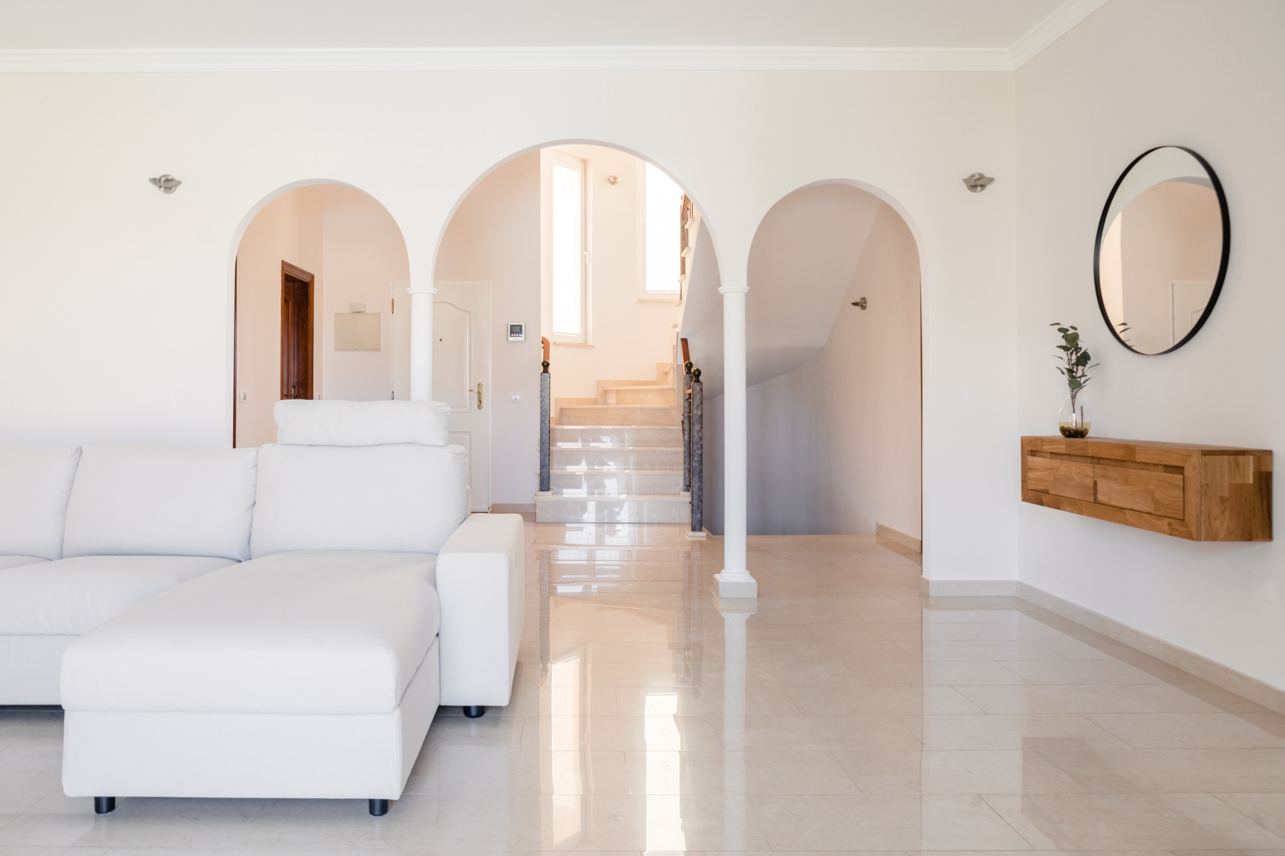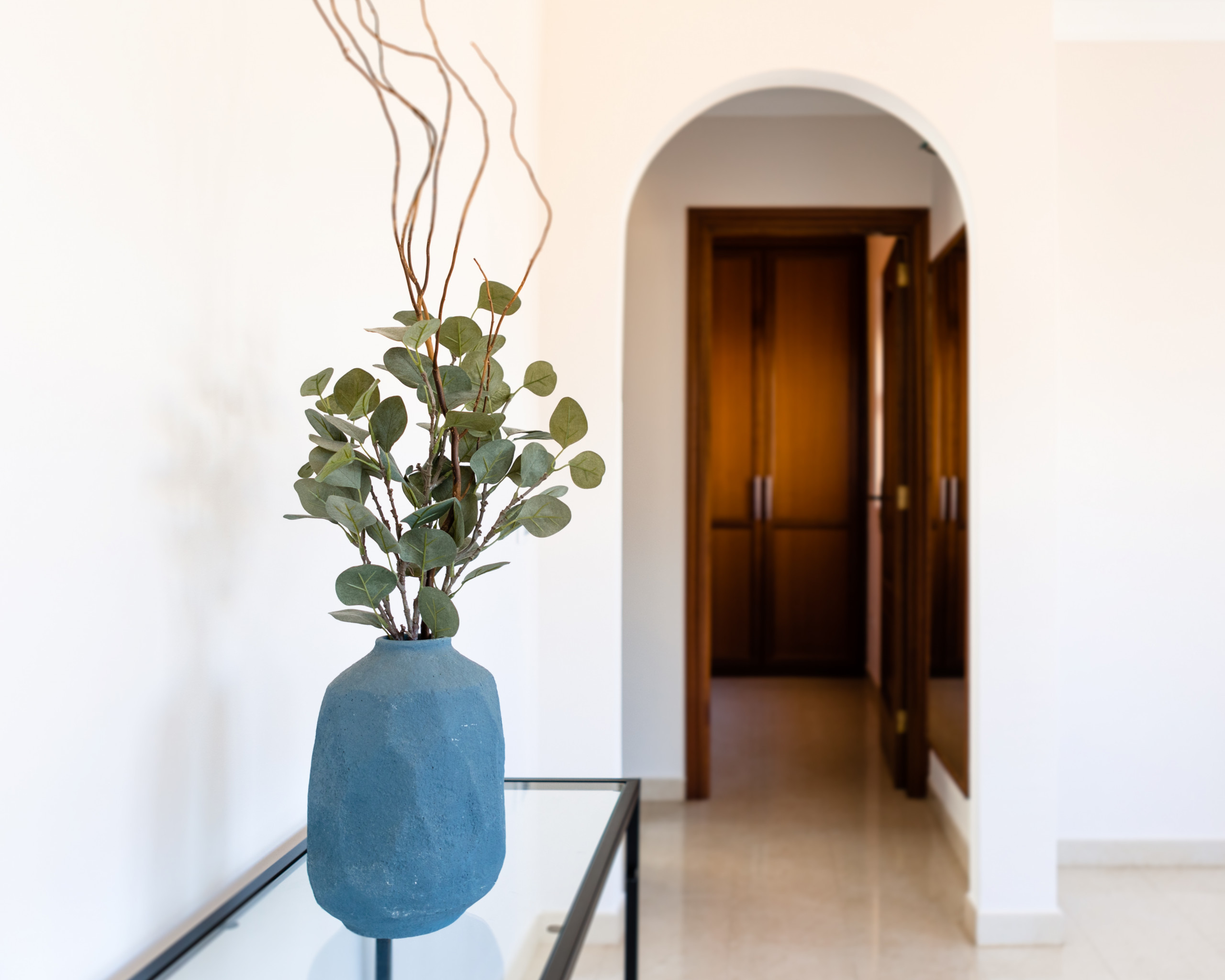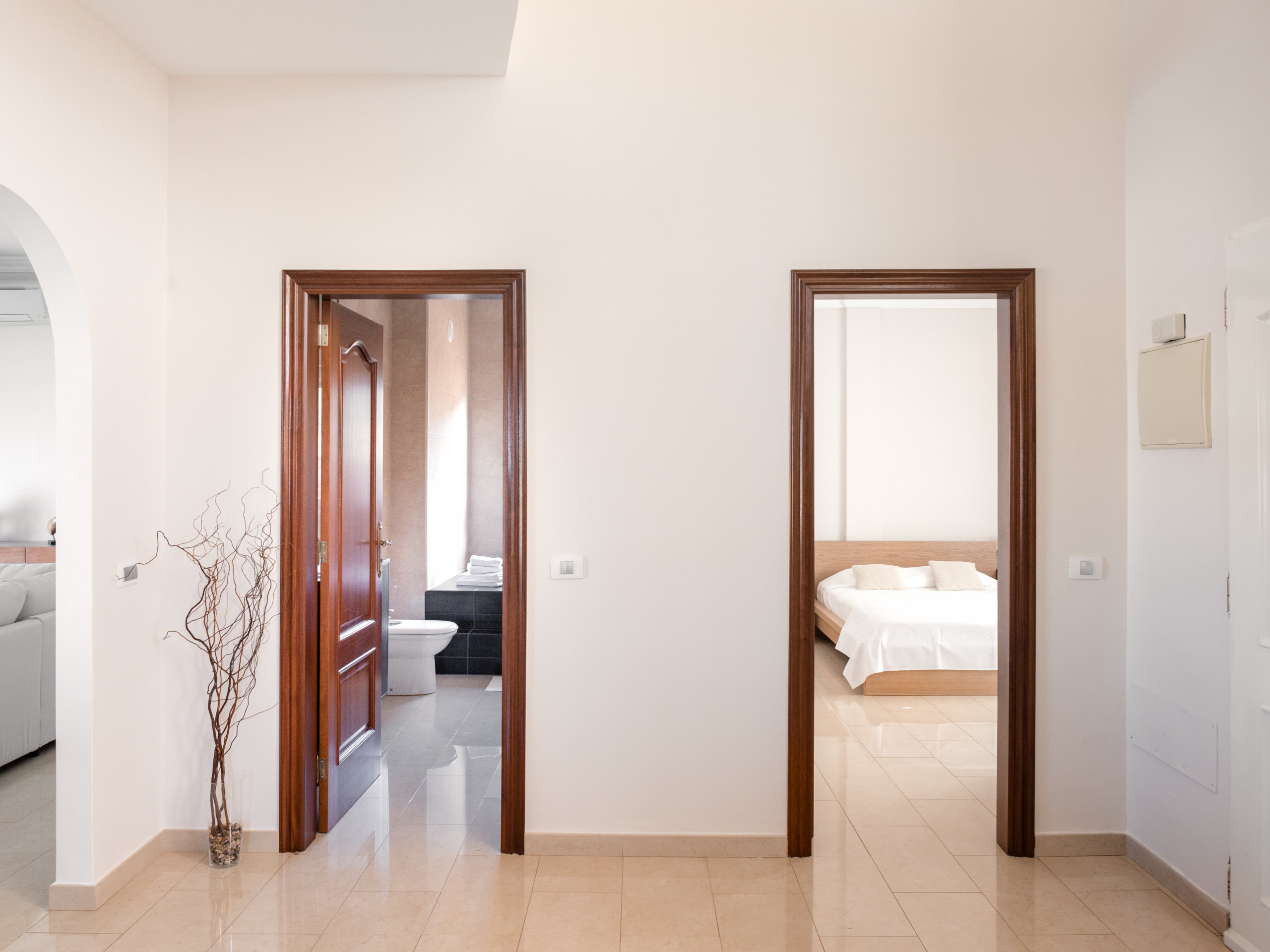 Distributed over three floors and connected by elevator, this villa can comfortably accommodate up to 10 people. It has four main suites, all with en-suite bathrooms, as well as a fully equipped independent apartment with bedroom, bathroom, kitchen and living room. In total, the property has 7 bathrooms, in addition to spaces dedicated to relaxation and wellness such as a Turkish bath (hammam), private jacuzzi in the master suite and a spectacular heated swimming pool.