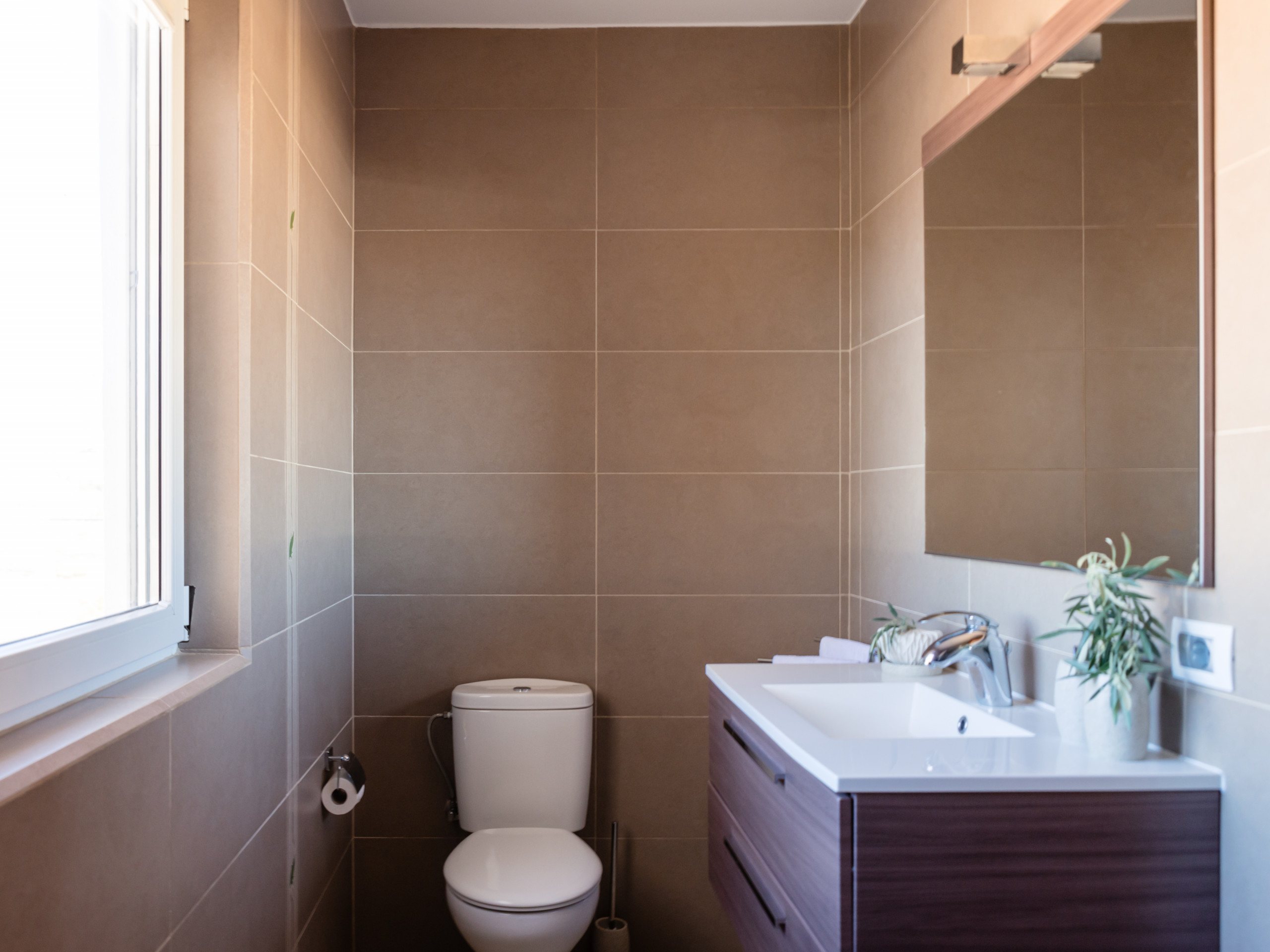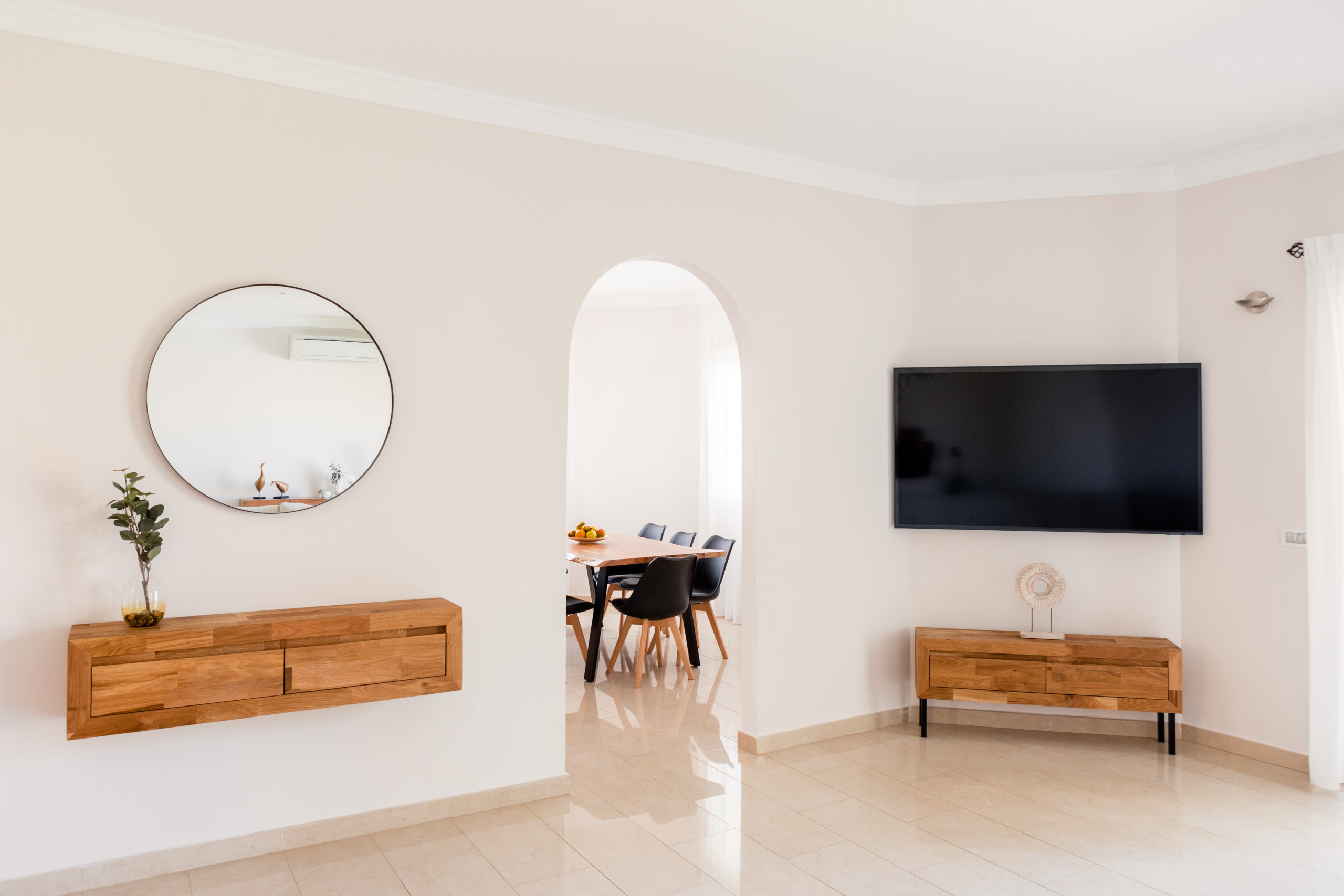 The villa can accommodate 8 adults and up to 9 people in total, distributed in 3 bedrooms with 5 beds: 3 queen size beds, 1 sofa bed and 1 extra bed. Each space is designed to ensure maximum comfort and rest.