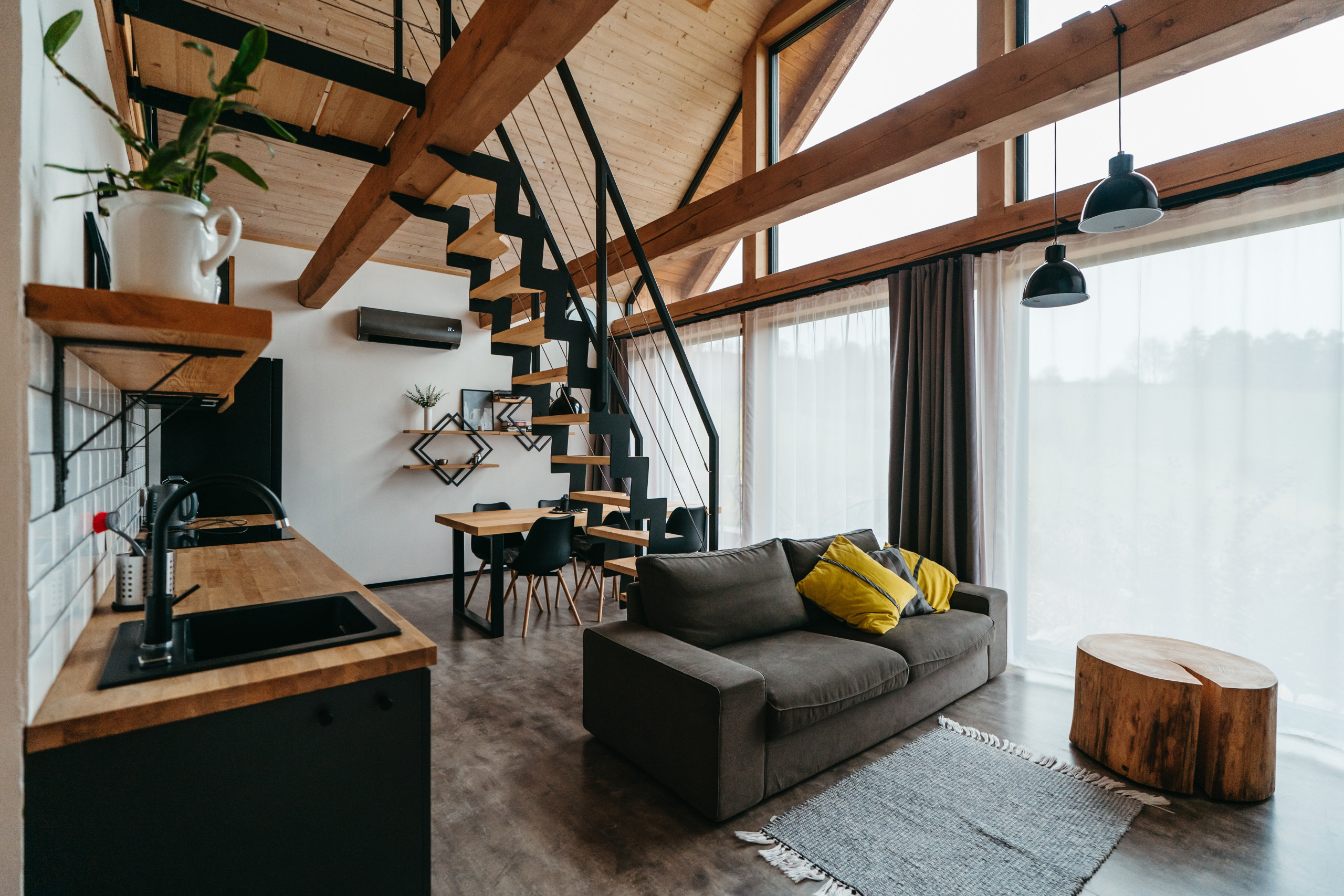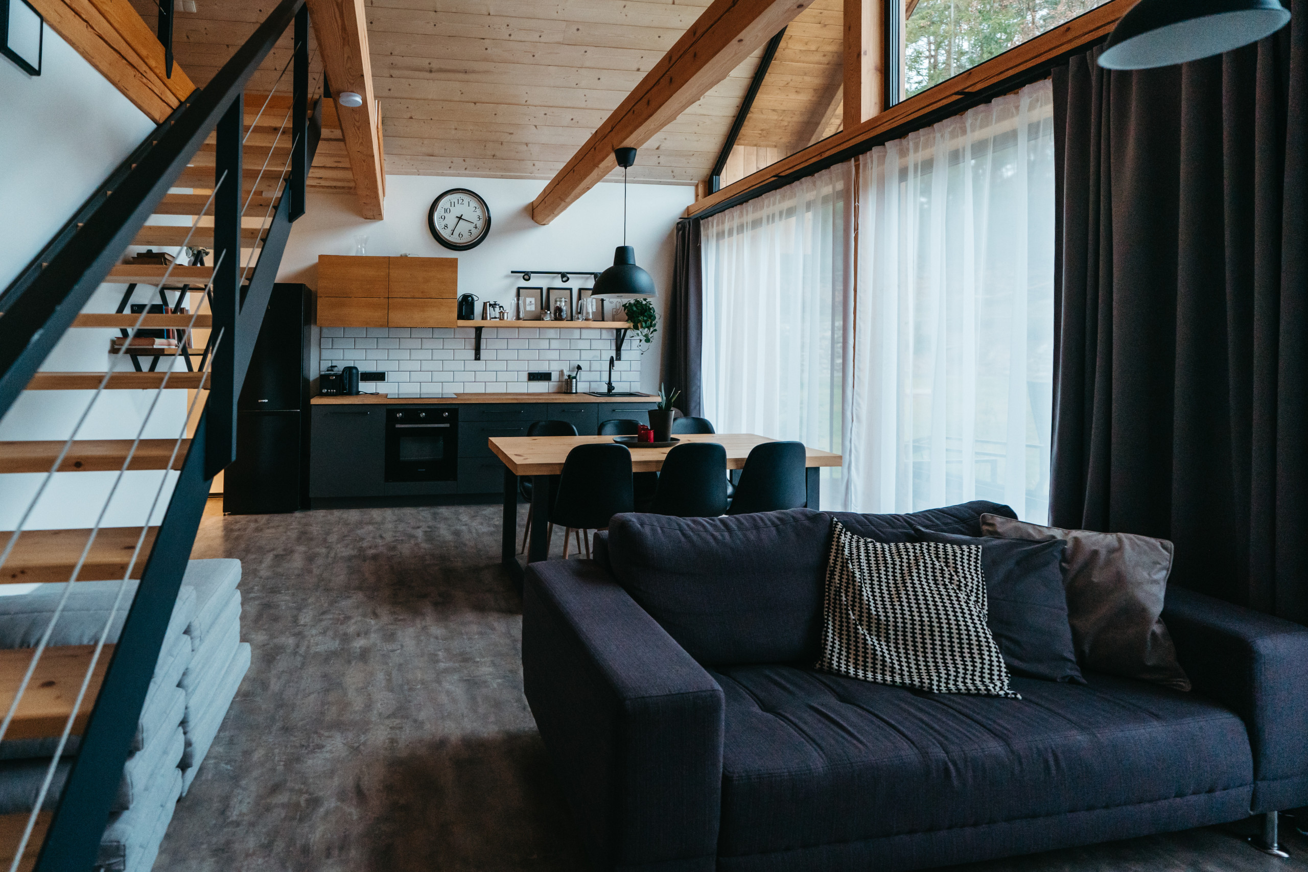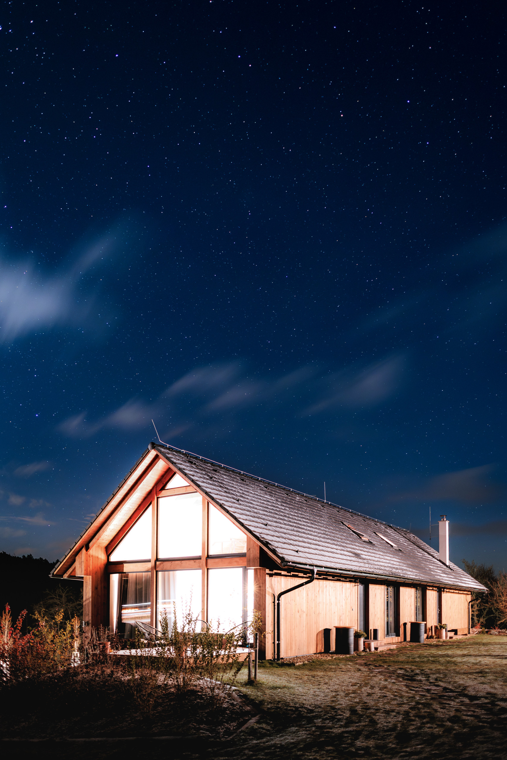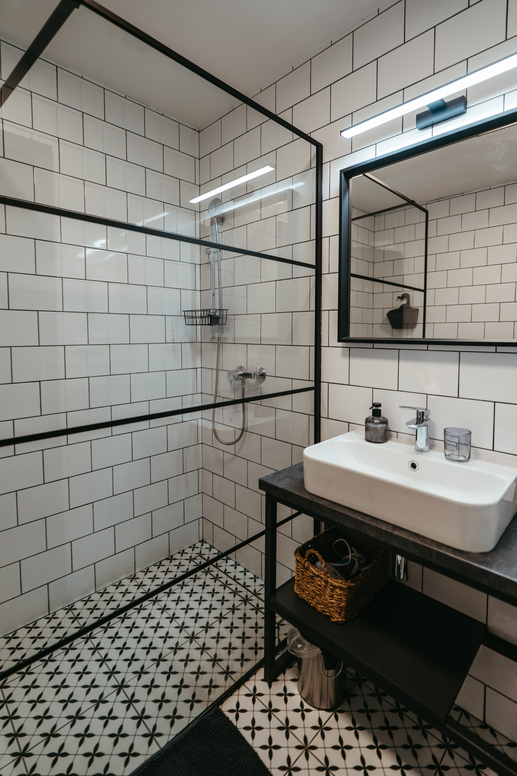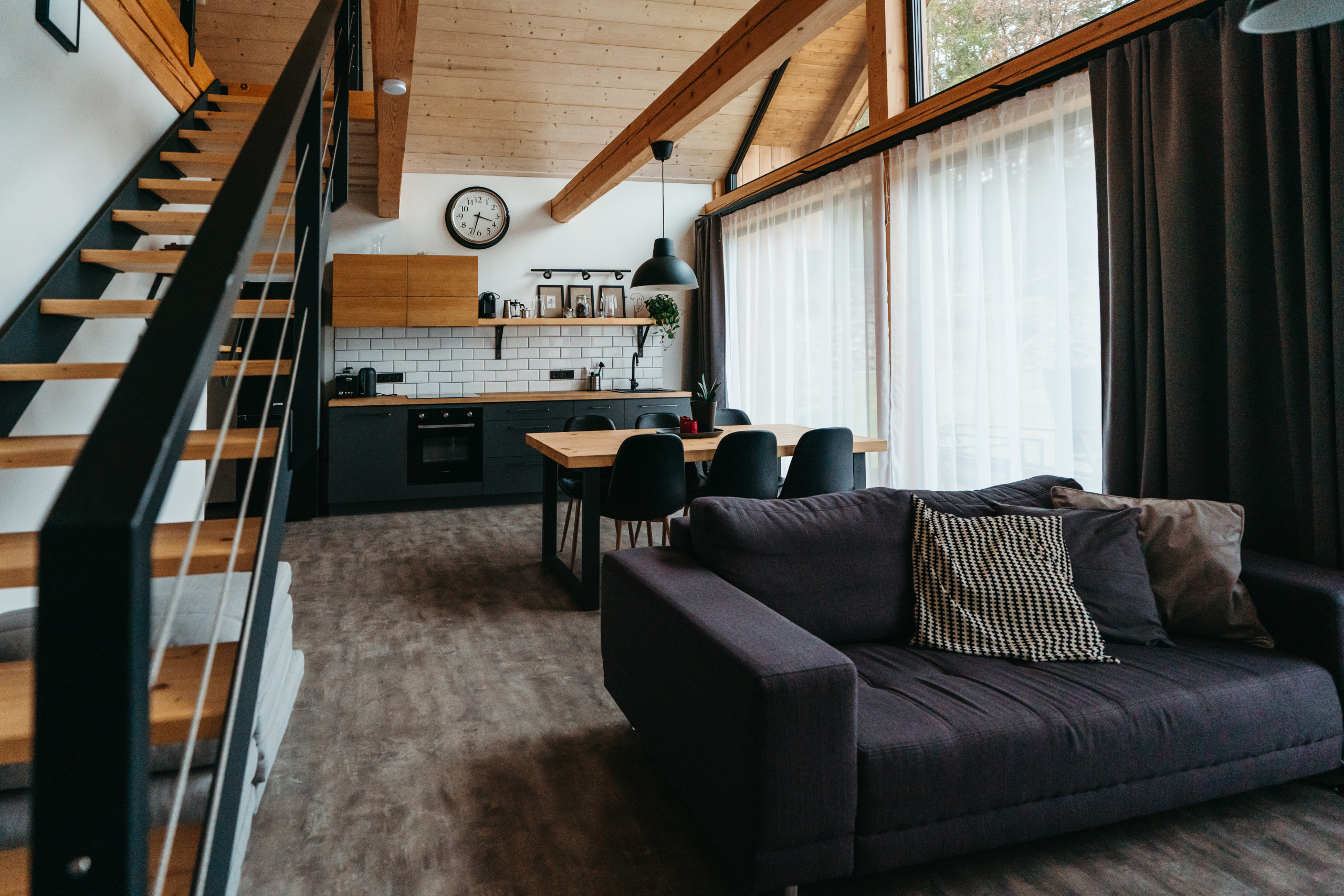 Each house is equipped with two bathrooms. One of the houses features bathrooms with bathtubs, while the other house has showers. In addition to the four bathrooms, there are also separate toilets, ensuring that it doesn't matter whether you are traveling with a large group or not. No queues will be formed. Both houses can accommodate up to 12 people and have their own terraces. Built in a modern style with light brown wooden tones, these houses are surrounded by an orchard. Inside, you can even catch a faint scent of wood, which truly gives you the feeling of being in the Czech countryside.