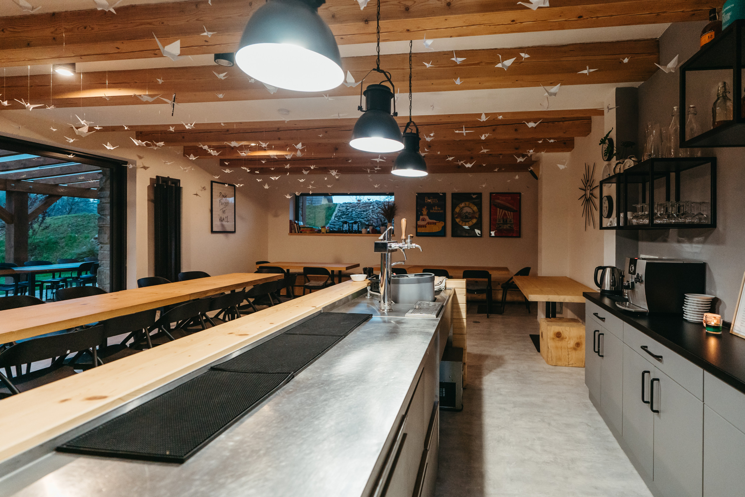 But what makes this group location so unique? We are happy to reveal it to you. One of the houses features a separate room accessible to all guests. Here, you will find a wine cellar with a matching wine shop, as well as a beer tap, allowing you to unwind with a cold Pivo in hand after an exciting day. The public area boasts its own bar and ample space, both indoors and outdoors, to accommodate everyone. During the warm summer months, you can relax in the large swimming pond, which has both deep and shallow areas. Both holiday houses have reliable Wi-Fi that can withstand the demands of a larger group. Moreover, even on the hottest summer days, sufficient air conditioning ensures a cool environment.