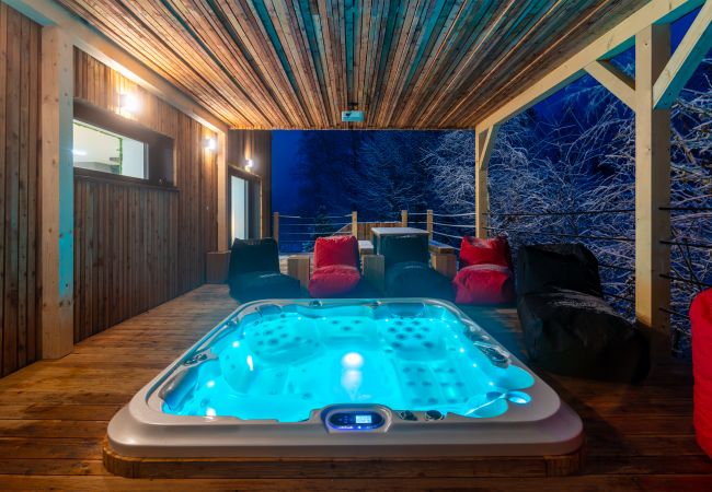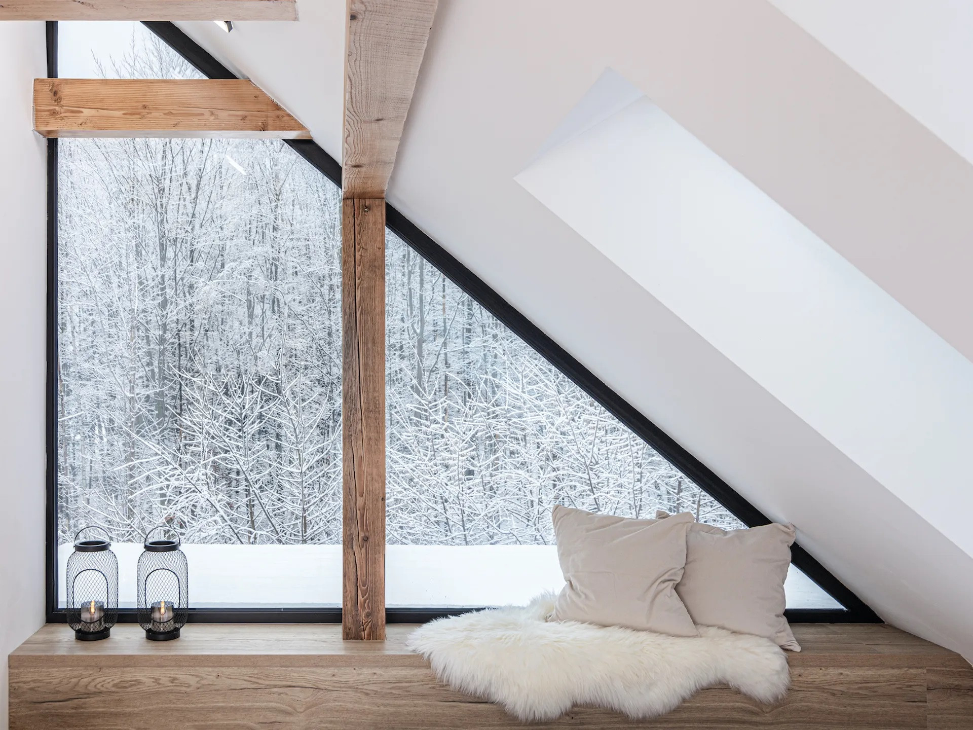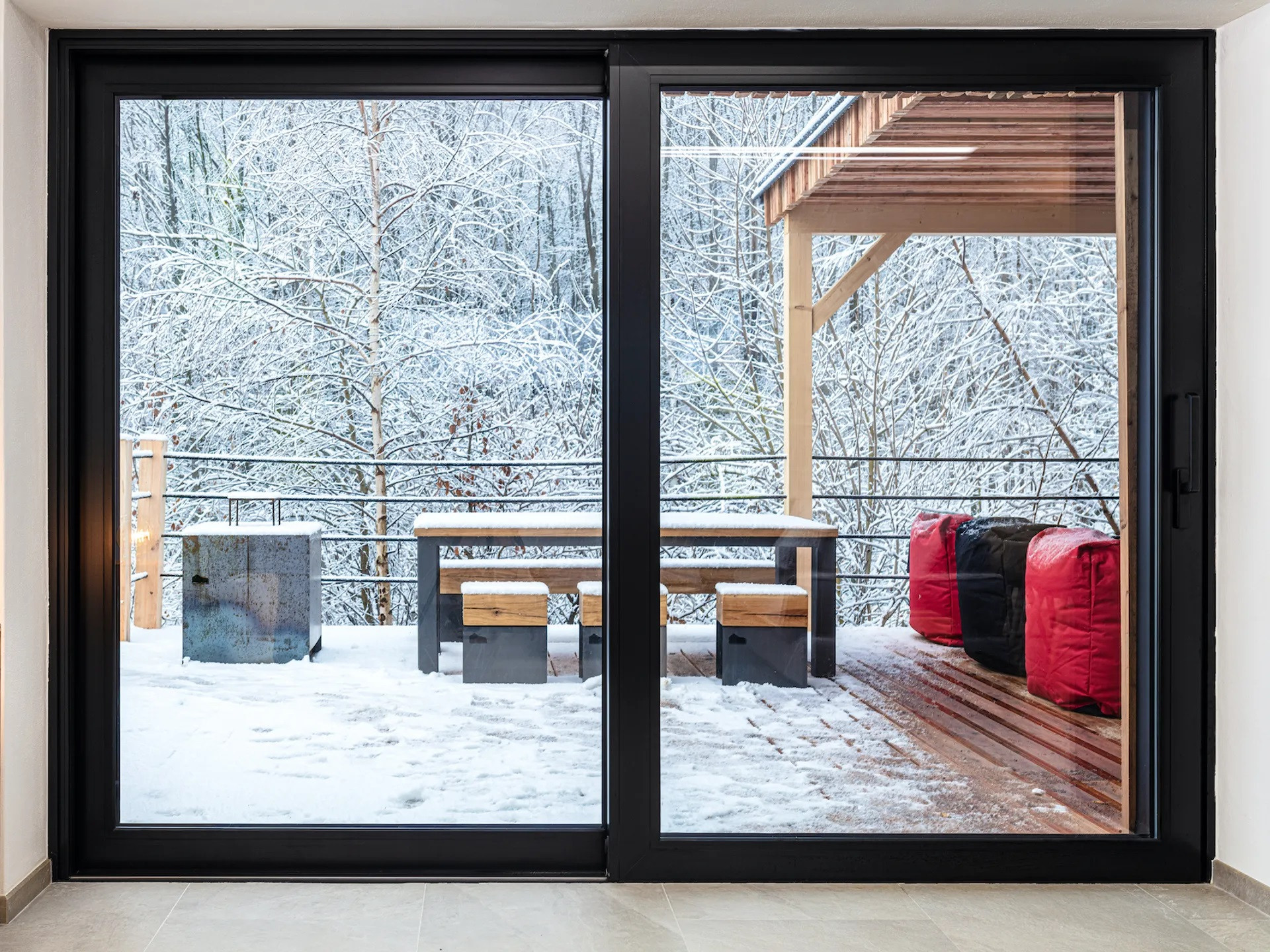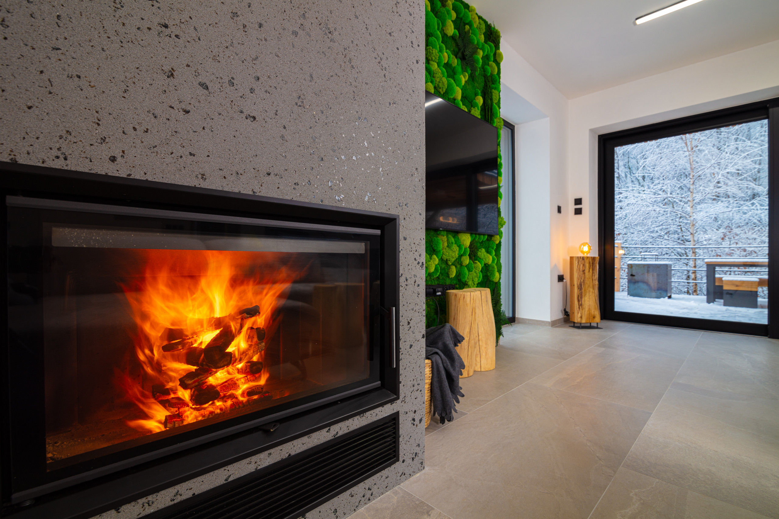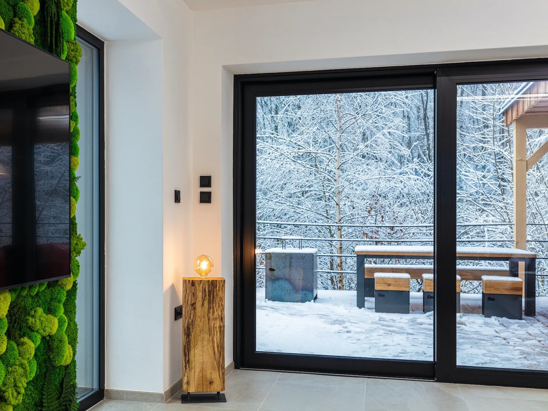 Outside, a large terrace awaits with a luxurious covered whirlpool for five. You’ll be comfortable here in any weather. There’s a wood-fired grill, a large wooden dining table, and a fire pit for long evenings under the stars. And that outdoor cinema screen... grab a blanket, pour a drink, and your night is set.