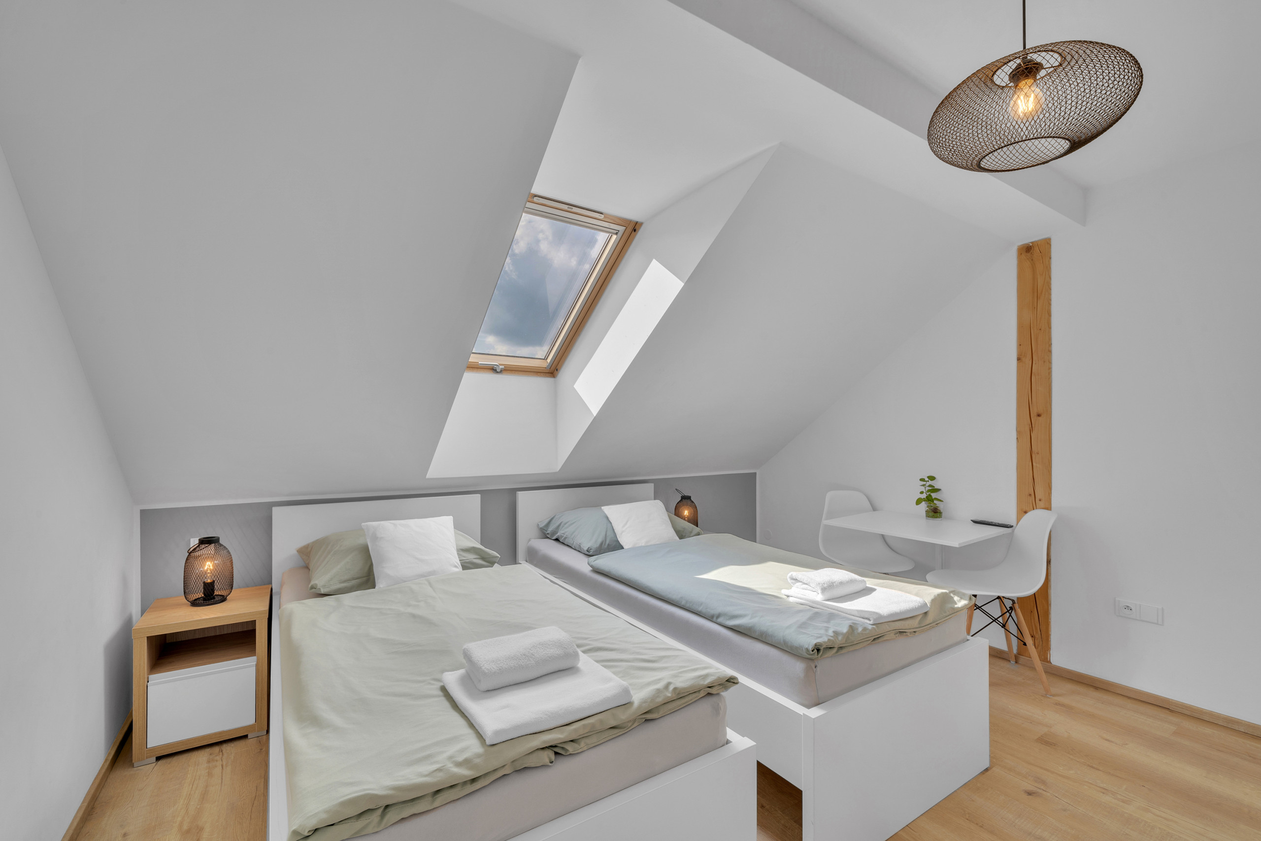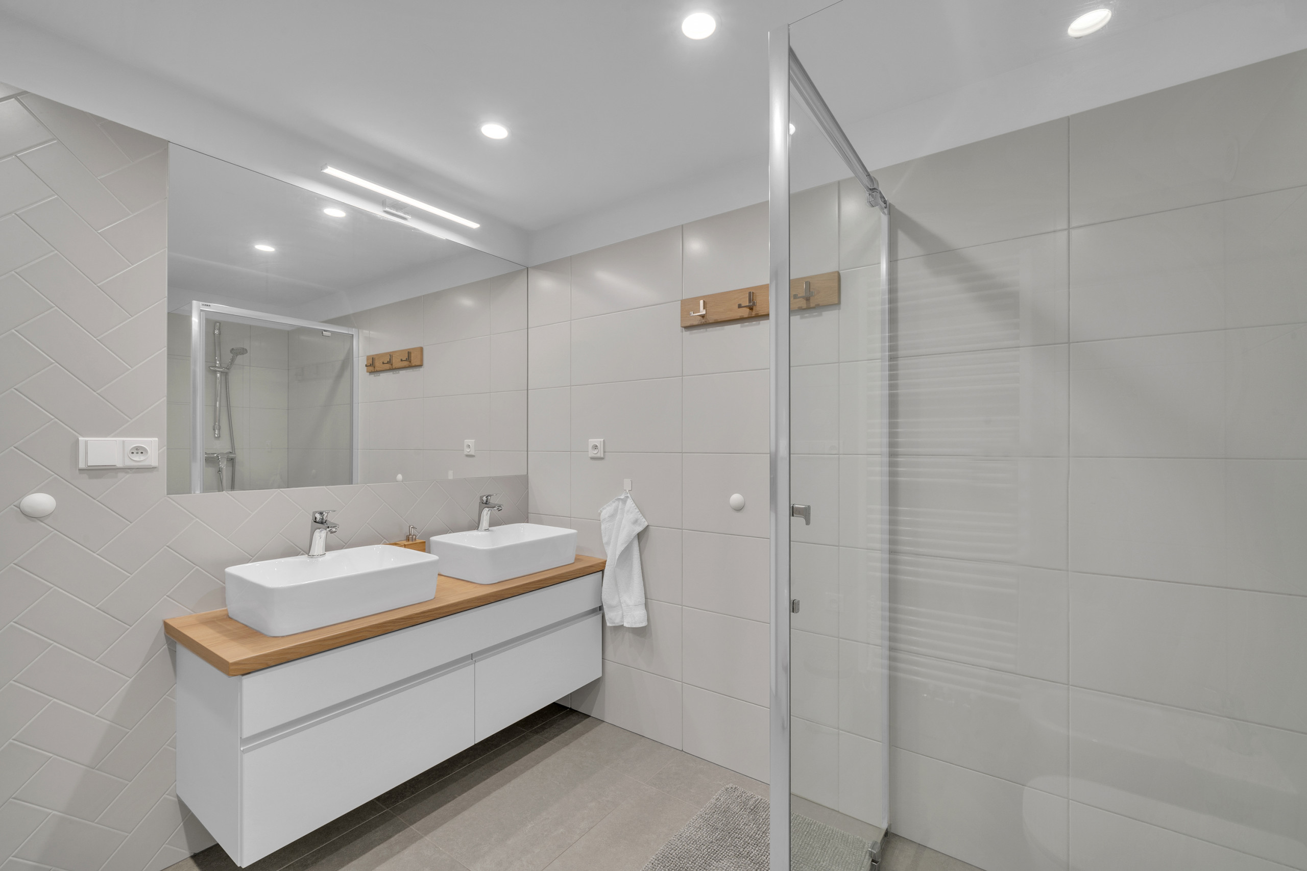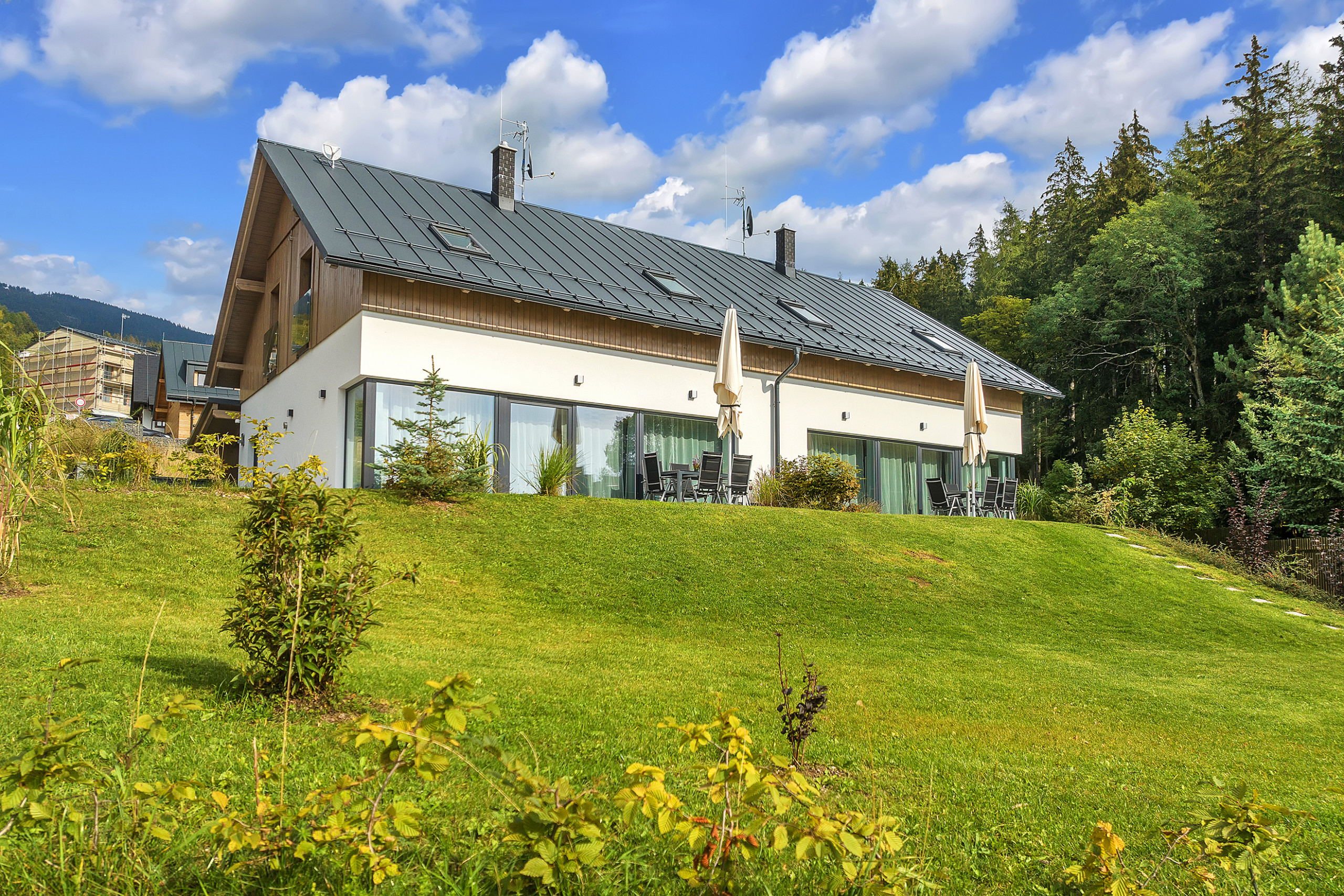 Both apartments are bright, modern, and comfortably furnished. Each has three bedrooms – two with double beds and one with two single beds plus a sofa bed. The large kitchen in each apartment is fully equipped with everything you need, and the cosy living room with a fireplace is perfect for unwinding in the evenings. After a day on the slopes or a long hike, you can relax in the infrared sauna on the ground floor. Each apartment also has two bathrooms, underfloor heating, and a practical space to dry your ski or hiking boots. In the garden, you can enjoy the fresh mountain air – and on sunny days, there's a barbecue for some quality time outdoors. Pets are welcome in one of the apartments.