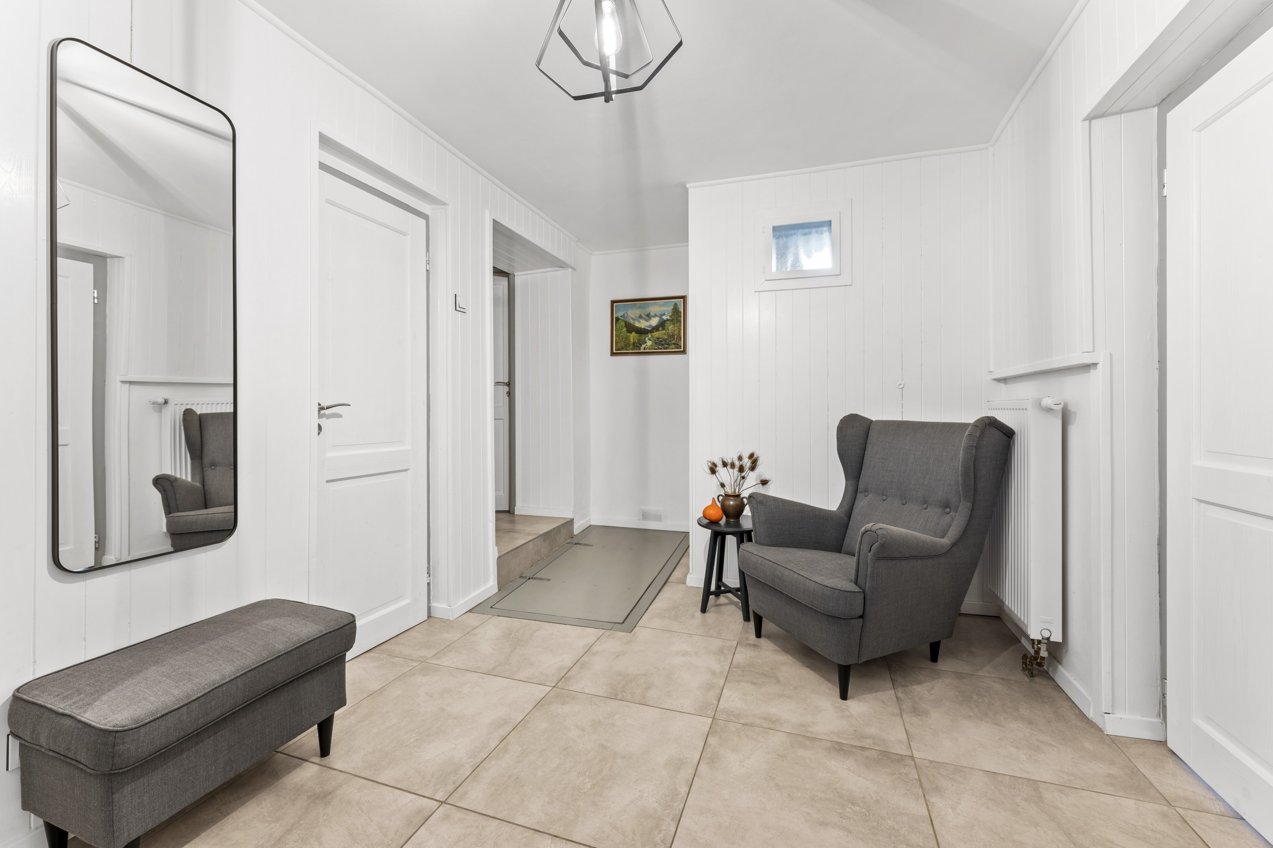 Inside, the holiday home is modern and cozy, striking a perfect balance between comfort and luxury. The spacious living room invites you to gather together, with comfortable seating and a warm atmosphere that truly makes the house feel like a home. Here, you can enjoy relaxing evenings with a good book, a game, or simply good conversation.