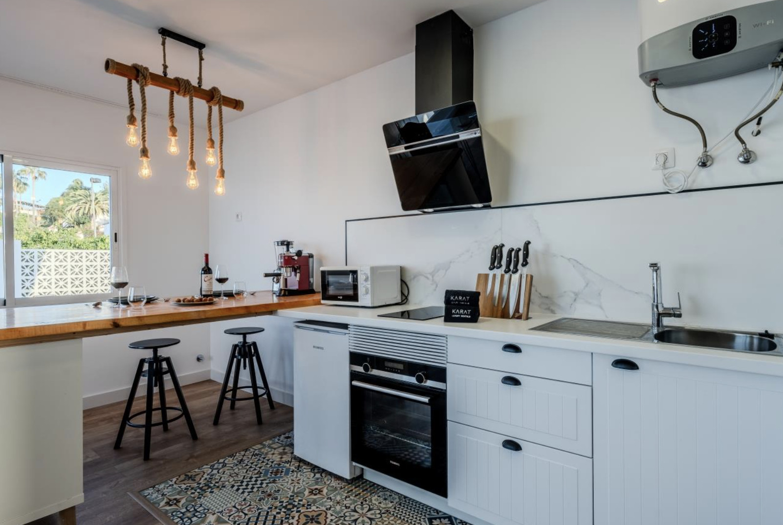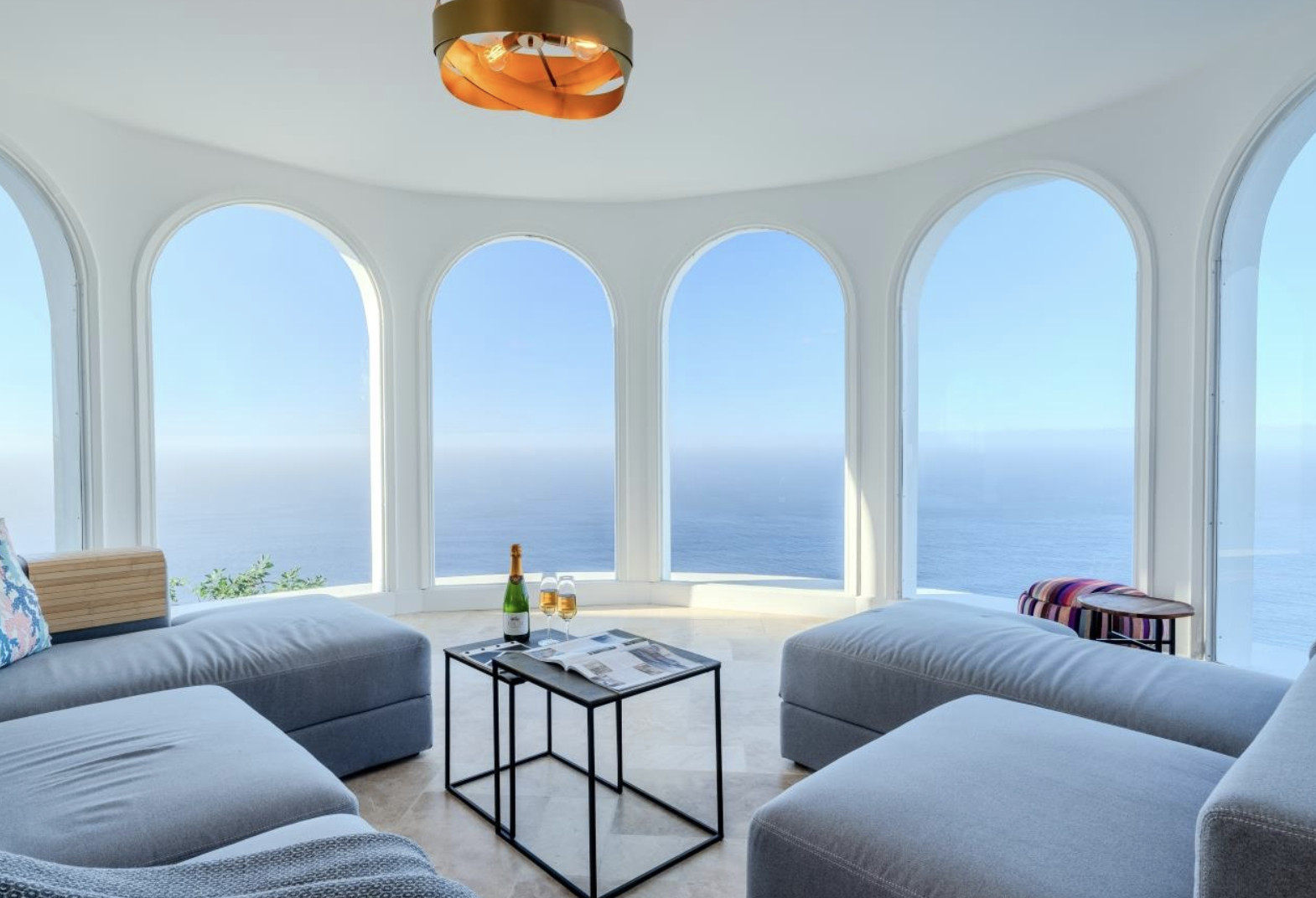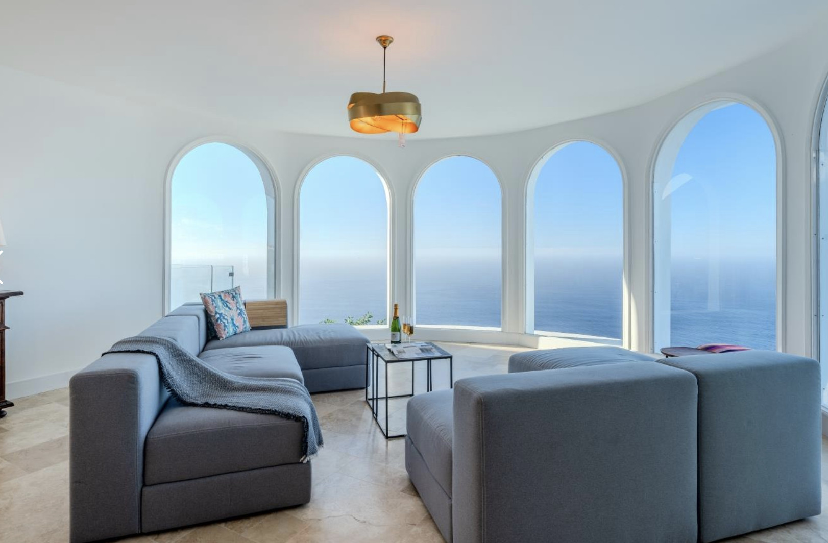 Outside, the villa continues to amaze: a perfect barbecue area to enjoy outdoor meals, and a private heated pool on the cliff's edge from where you can contemplate spectacular sunsets with the sea breeze as a companion.