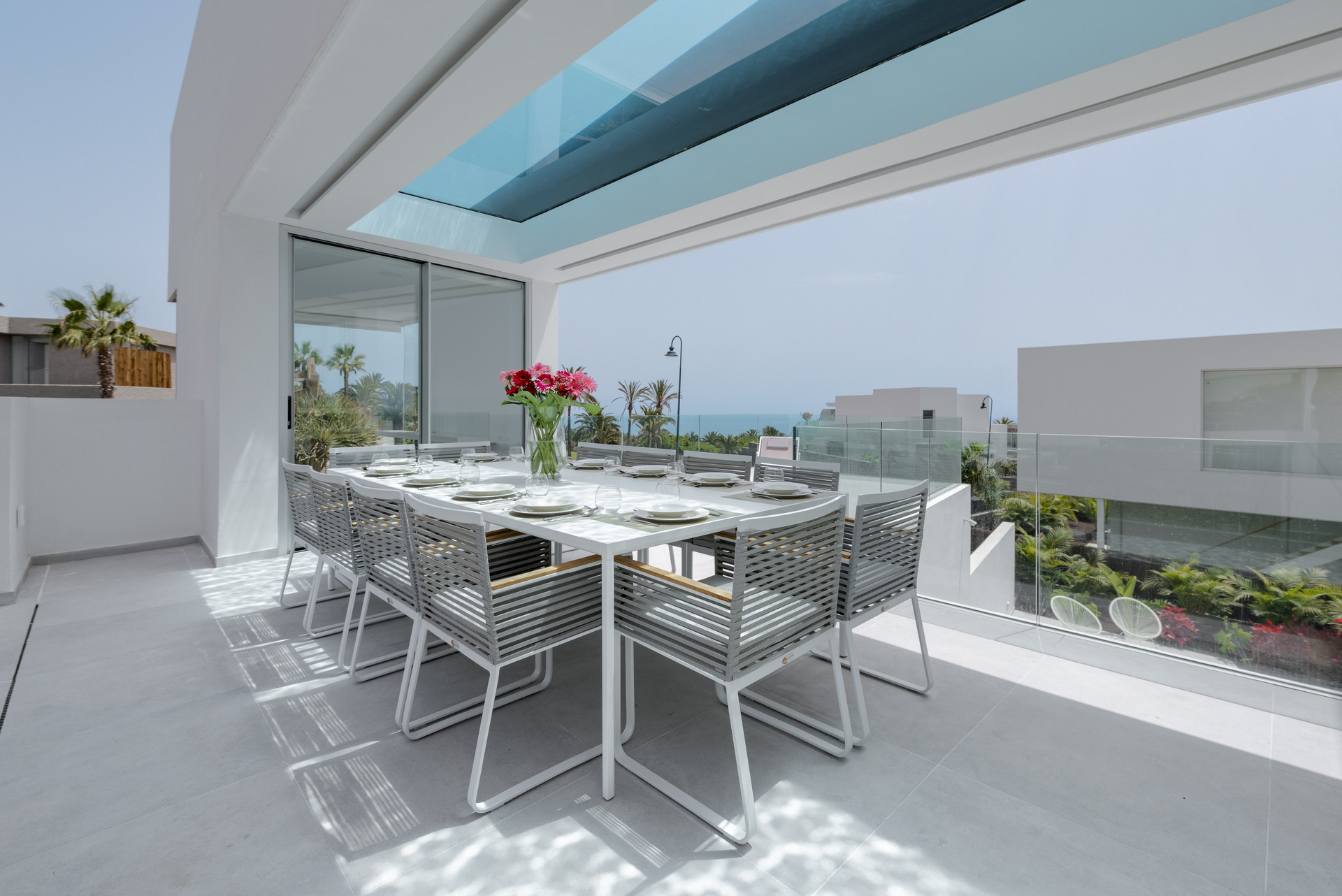 Each of the four master bedrooms has its own en-suite bathroom and a private furnished terrace offering stunning sea views. The privacy of the bedrooms is guaranteed, ensuring a comfortable and serene stay for all guests.
