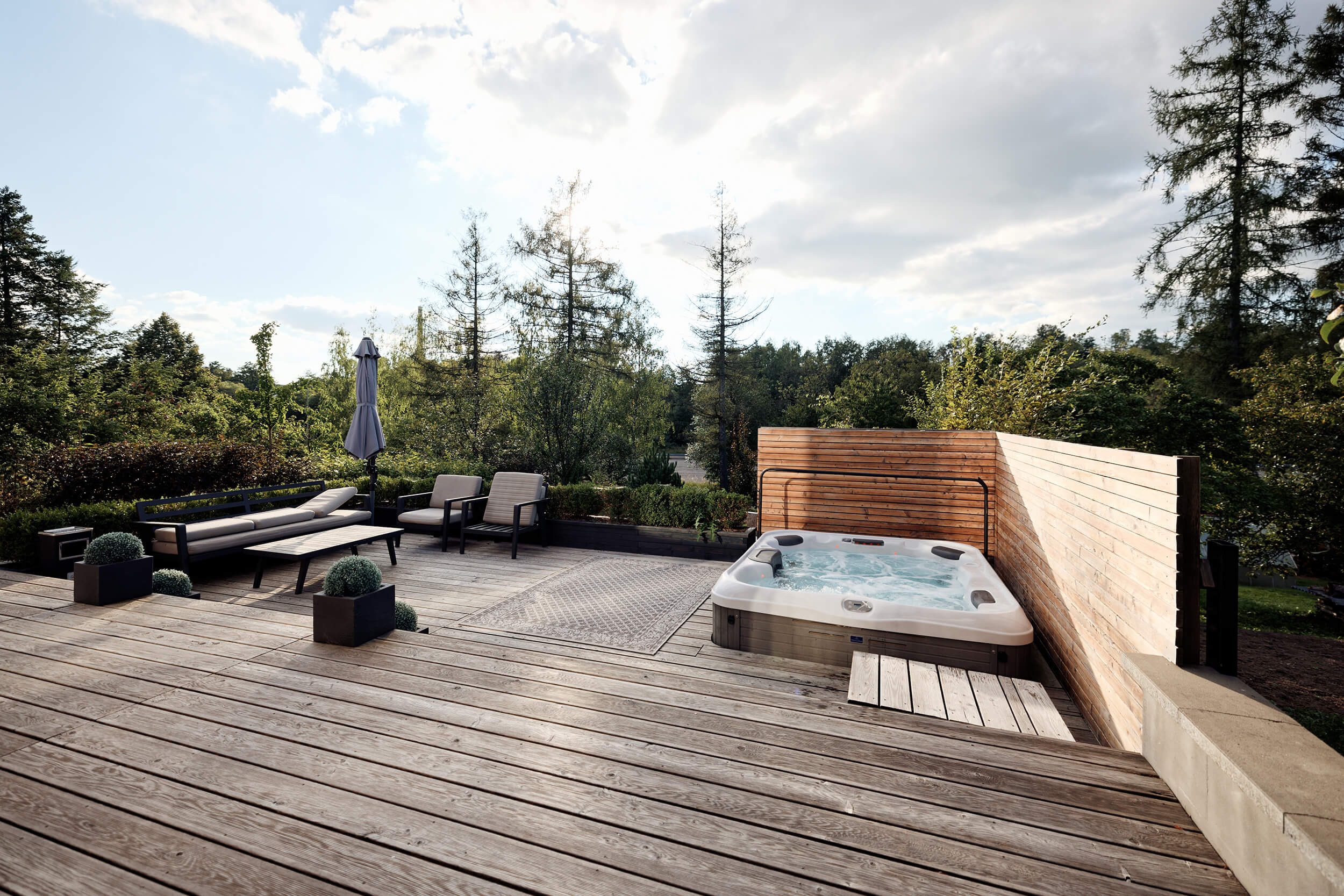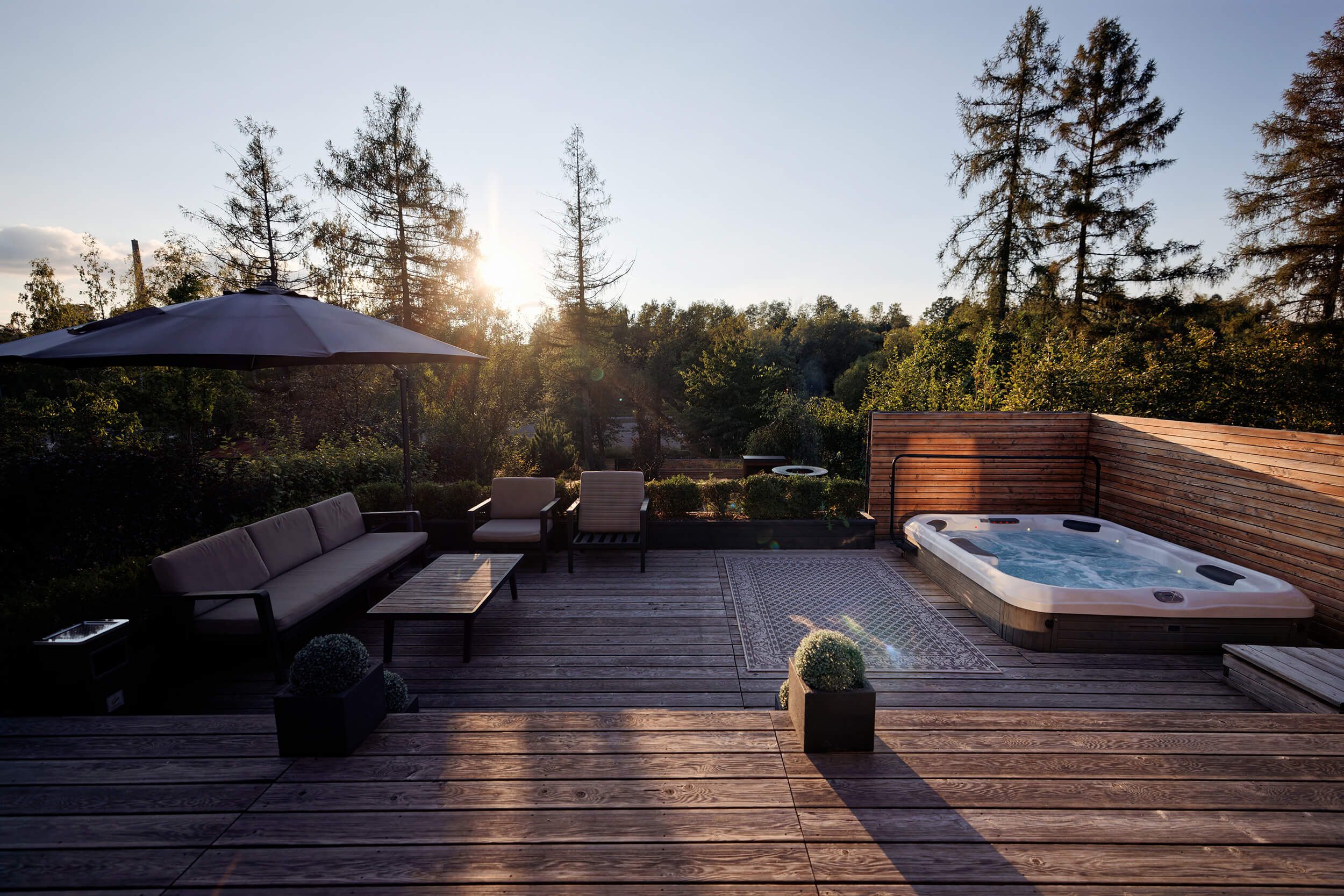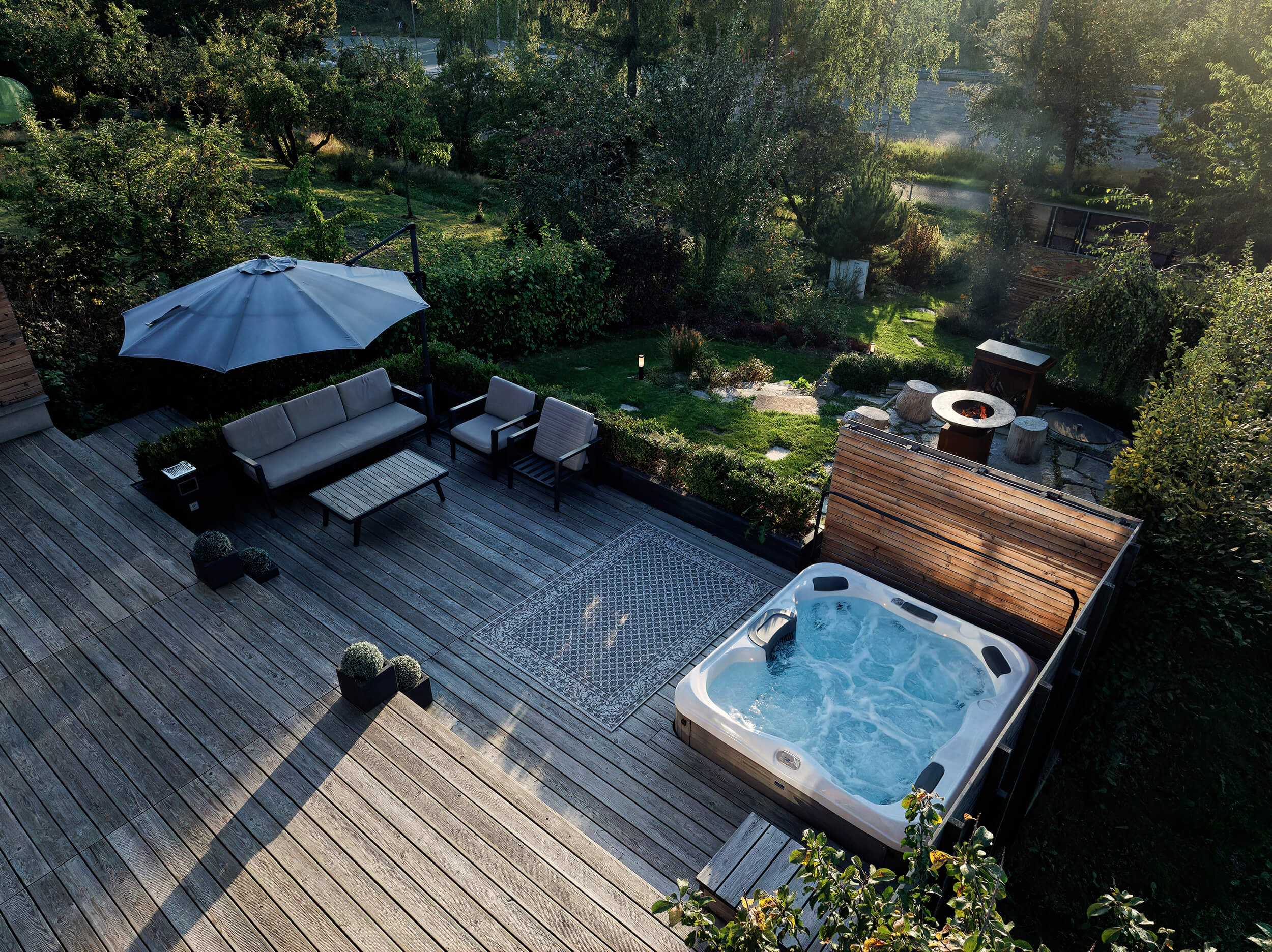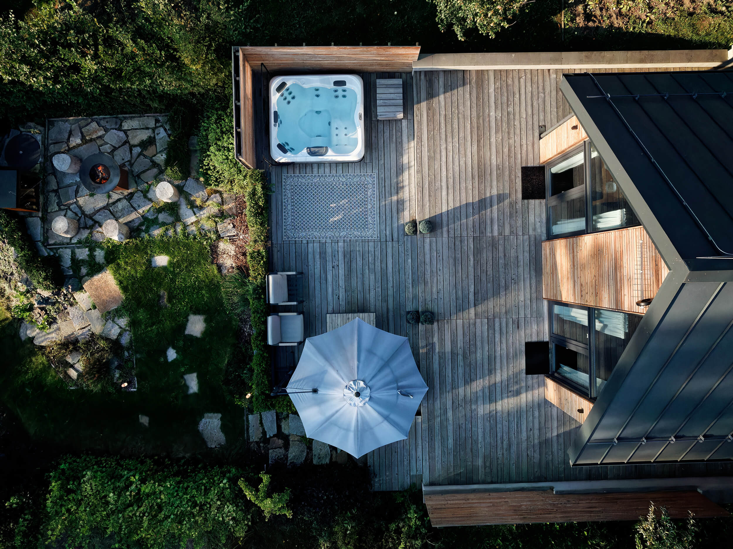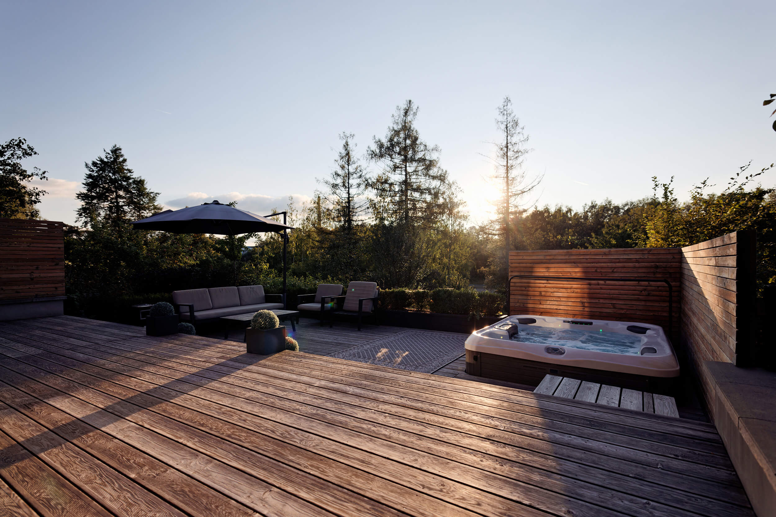 The wellness area adds an extra touch of luxury: a private jacuzzi in the garden invites you to unwind while enjoying the peace and the views. The garden itself is impressively spacious (200 m²) and equipped with a luxury lounge set, perfect for a glass of wine or a relaxed morning coffee.