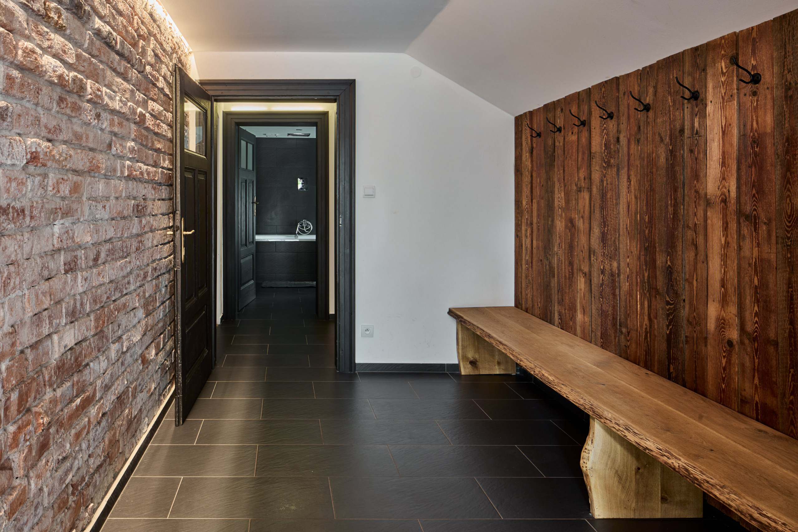 What truly makes this house special is the combination of peace, space, and experience. Outside, there’s an additional wooden building with a Finnish sauna — perfect after an active day in the mountains. Children haven’t been forgotten either: in the snug play area under the roof, they can do their own thing while you relax downstairs with a good glass of wine.