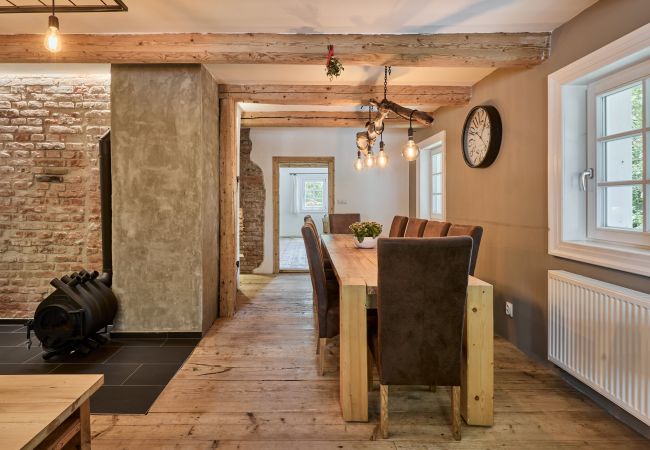 With space for up to 12 guests, this holiday home is ideal for large families, groups of friends, or multiple generations traveling together. Inside, you will find three atmospheric bedrooms, each with its own unique charm, offering a comfortable place to rest for everyone. The bathroom features a refreshing shower – perfect after a day out in the crisp mountain air.