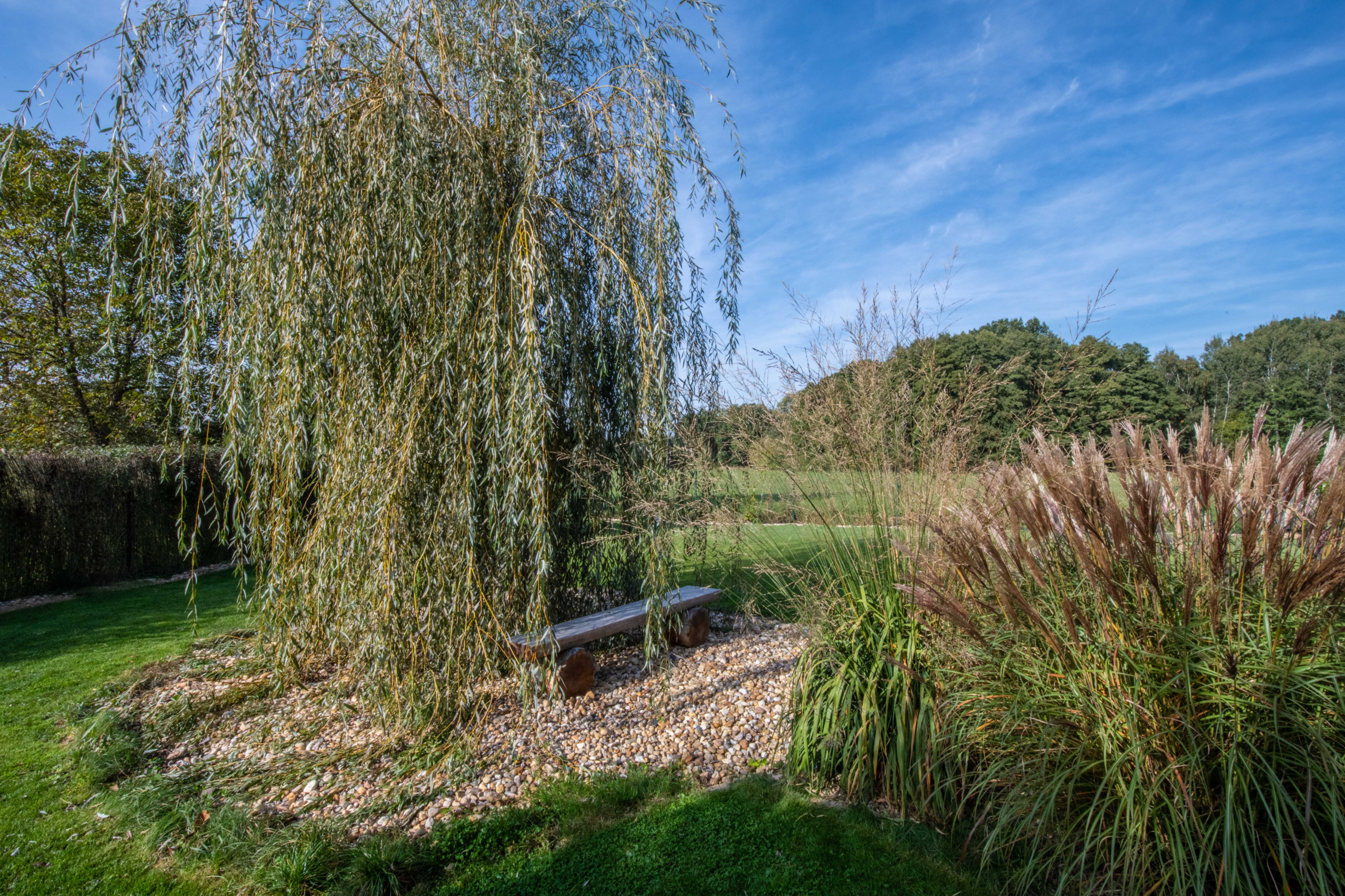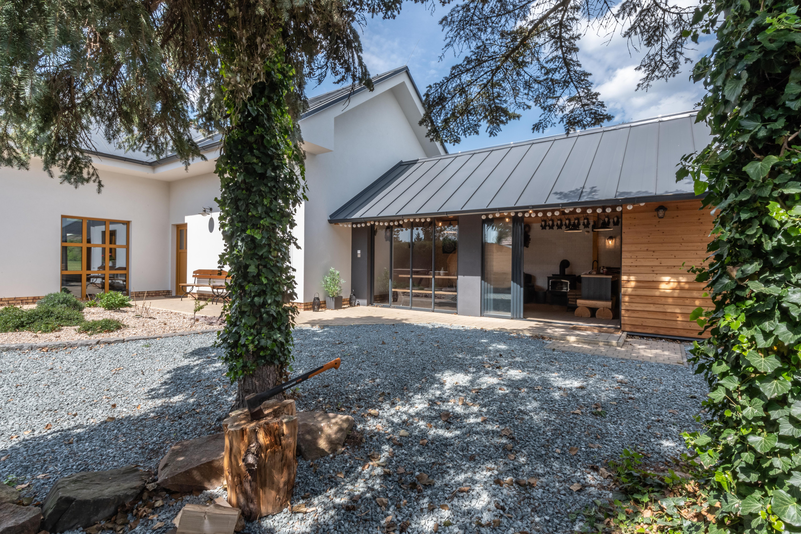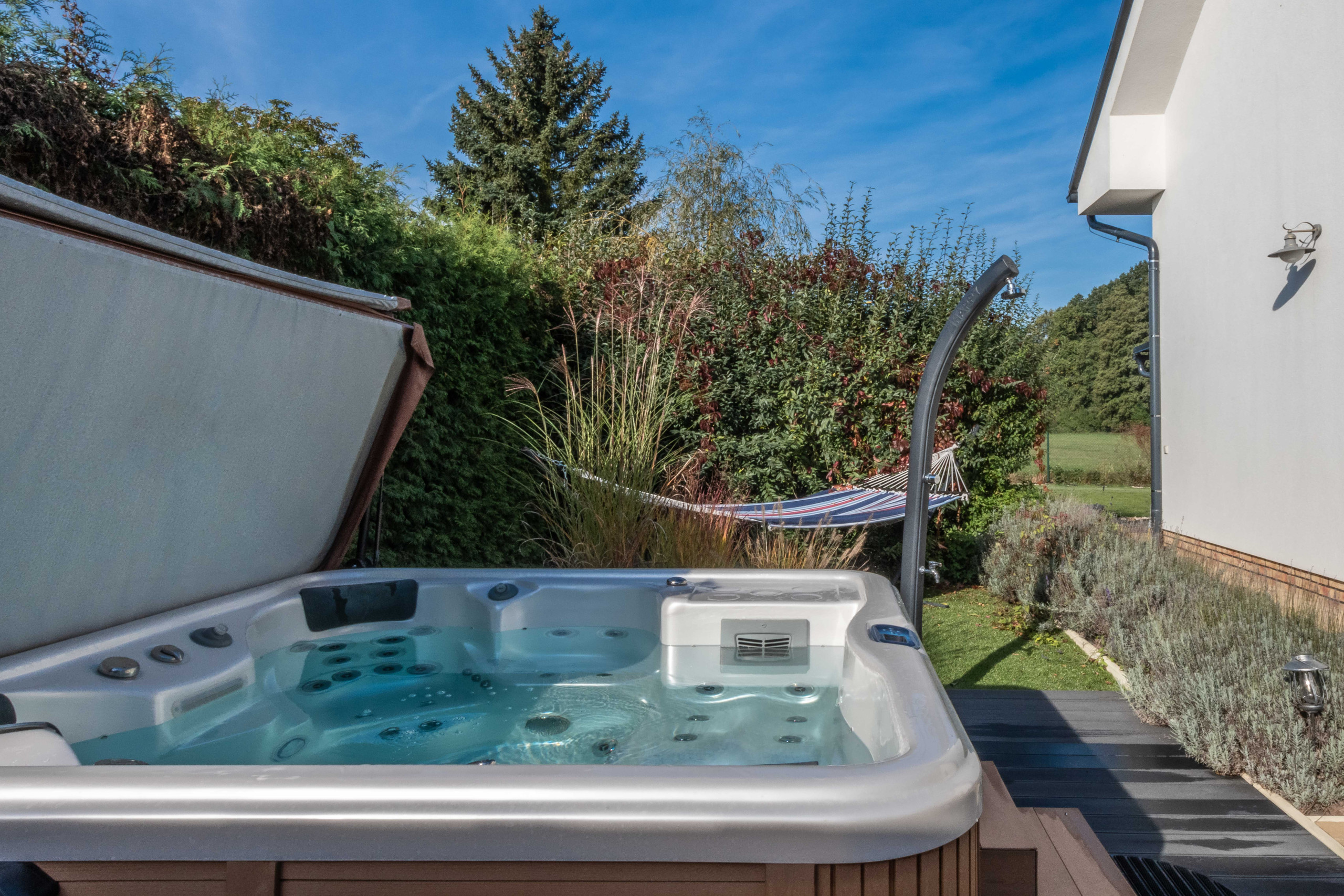 The villa is surrounded by meadows and forest, offering maximum privacy and tranquility. The garden is designed for ultimate relaxation, with comfortable outdoor furniture and a cozy spot to enjoy a drink or dine al fresco. Nature and hiking enthusiasts can take short forest walks or observe local wildlife, including deer.