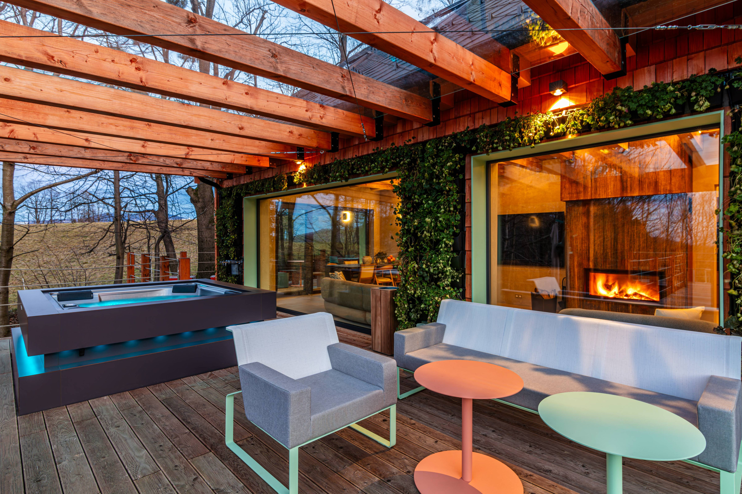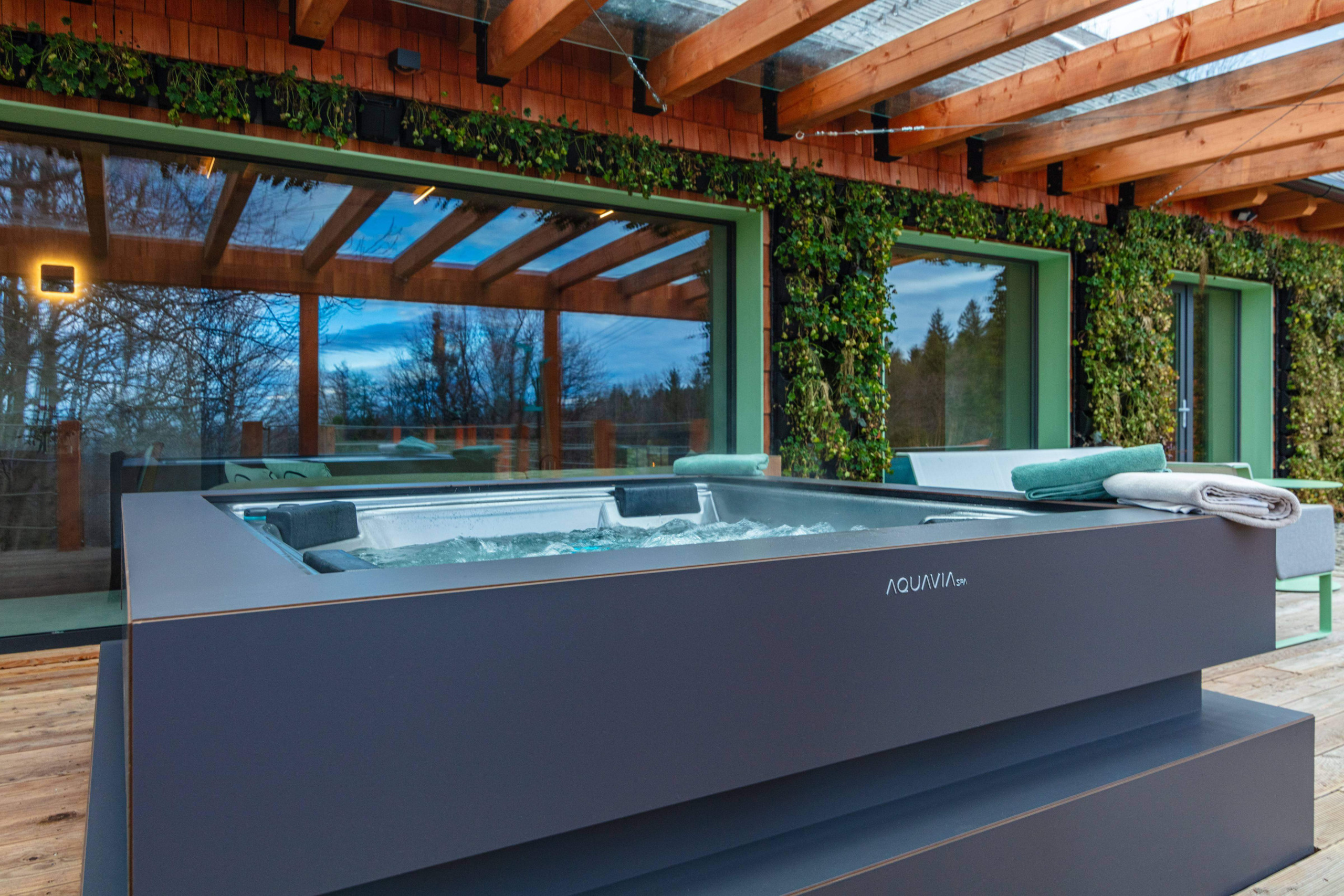 Outside, you’ll find a spacious terrace with comfortable garden furniture and a hot tub for 5 people. Enjoy the view of the forest or simply relax in the fresh air. In summer, you can also use the barbecue and campfire for a cozy evening with friends or family.