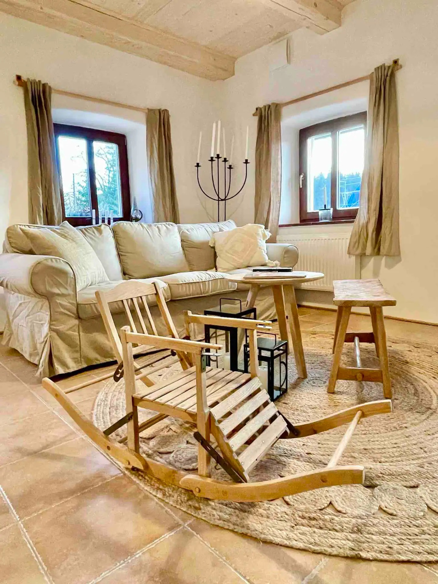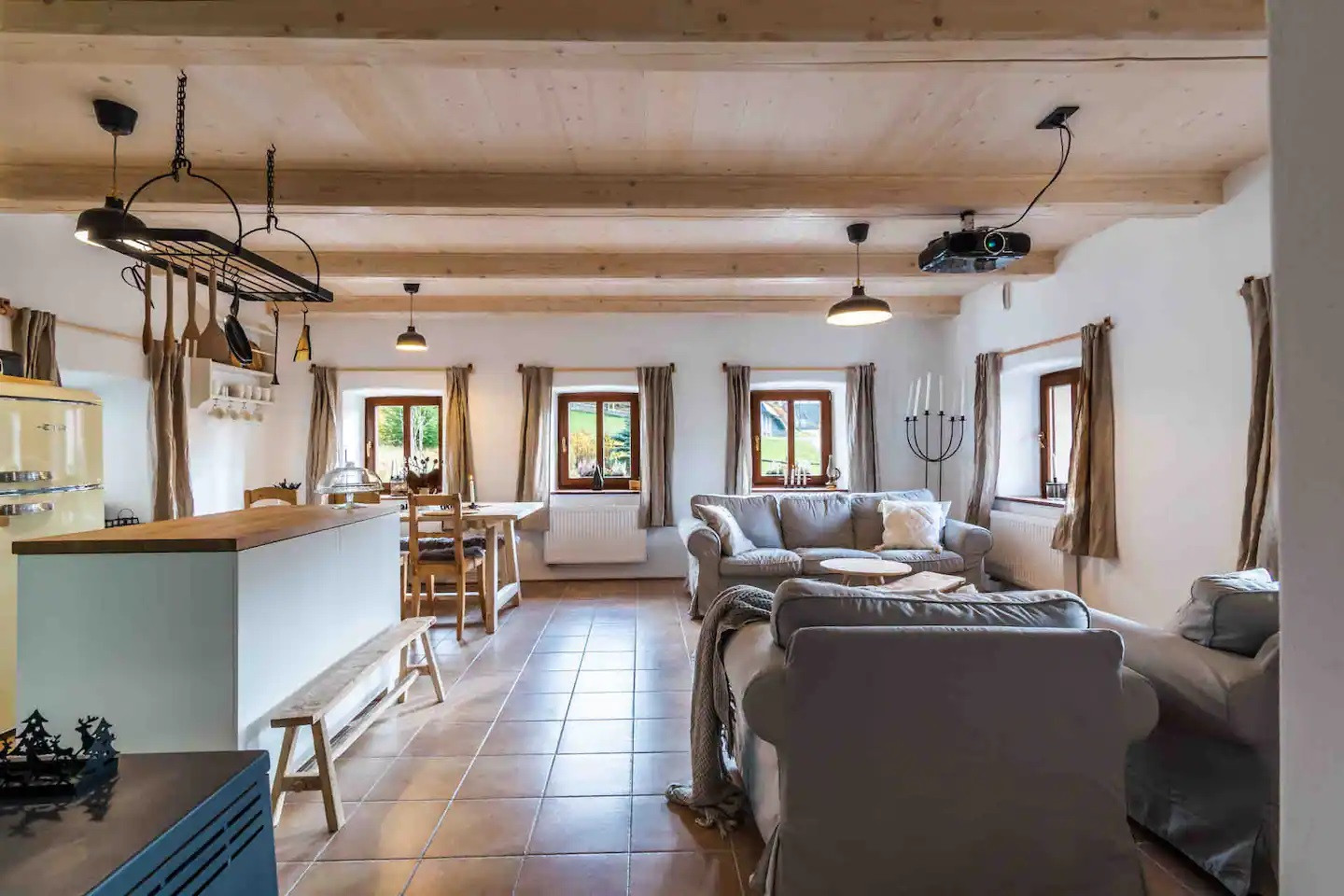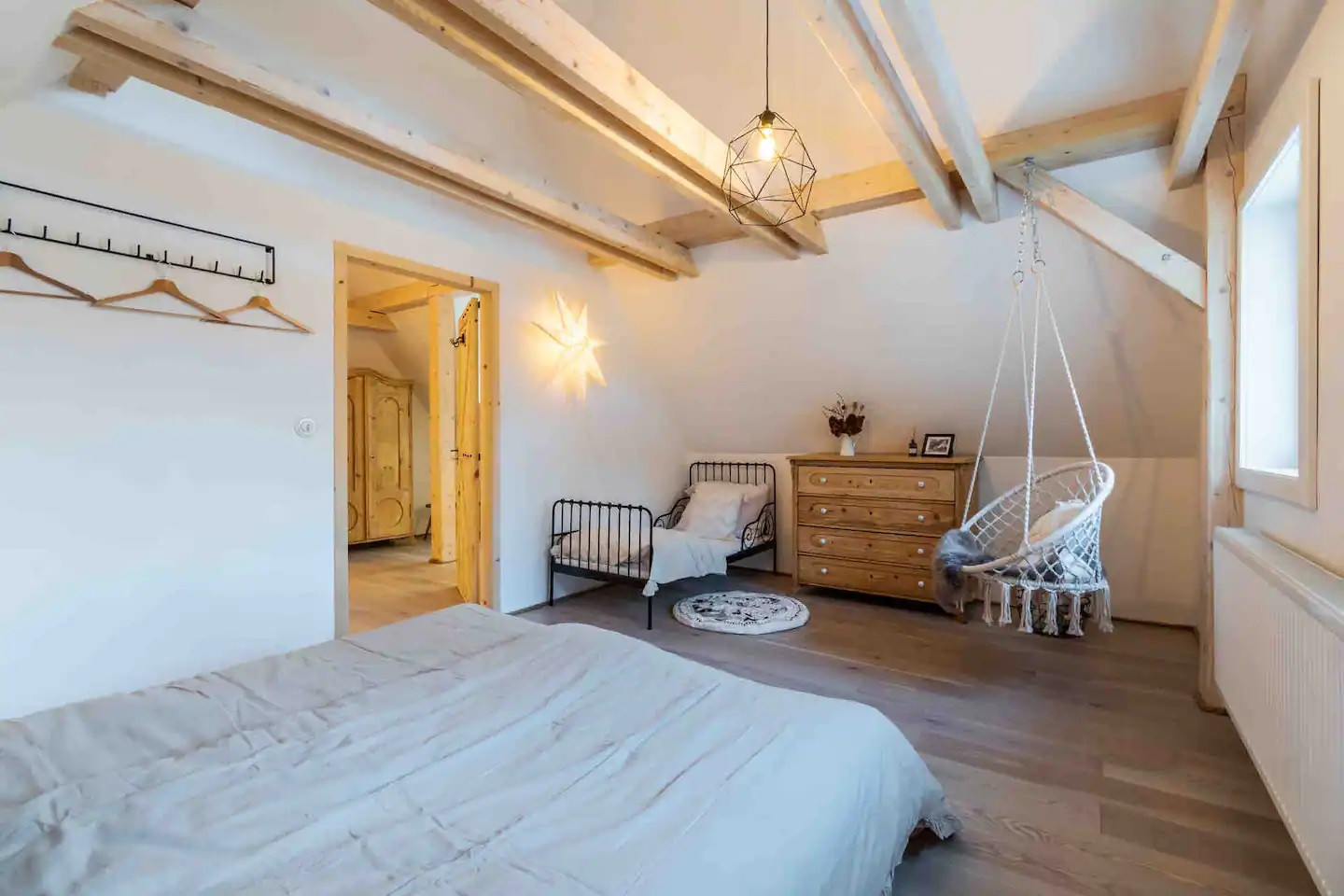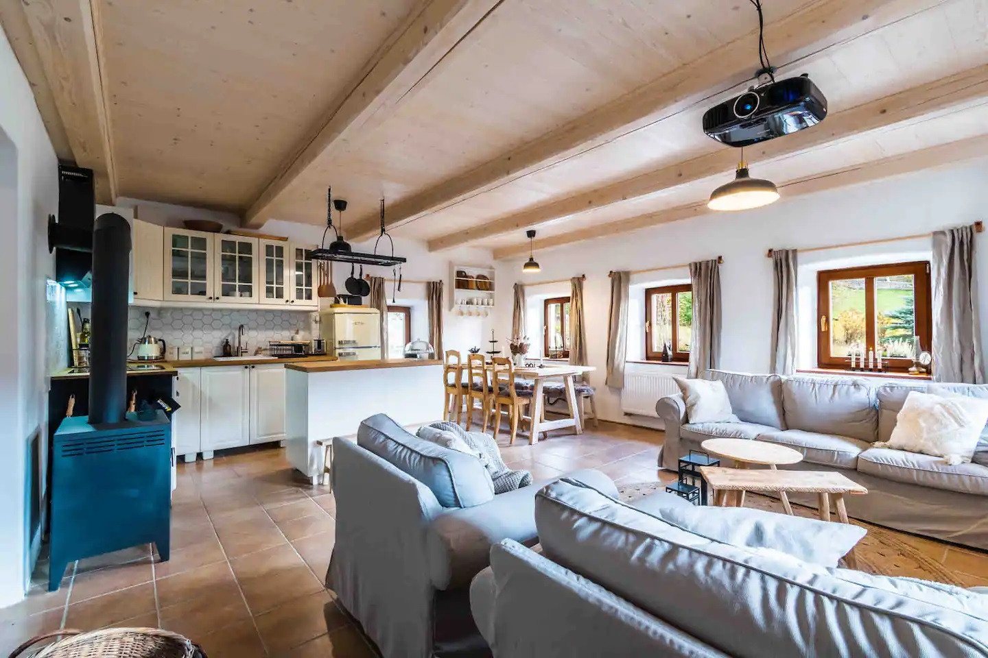 This villa has plenty of space and can accommodate 5 adults and 3 children! Our villa offers three cosy bedrooms and two gleaming bathrooms, ensuring that everyone has plenty of space to relax and rest. The first bedroom is a children’s room with a sofa bed and a bunk bed. The second bedroom has a double and a fold-out single bed. The last bedroom has a double bed and a single bed. No need to stress about cooking meals when the group is here! The kitchen's got you covered. It's fully equipped with all the essentials, like a freezer, refrigerator, and oven. Not to mention the kitchen utensils so you can kick your recipe into gear. And don't even get us started on those dirty dishes! Worry not — a dishwasher is available to take that burden off your hands. So let's get cooking! Starting your day with a cup of coffee or tea outside is the perfect way to kick things off. Take in the beautiful morning view and begin your day feeling refreshed. You can enjoy the lovely garden from the terrace where kids can play and burn off all their energy. And the best part - at the end of the day, you can fire up the barbecue and relax with a drink in hand. There's nothing better than this! No need to stress when you come in at night and see a huge pile of dirty clothes! We have a washing machine that will clean them real quick. Just turn it on and chill on the comfortable sofas while reading a good book. It is also possible to stream your favourite series. This can be done through the data projector (kind of a beamer), as there is no TV. Or how about challenging your travel buddies to a fun game? It's a great way to pass the time and make some unforgettable memories!