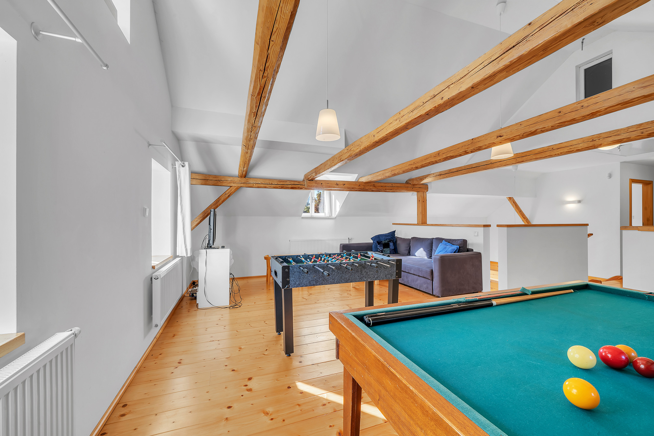 You have five bedrooms, three bathrooms and two toilets at your disposal. The kitchen is fully equipped to prepare delicious meals. With a refrigerator, freezer, oven, microwave, dishwasher, coffee maker and kitchenware you are fully equipped. On hot days you can cool off in the accompanying private swimming pool (diameter 4.6 meters; depth 1.2 meters). There is garden furniture on the terrace and in the garden where you can relax. When a fire is made outside in the evening, the wonderful day comes to an end. On slightly colder days, TV can be watched indoors where no favorite series is missed by means of satellite TV. Fancy a game? In the attic are a billiard and football table. Don't worry about the dirty clothes. They can be washed in the washing machine and the clothes can be dried in the dryer.
