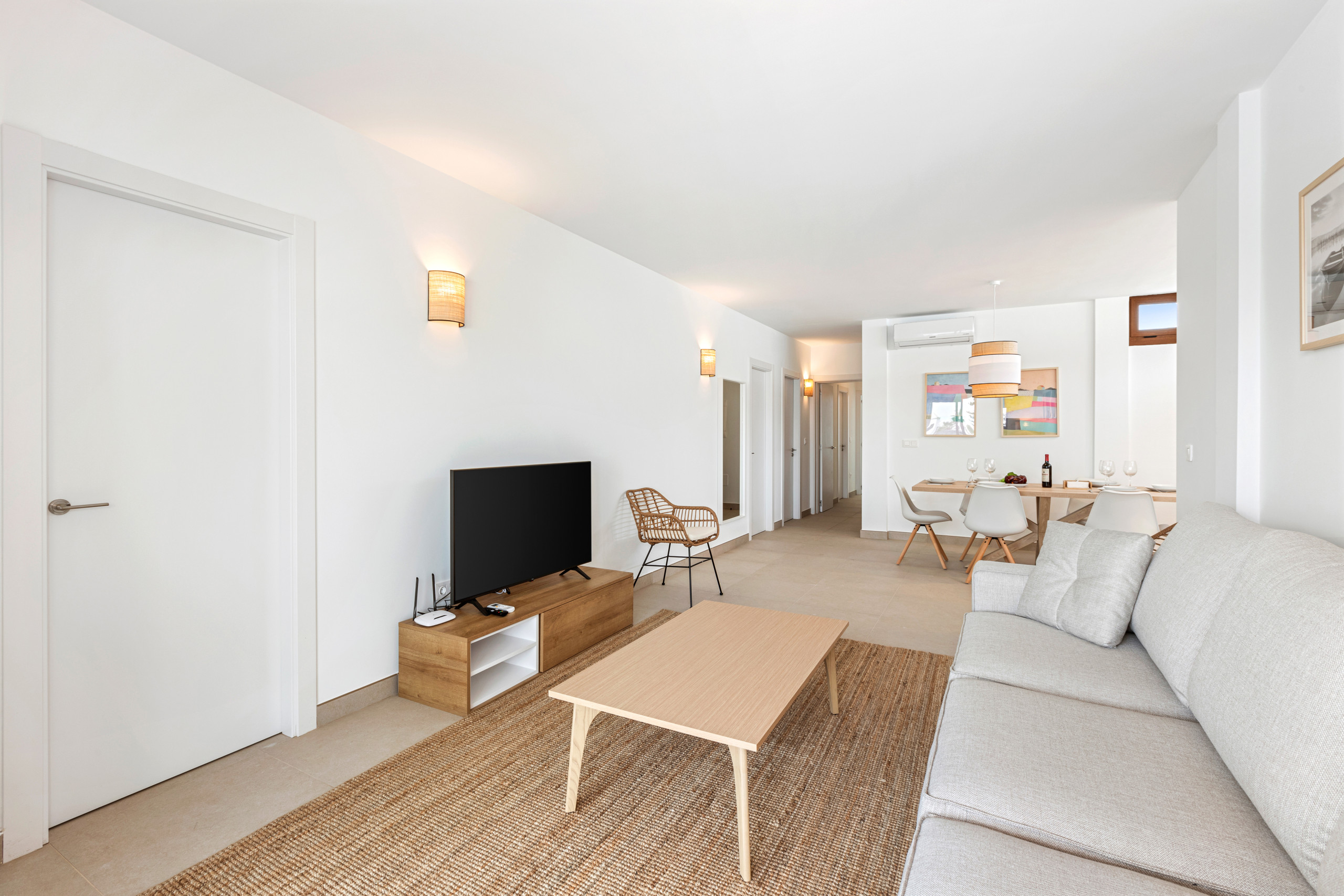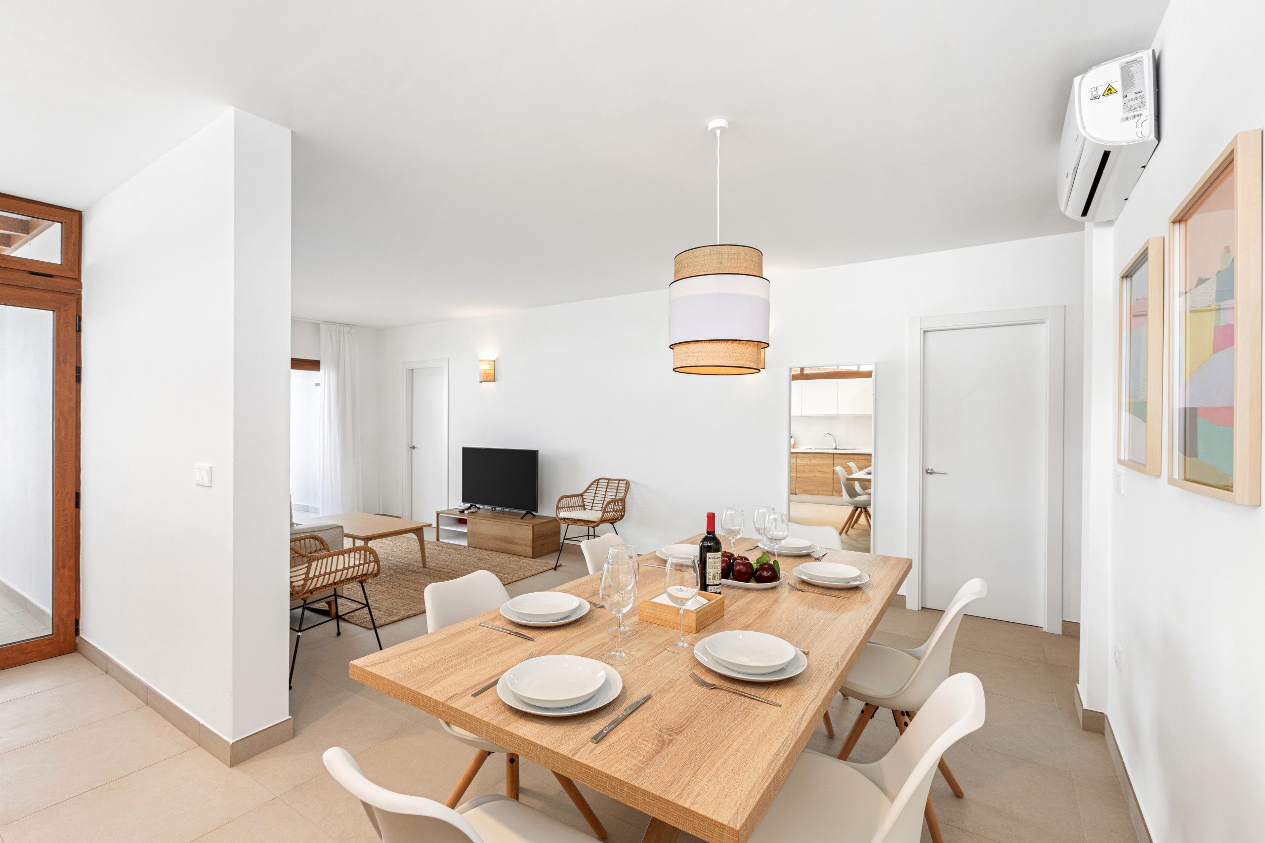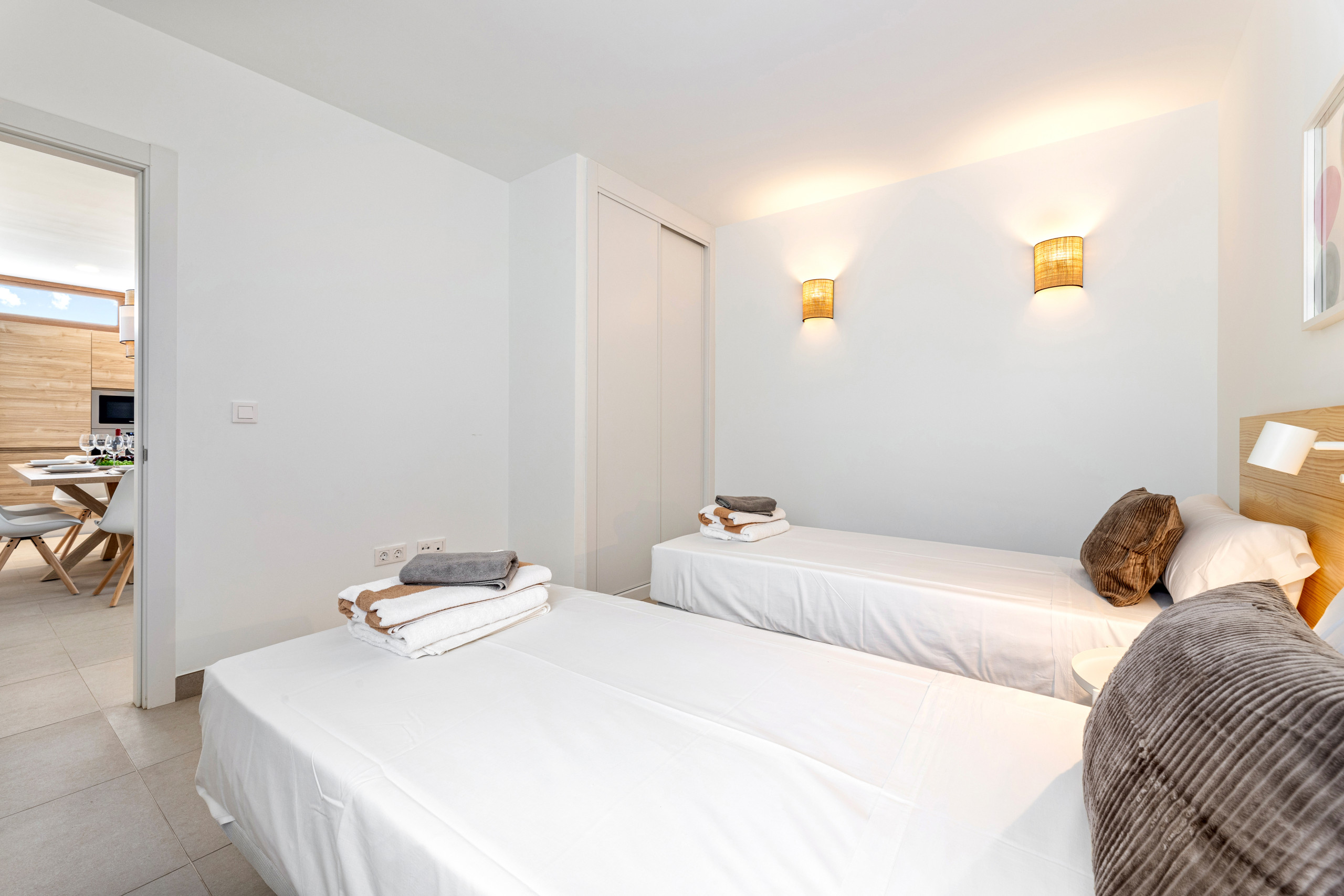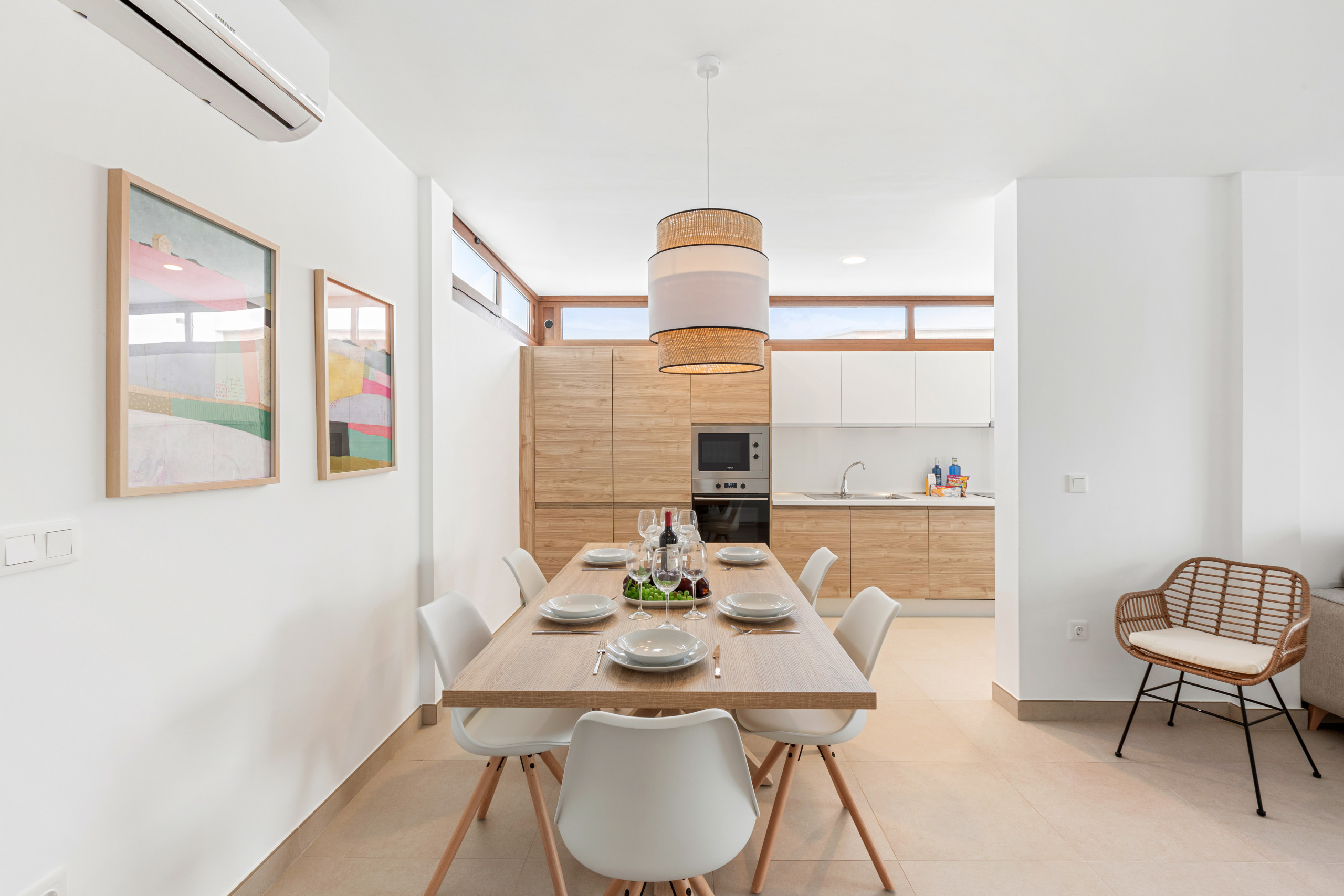 As for the common areas, the open-plan kitchen is fully equipped with appliances such as fridge, freezer, washing machine, dishwasher, oven, microwave, coffee maker and toaster, among others. You can easily prepare your meals and enjoy them in the dining room or on the terrace.