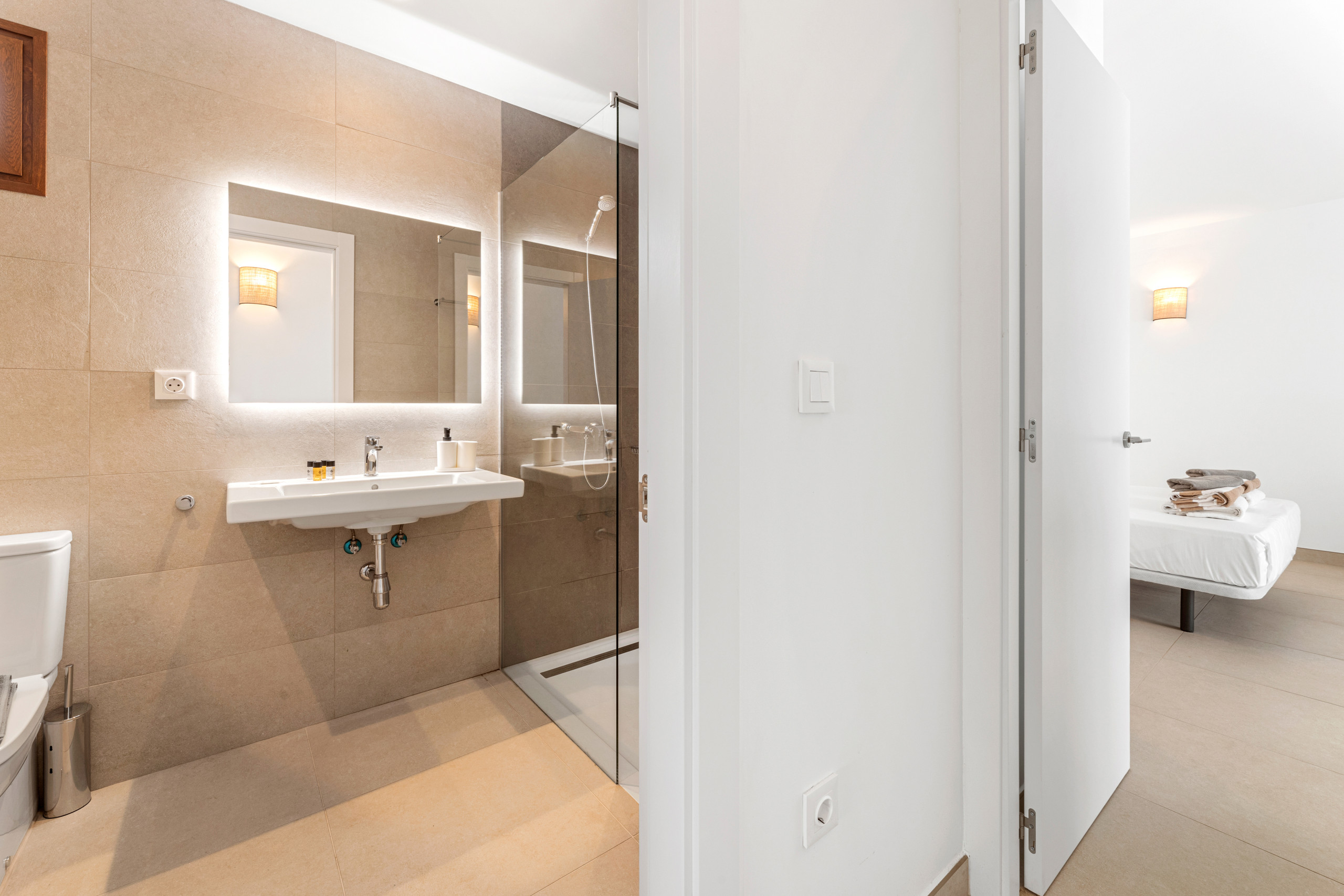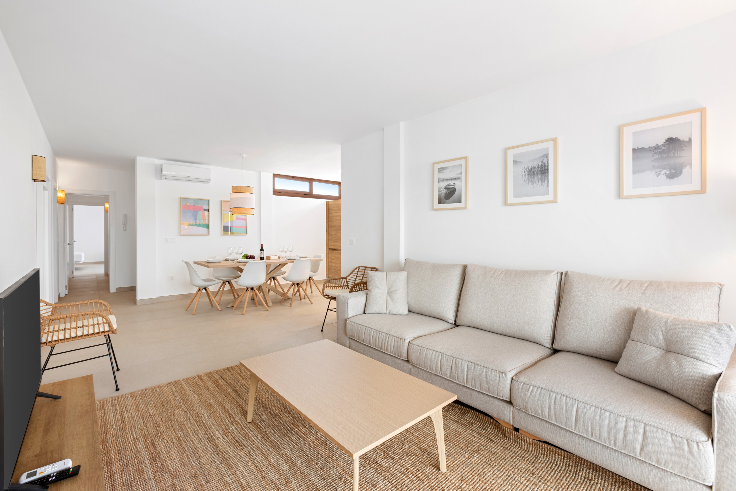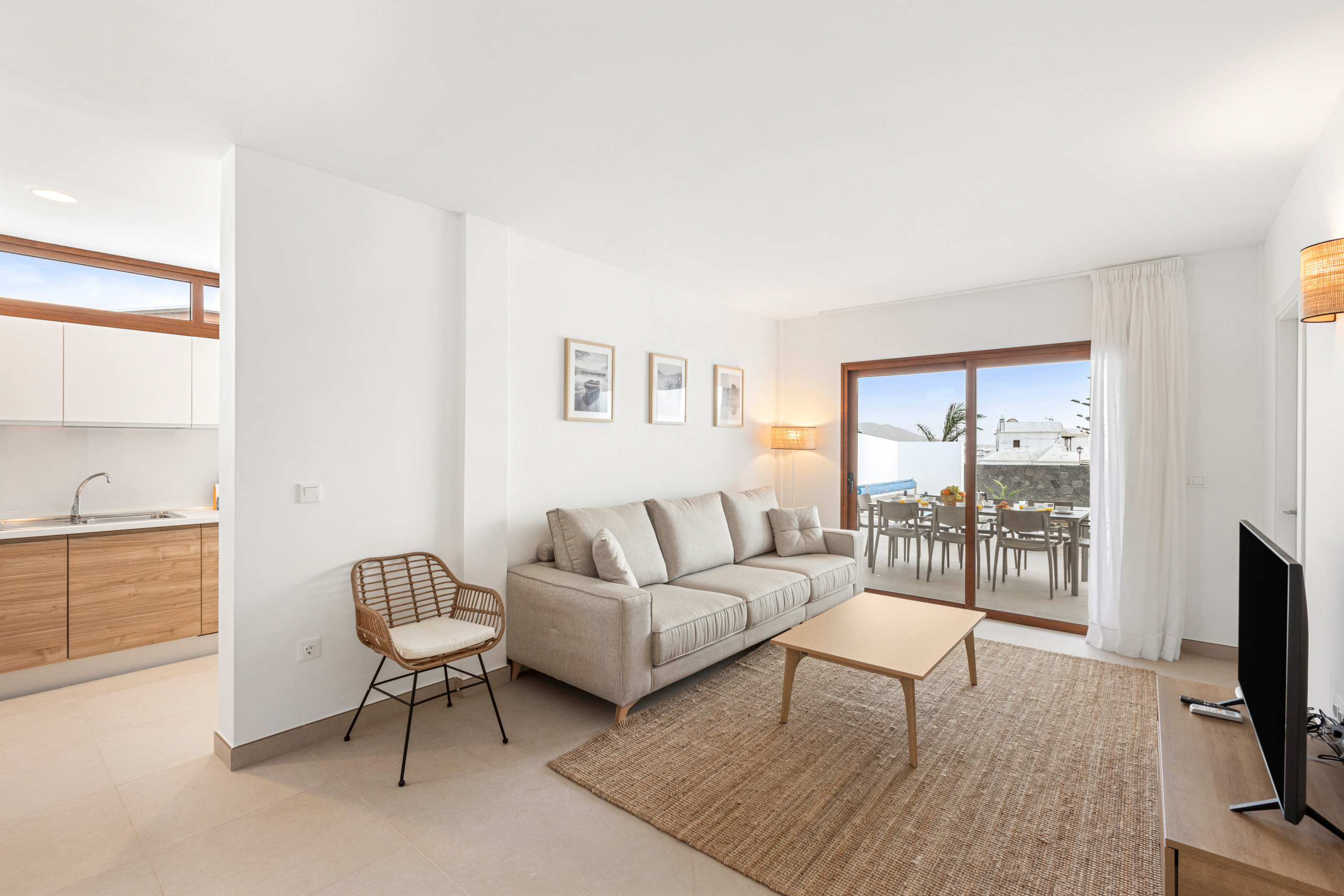 As for the common areas, the open-plan kitchen is fully equipped with appliances such as fridge, freezer, washing machine, dishwasher, oven, microwave, coffee maker and toaster, among others. You can easily prepare your meals and enjoy them in the dining room or on the terrace.