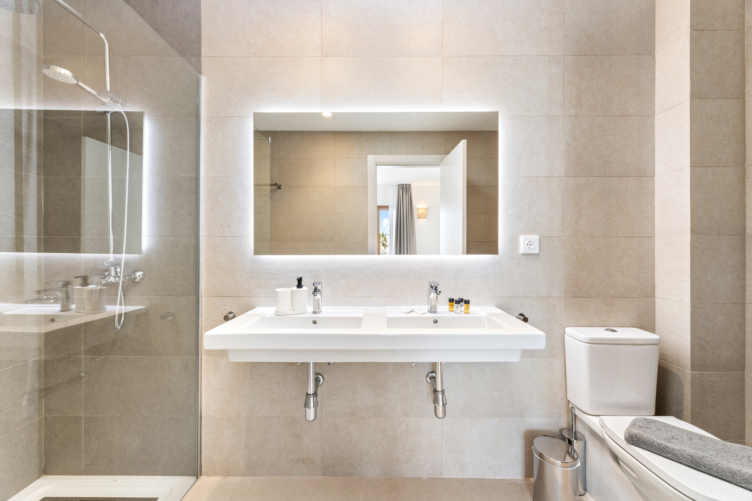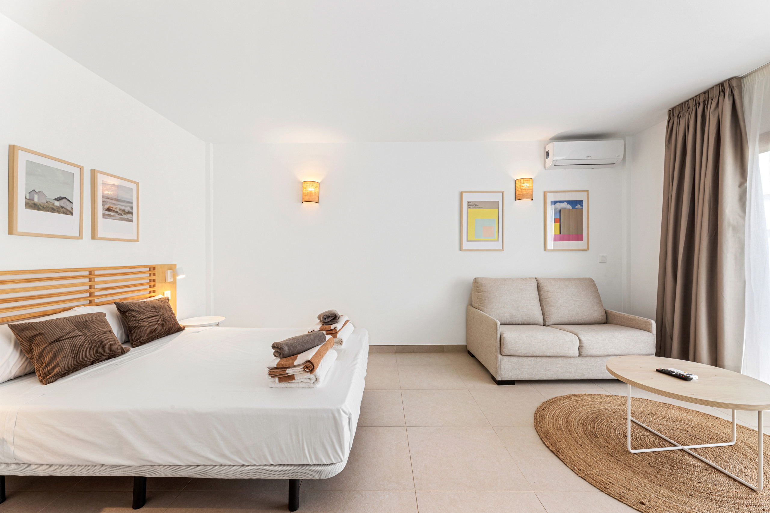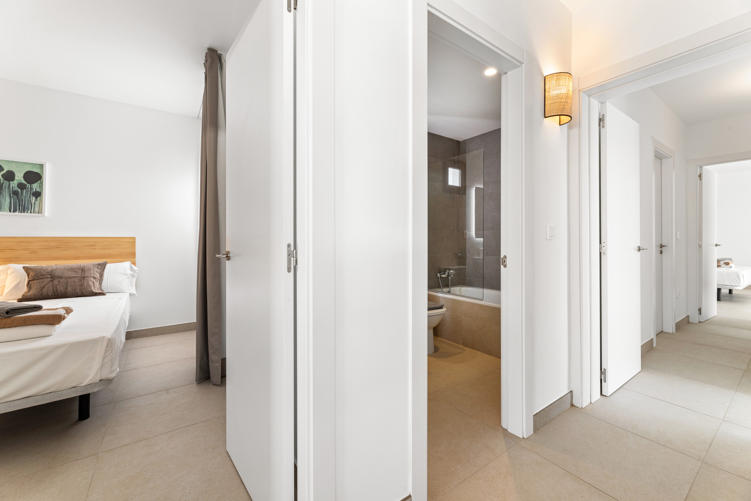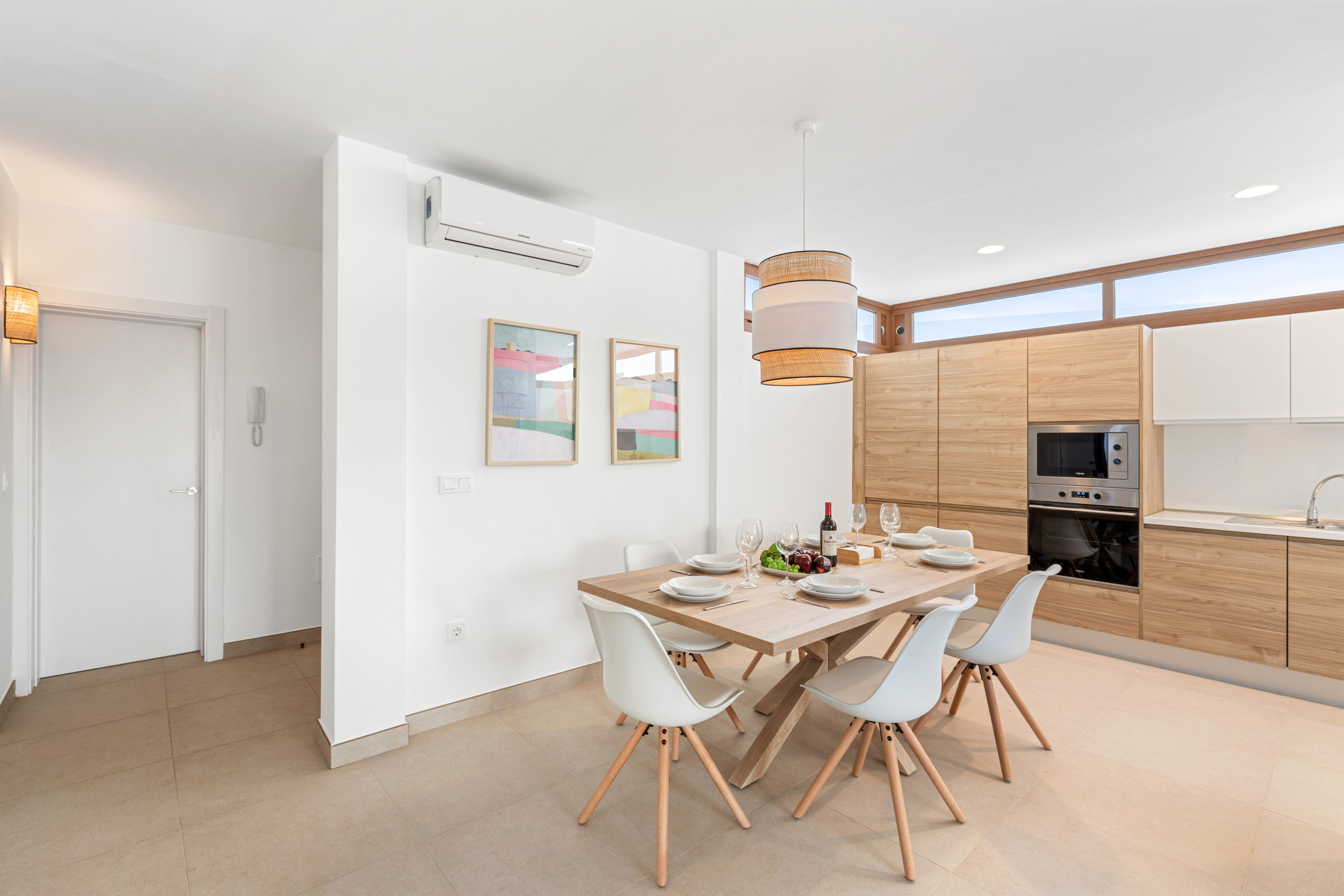 As for the common areas, the open-plan kitchen is fully equipped with appliances such as fridge, freezer, washing machine, dishwasher, oven, microwave, coffee maker and toaster, among others. You can easily prepare your meals and enjoy them in the dining room or on the terrace.