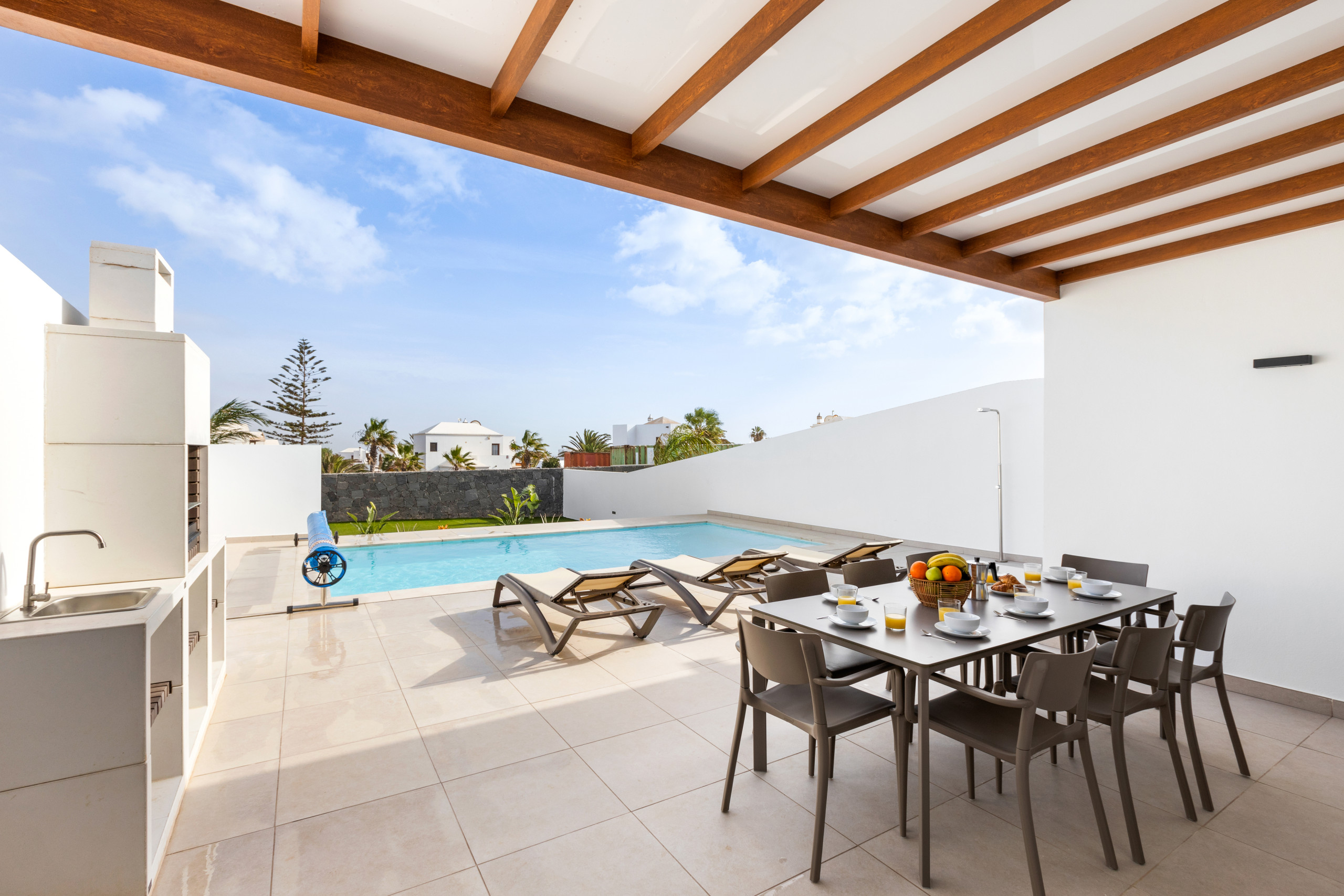 You deserve a family or friends vacation in this spectacular and spacious villa located in Playa Blanca. With 4 bedrooms and 4 bathrooms, it can comfortably accommodate up to 6 people.