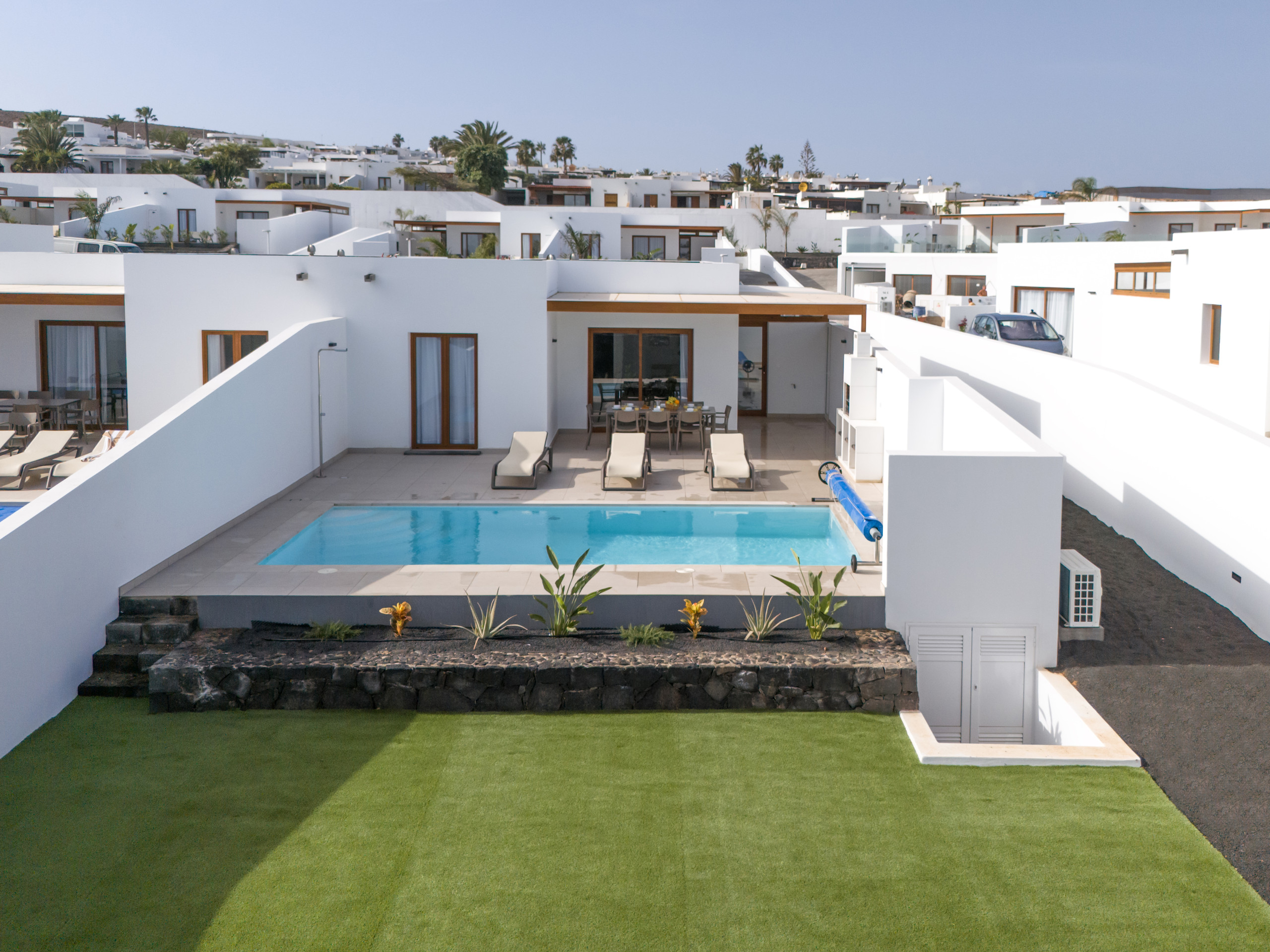 This luxurious and spectacular villa is located in Playa Blanca, offering families, couples and groups of friends an ideal environment to enjoy a relaxing holiday.