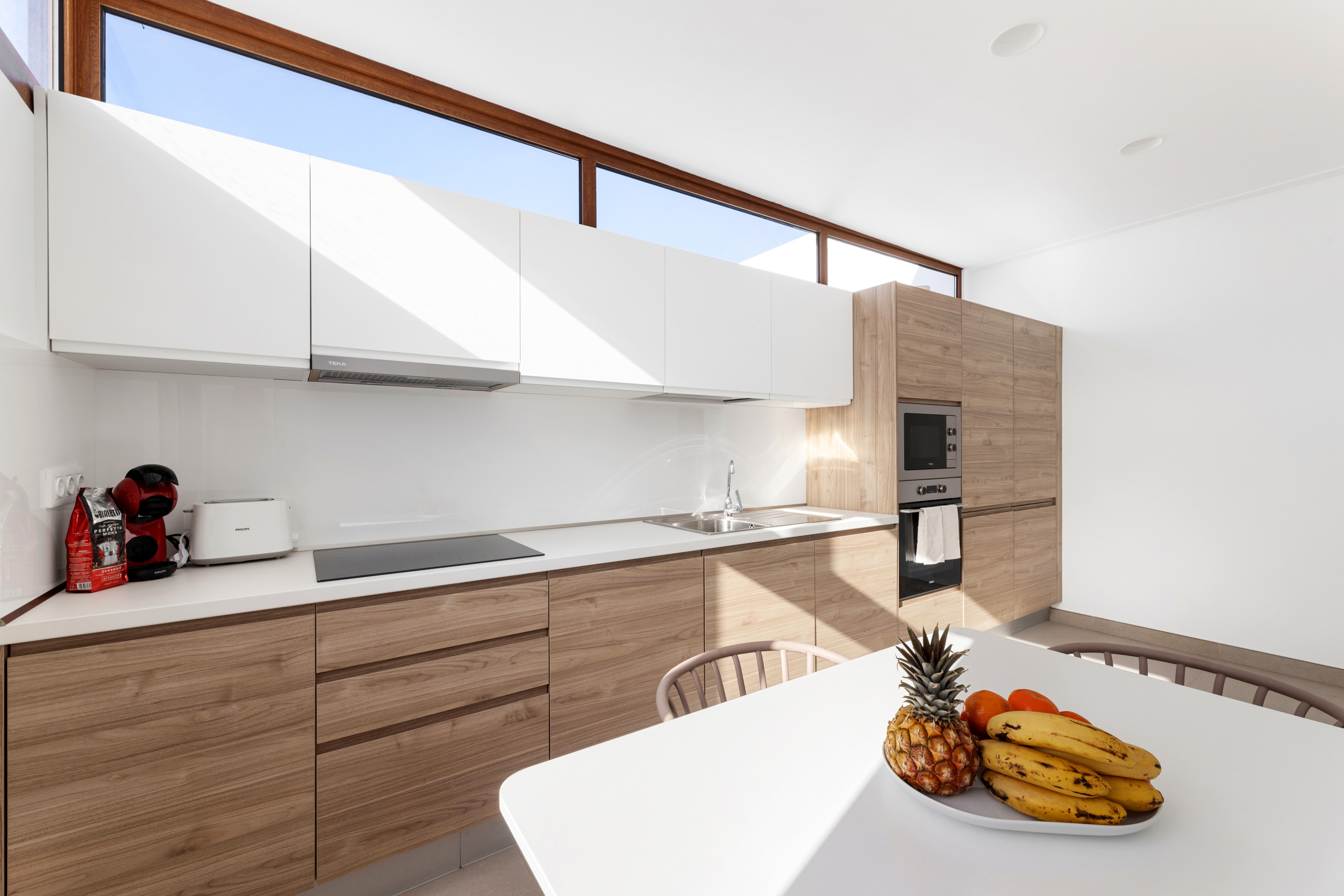 The fully equipped open-plan kitchen includes state-of-the-art appliances such as a fridge, freezer, oven, microwave, dishwasher, coffee maker and toaster, among others, facilitating the preparation of meals and snacks. It also has cooking utensils and a complete set of tableware.