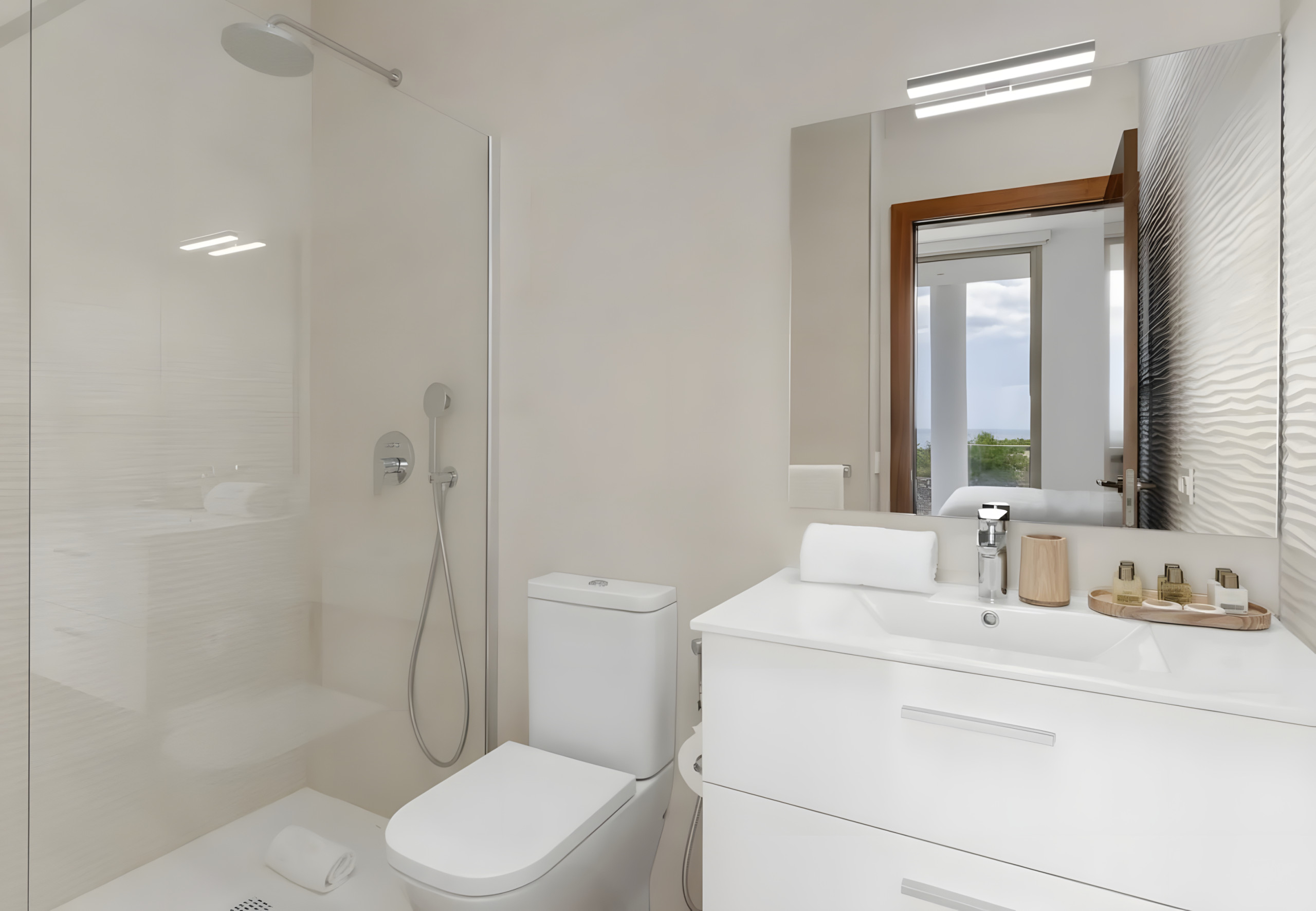 Go up and discover a private oasis: three rooms full of calm and elegance, two of them en suite. The main bedroom offers you a movie-style dressing room and a terrace with a jacuzzi, perfect for watching the sun set behind the sea, drink in hand.