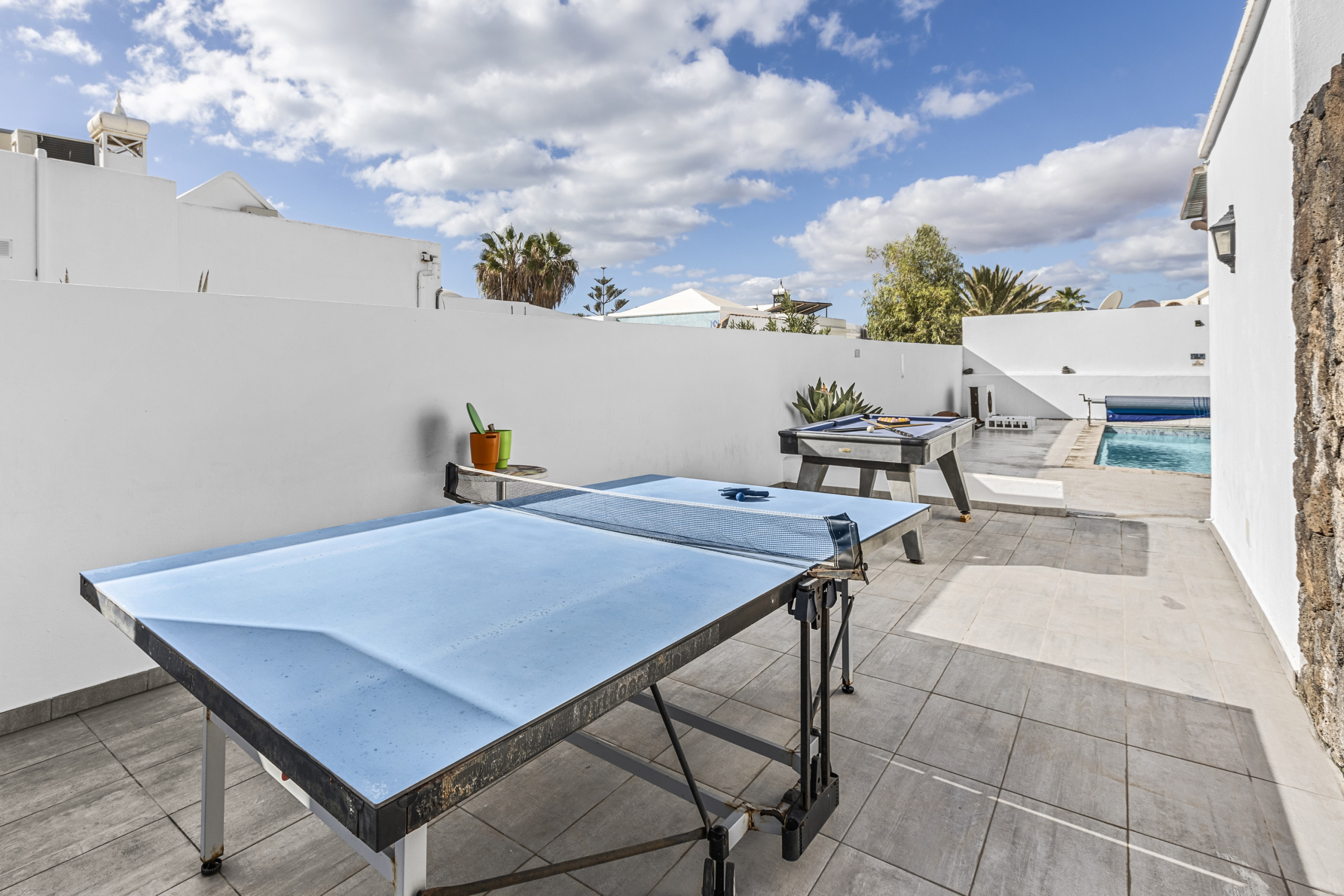 The villa has three double bedrooms, two bathrooms (one of them en suite), air conditioning in all bedrooms, fully equipped independent kitchen, living room with views of the pool, large terrace with heated pool (heating the pool has a cost extra), solarium, pool table and pingpong, and free WIFI throughout the accommodation.