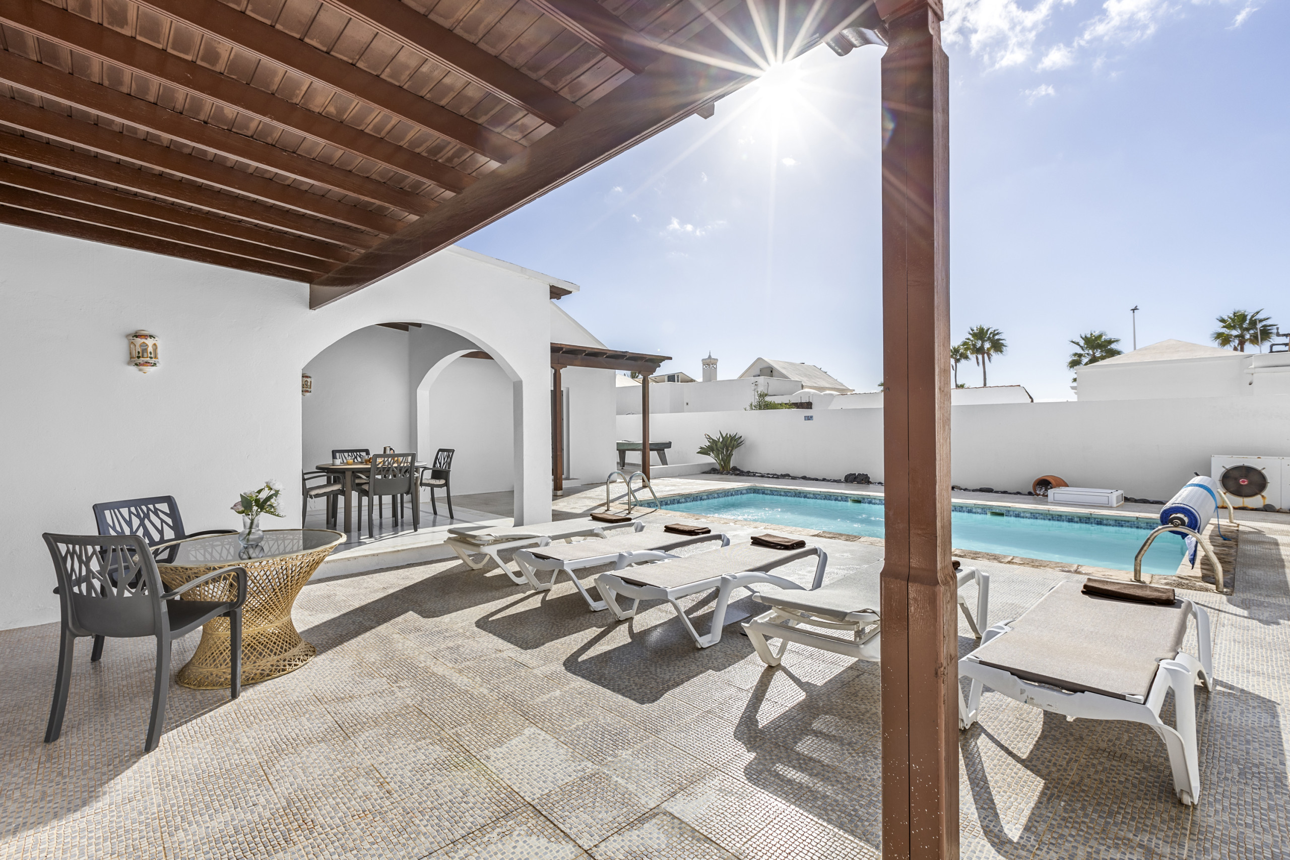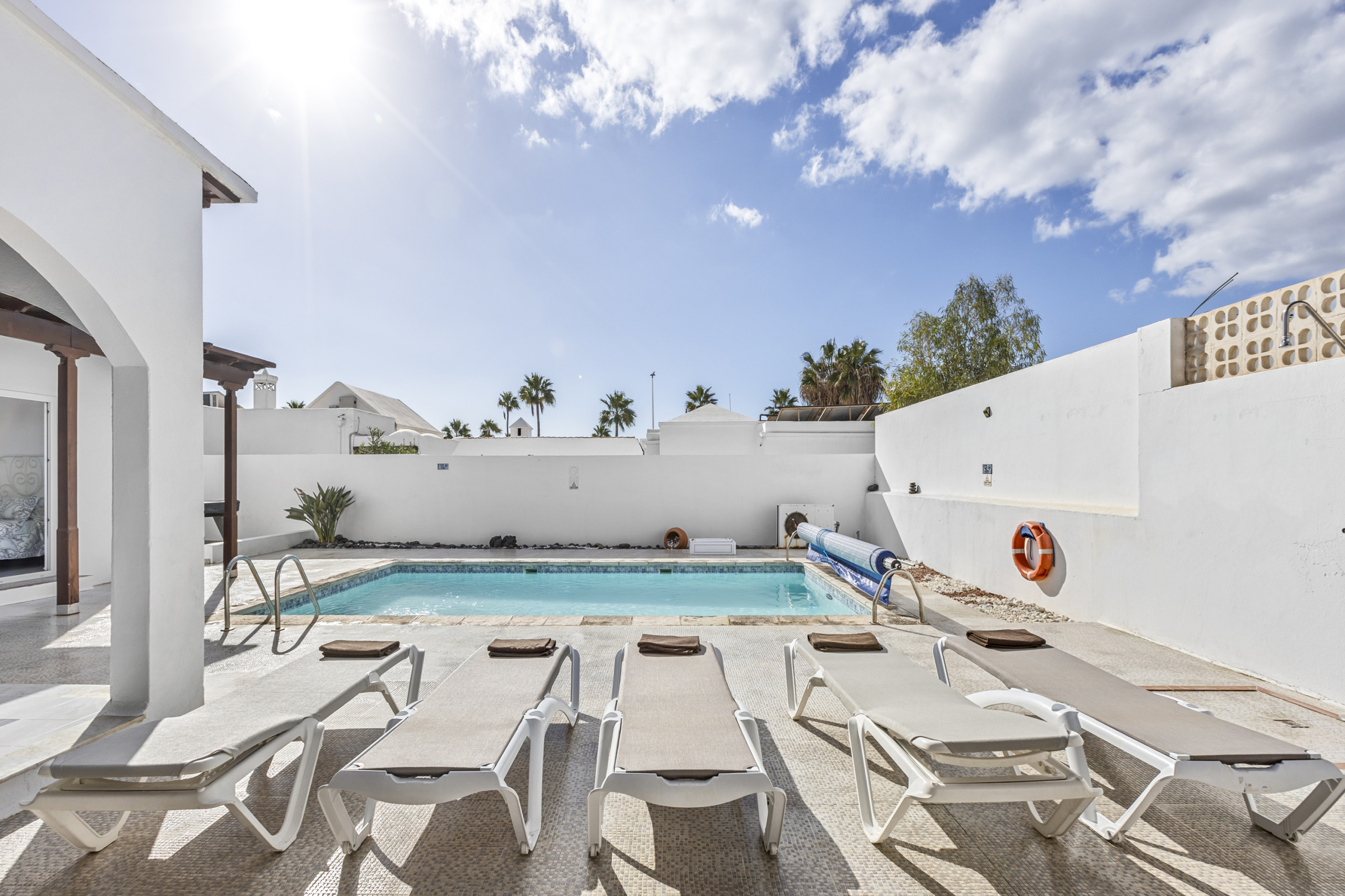 Villa Eva is a spectacular holiday property located in the heart of Puerto del Carmen, Lanzarote. Its privileged location above the old port places it in an incredibly quiet, safe and peaceful area but at the same time a few minutes walk from bars, restaurants or Playa Chica, a benchmark of beauty on the island's beaches.