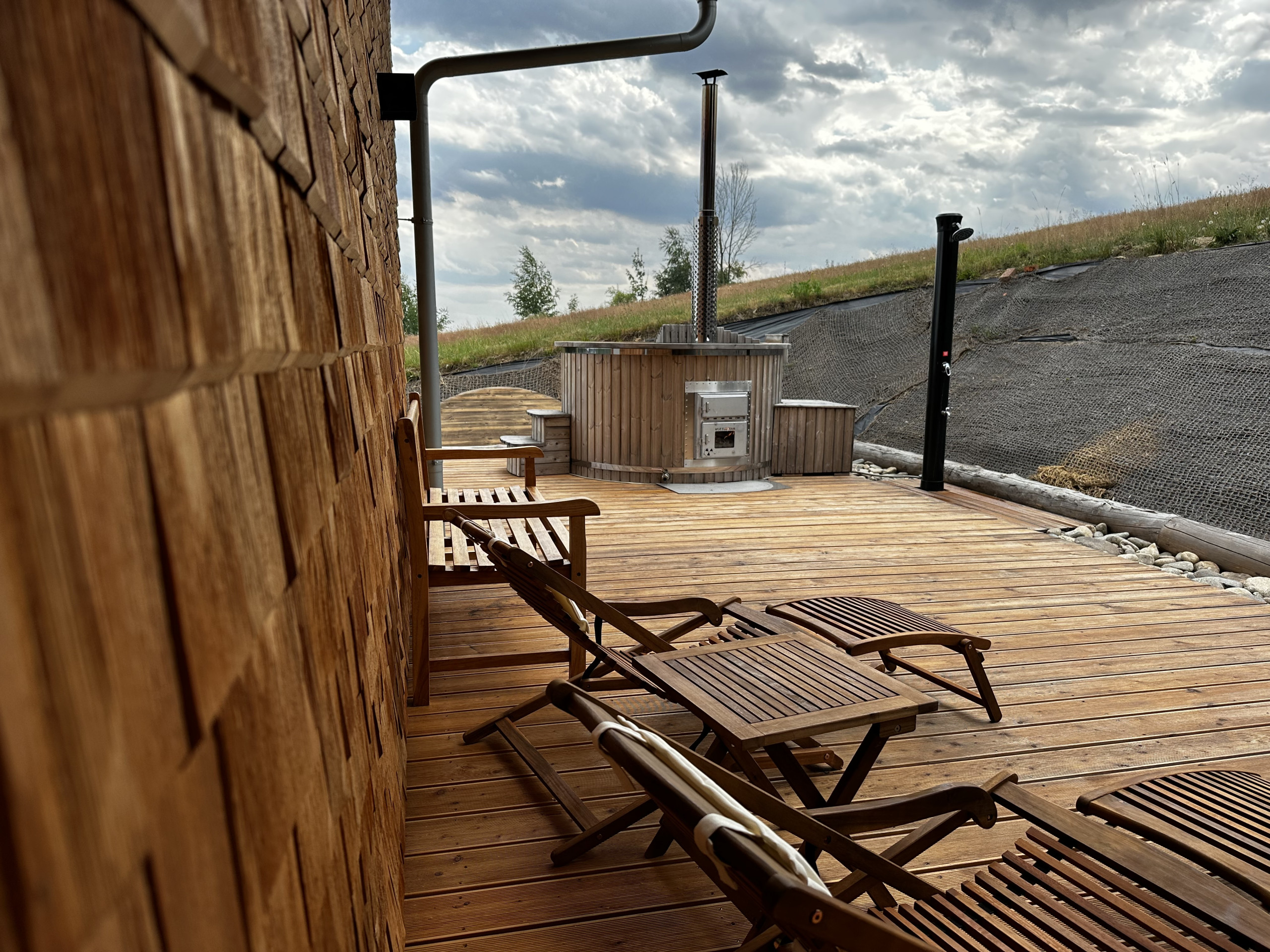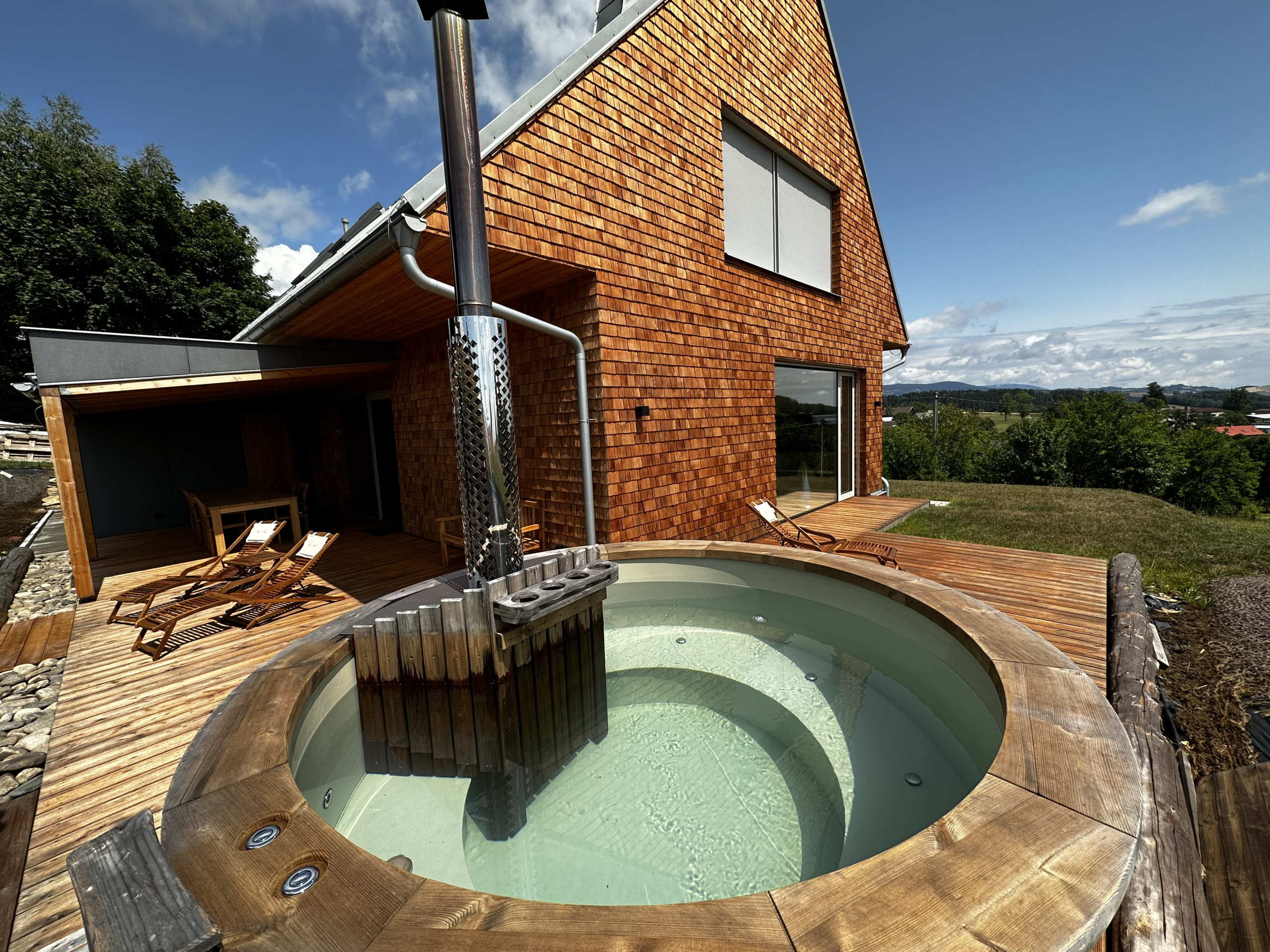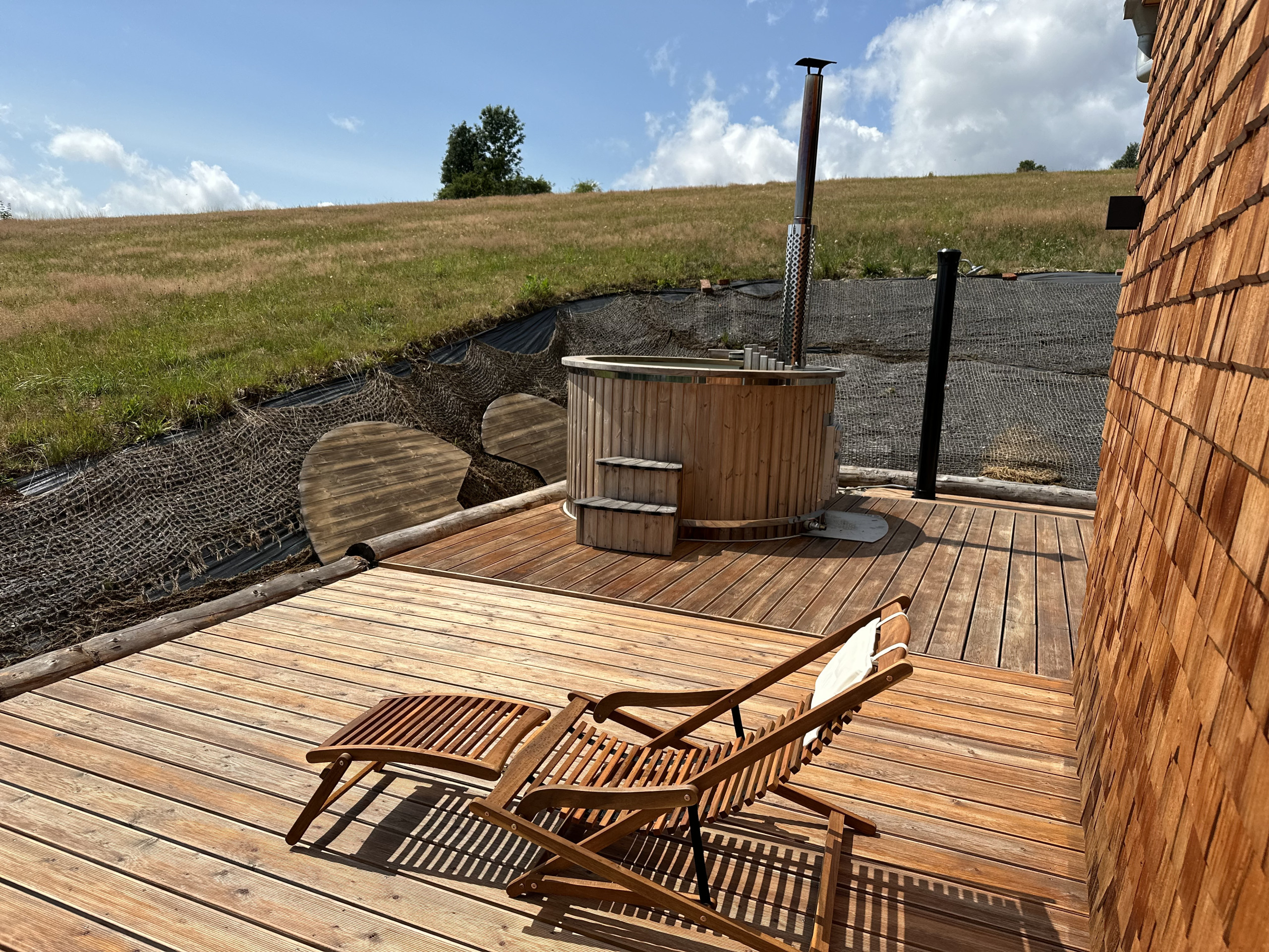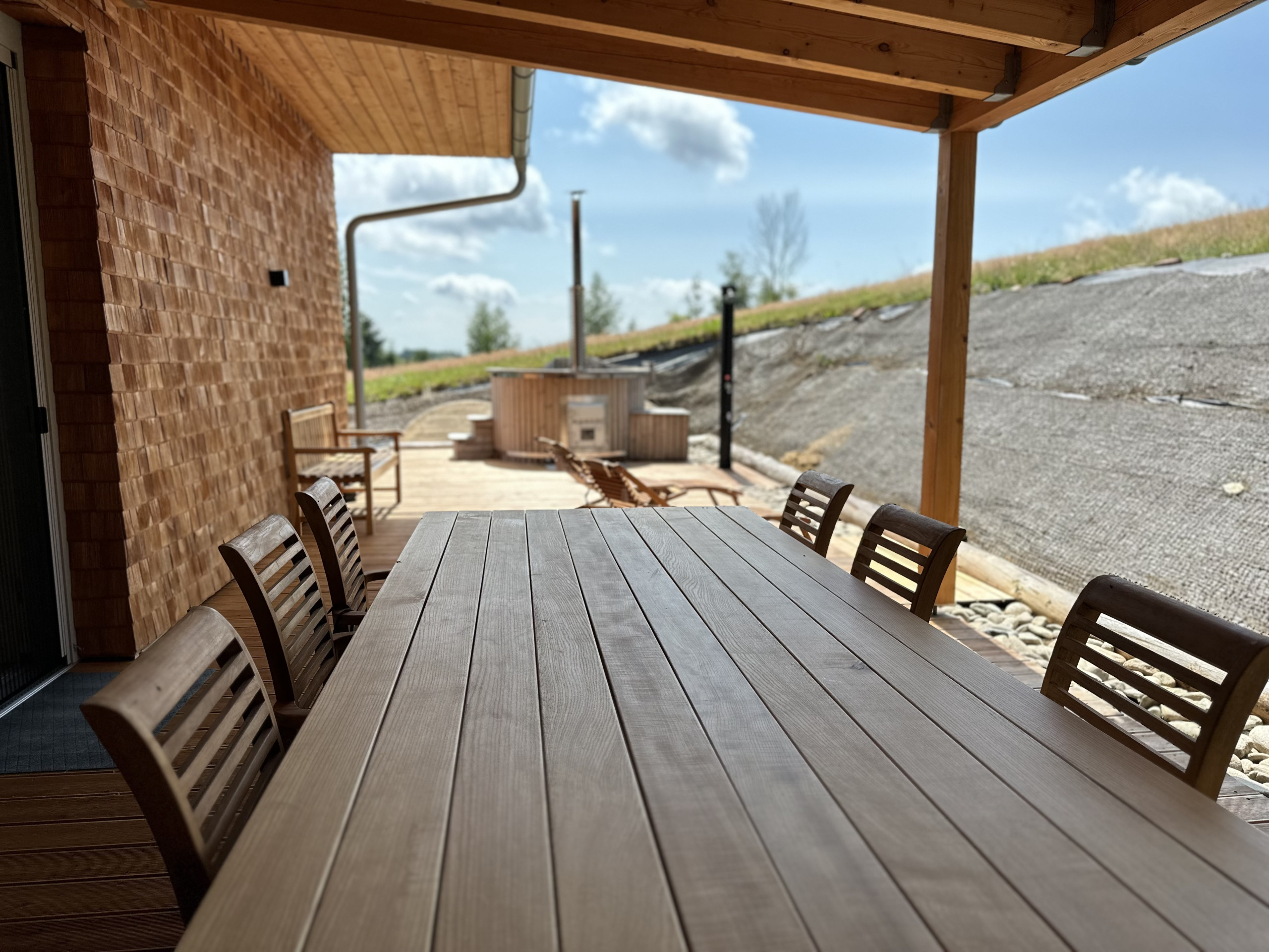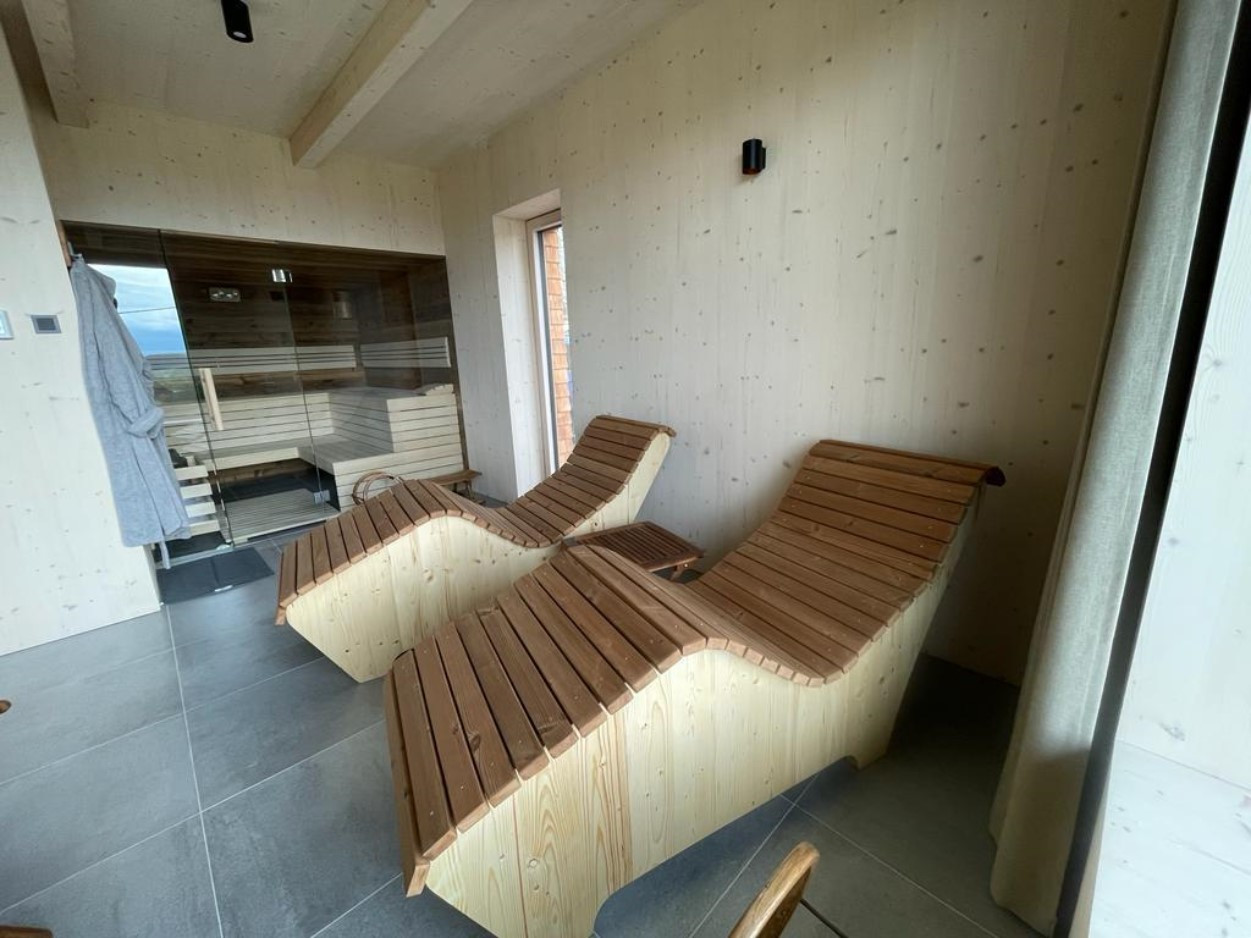 When the sun is shining, the terrace invites relaxation with comfortable garden furniture, perfect for a quiet morning or a romantic sunset. Barbecuing under the starry sky or enjoying the warmth of a fireplace, the wood is already prepared for you, free of charge. And for ultimate relaxation, there's a sauna and jacuzzi, included in the price, although energy costs are calculated separately. In winter, 20 kW of electricity is included, in summer 100 kW.