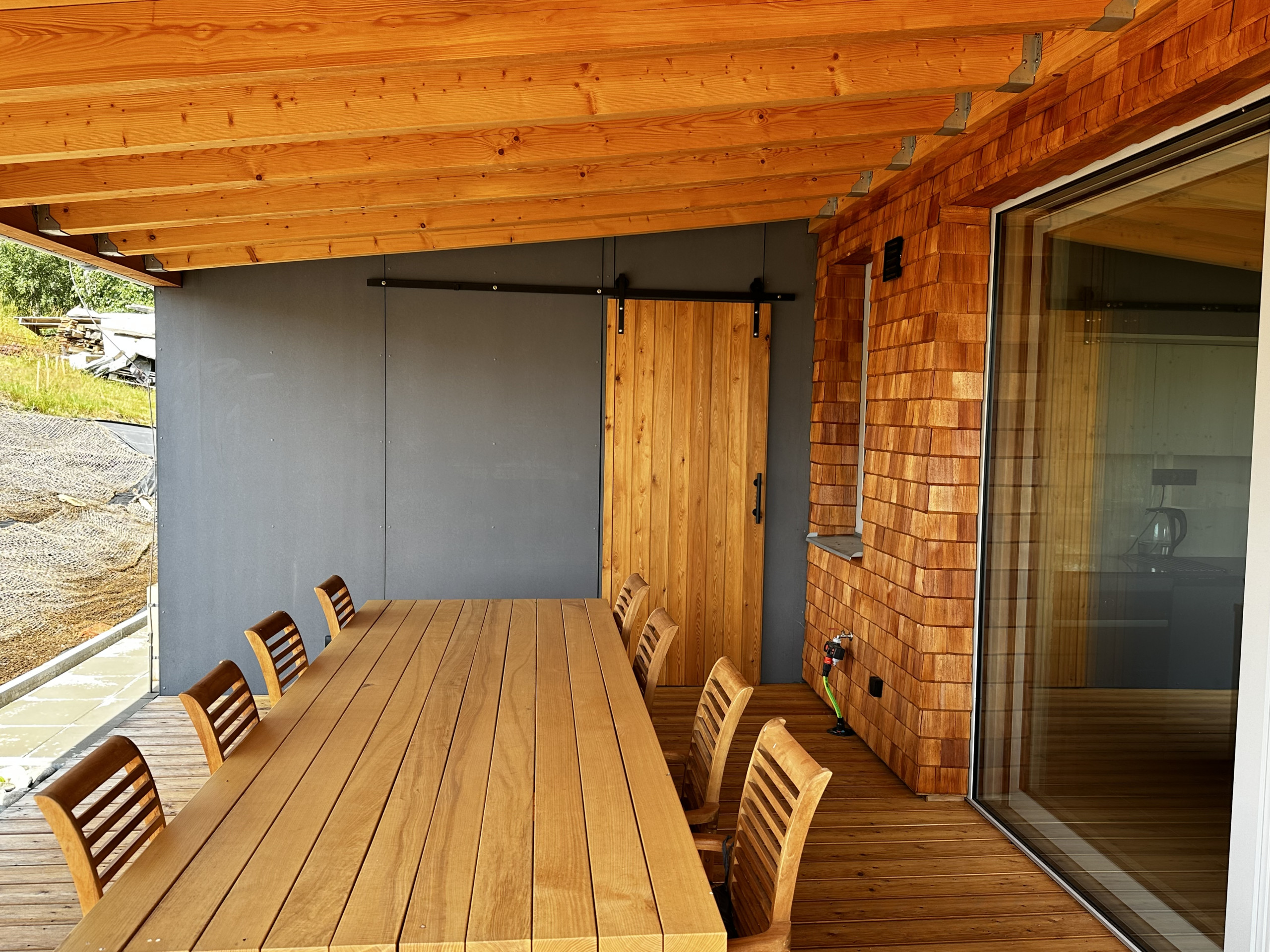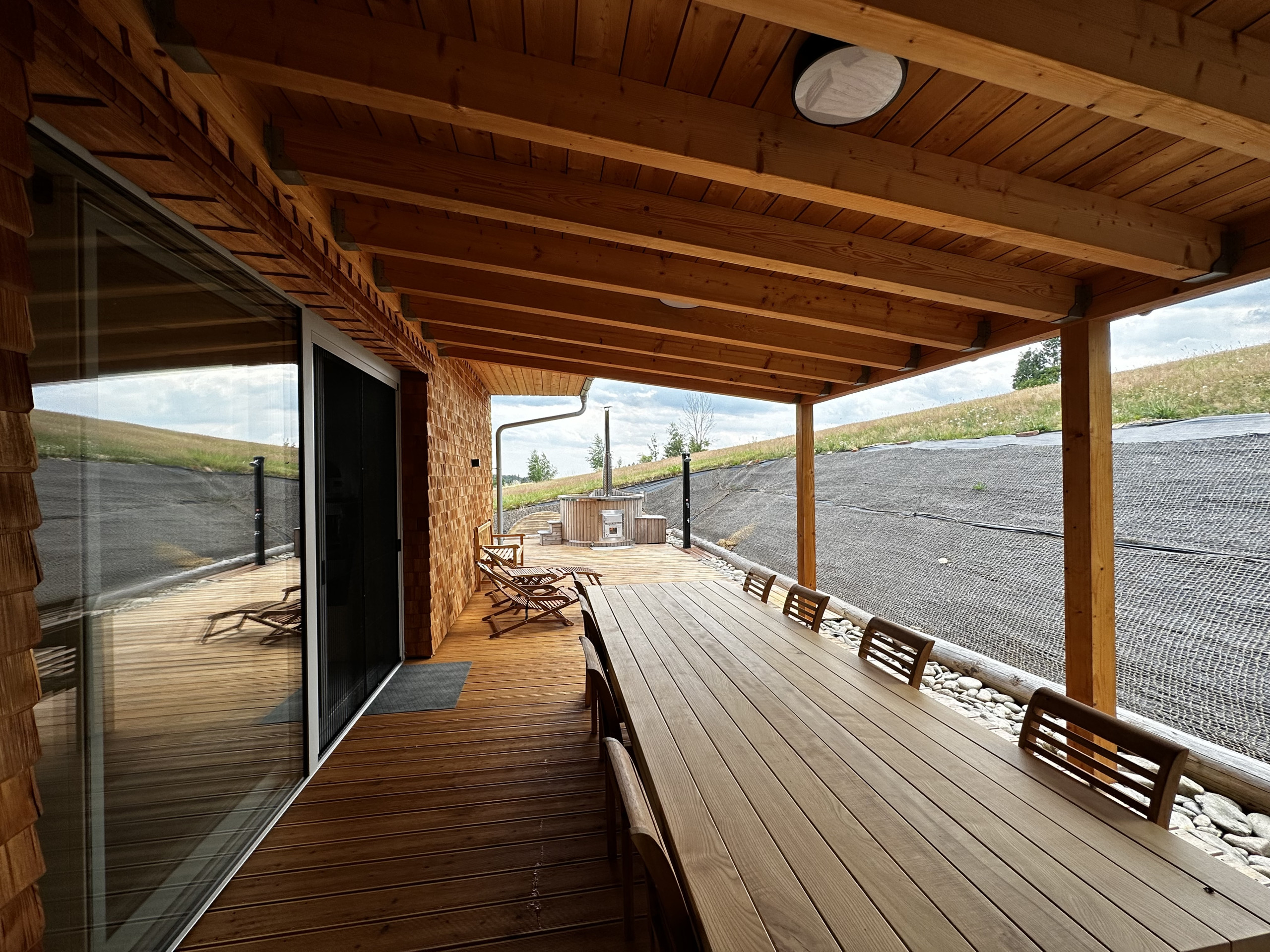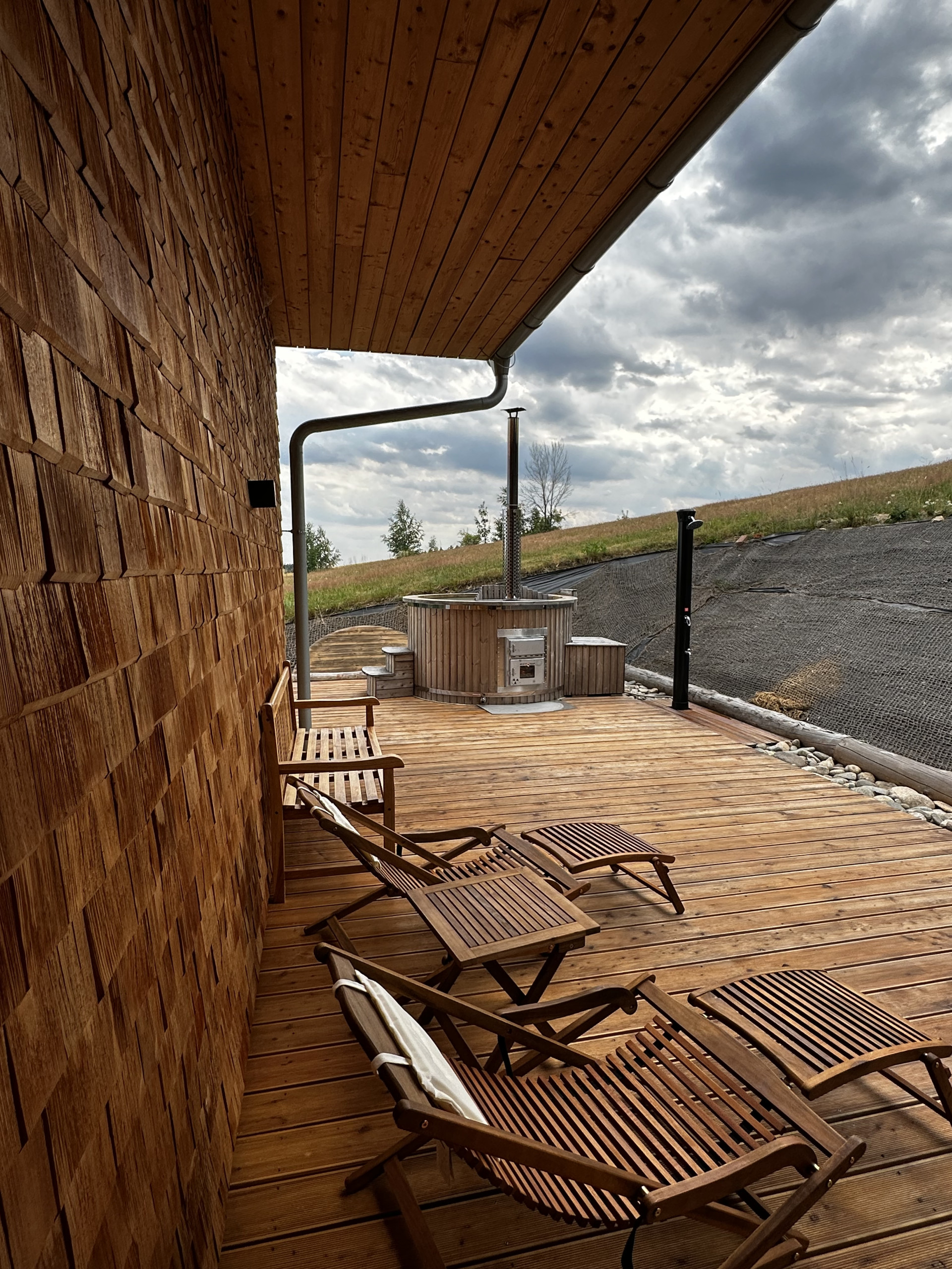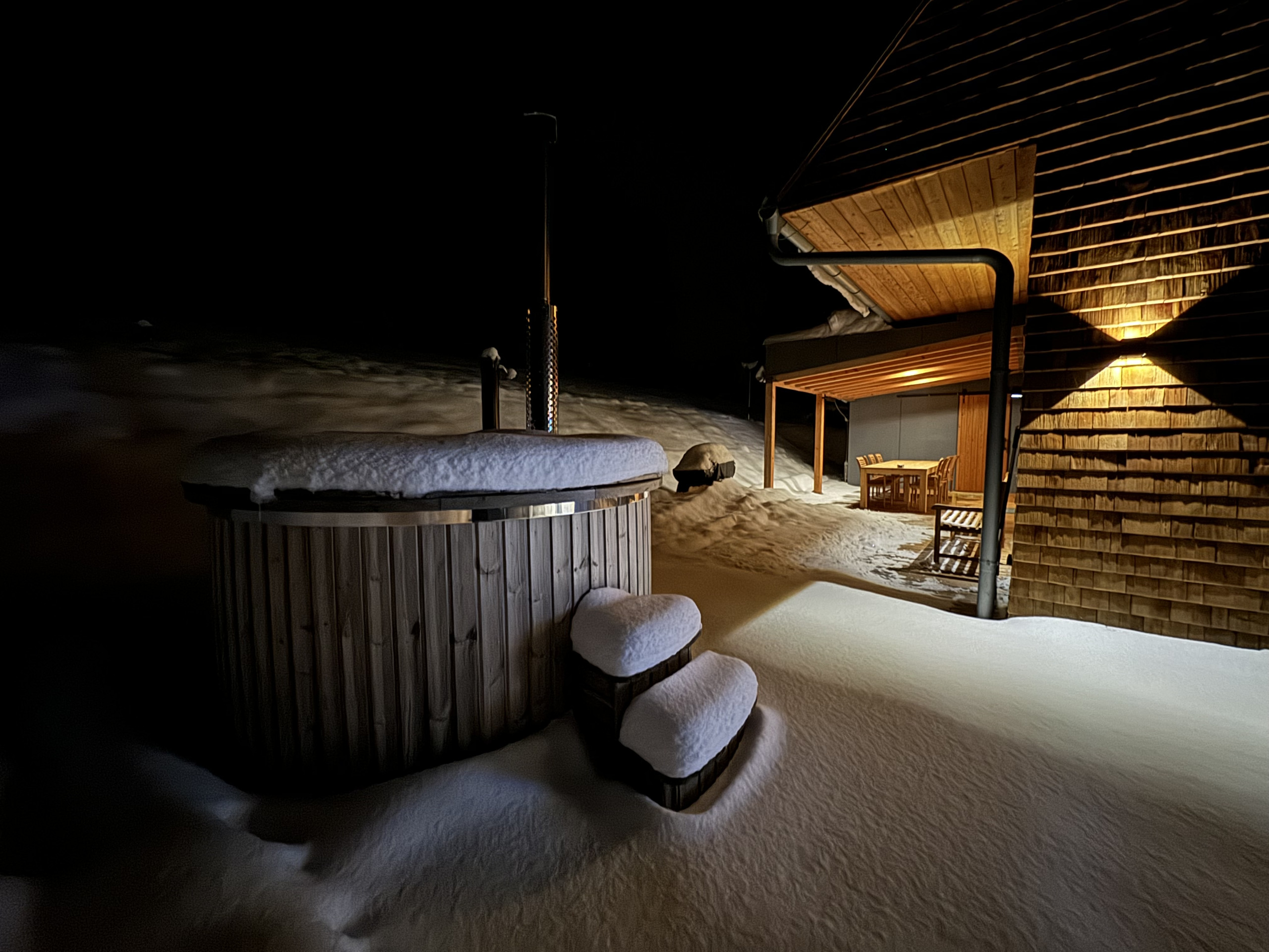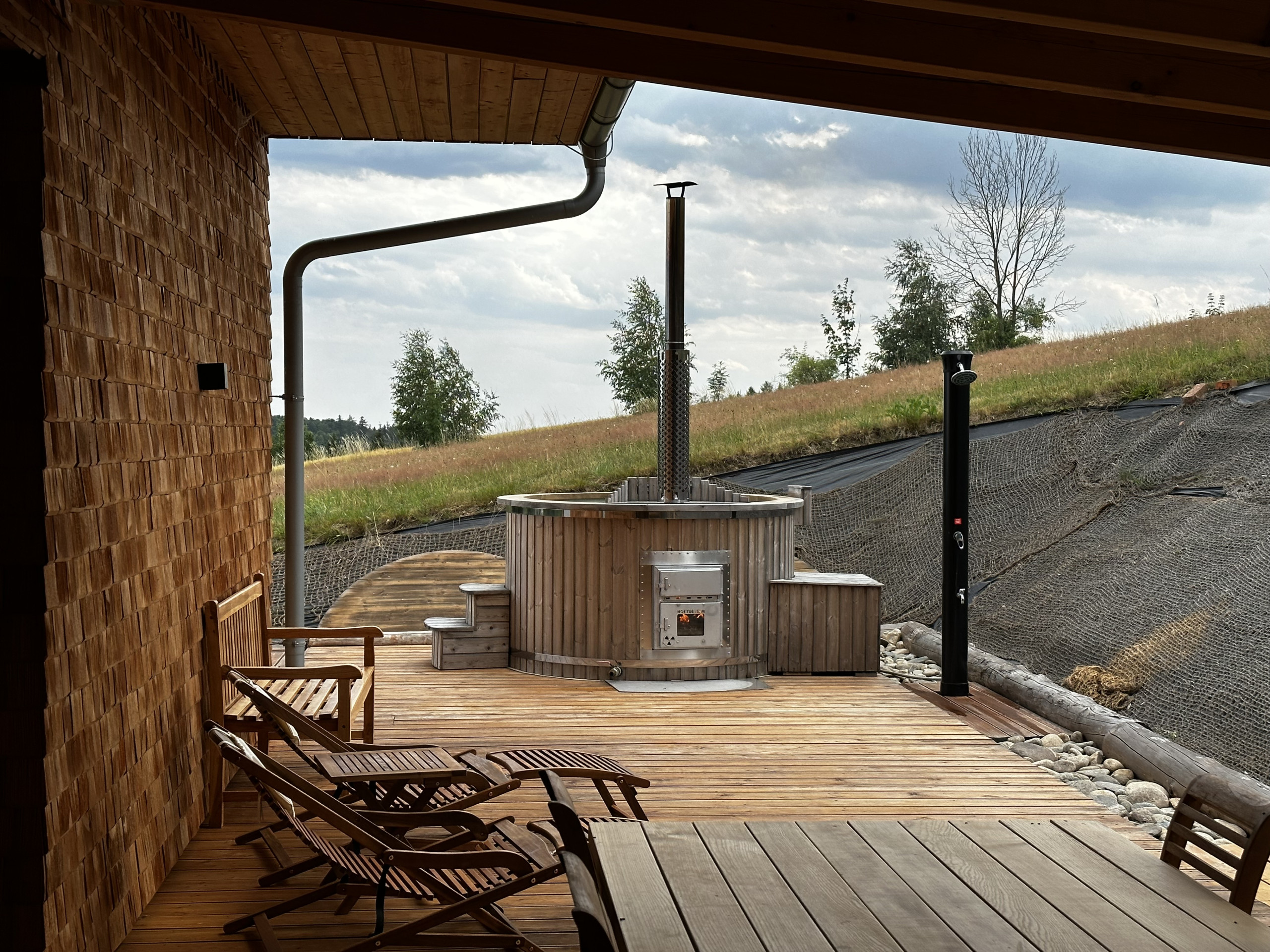 When the sun is shining, the terrace invites relaxation with comfortable garden furniture, perfect for a quiet morning or a romantic sunset. Barbecuing under the starry sky or enjoying the warmth of a fireplace, the wood is already prepared for you, free of charge. And for ultimate relaxation, there's a sauna and jacuzzi, included in the price, although energy costs are calculated separately. In winter, 20 kW of electricity is included, in summer 100 kW.