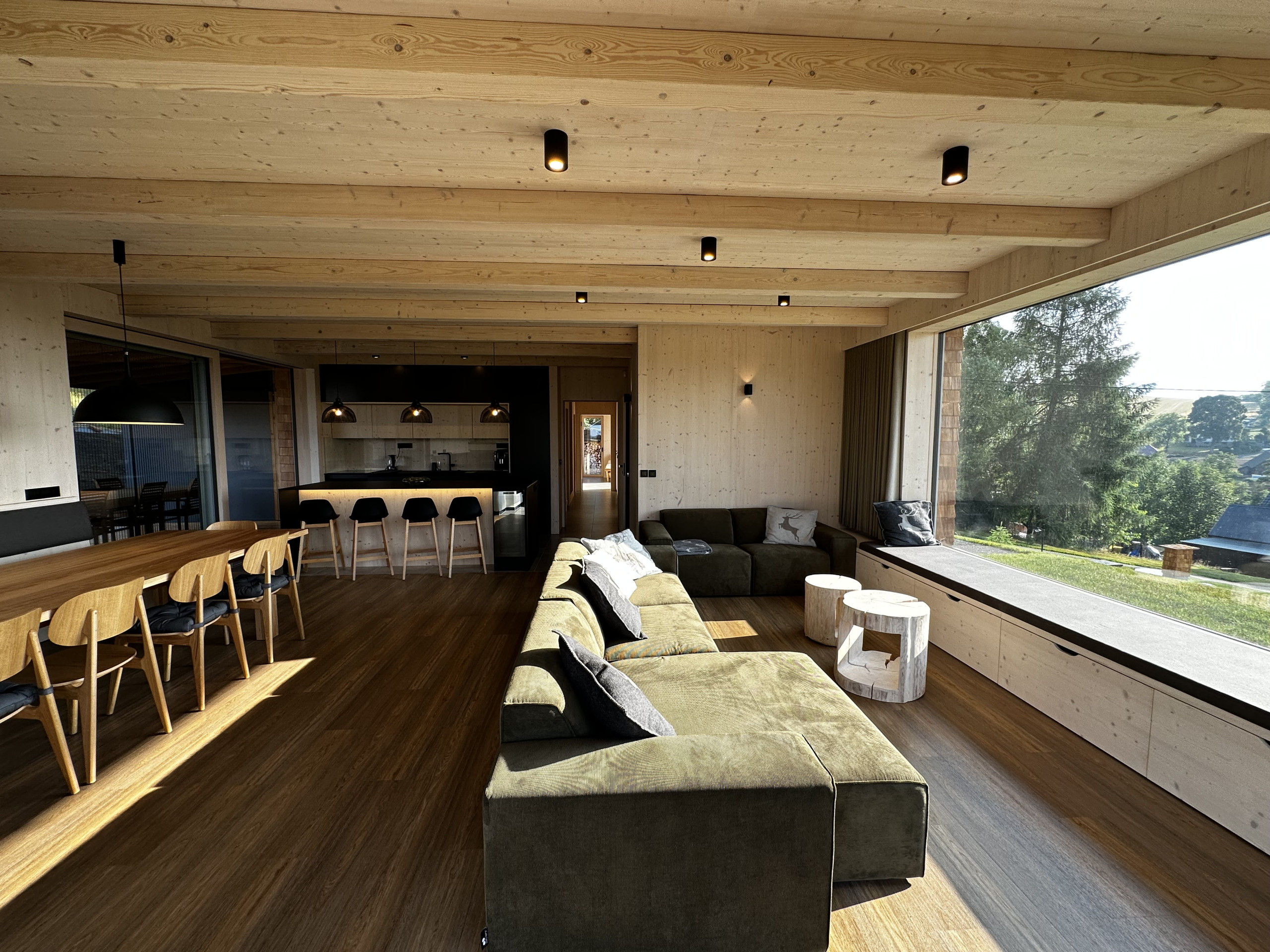 The property accommodates 14 people, spread across 5 cozy bedrooms and 3 luxurious bathrooms. From the living room extends a panoramic window, allowing you to admire the beautiful nature around you. Each room is equipped with a television, ready for a relaxing evening with satellite or Netflix entertainment. And the kitchen? A modern, fully equipped space with a giant dining table to enjoy delicious meals together. Don't forget to bring some wine specialties for the small but fine wine cellar.