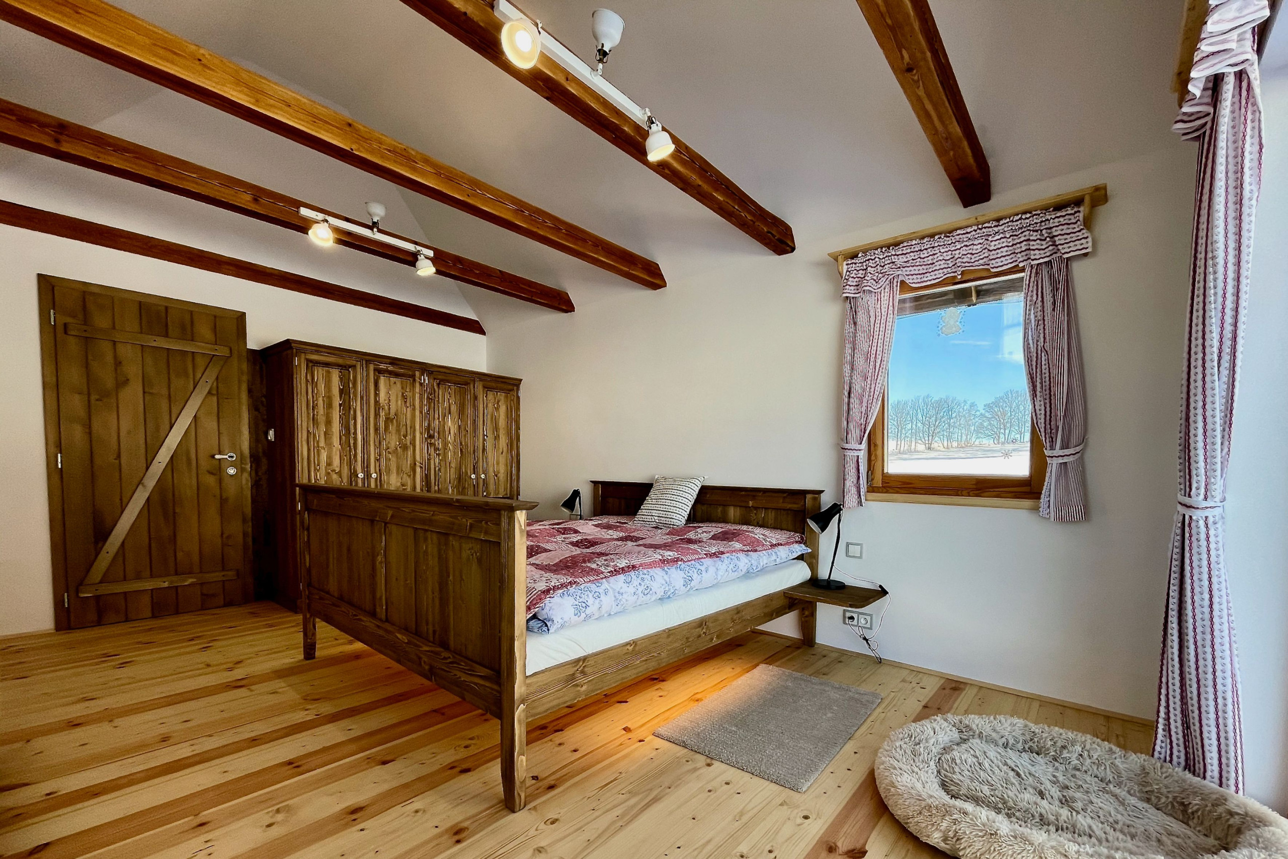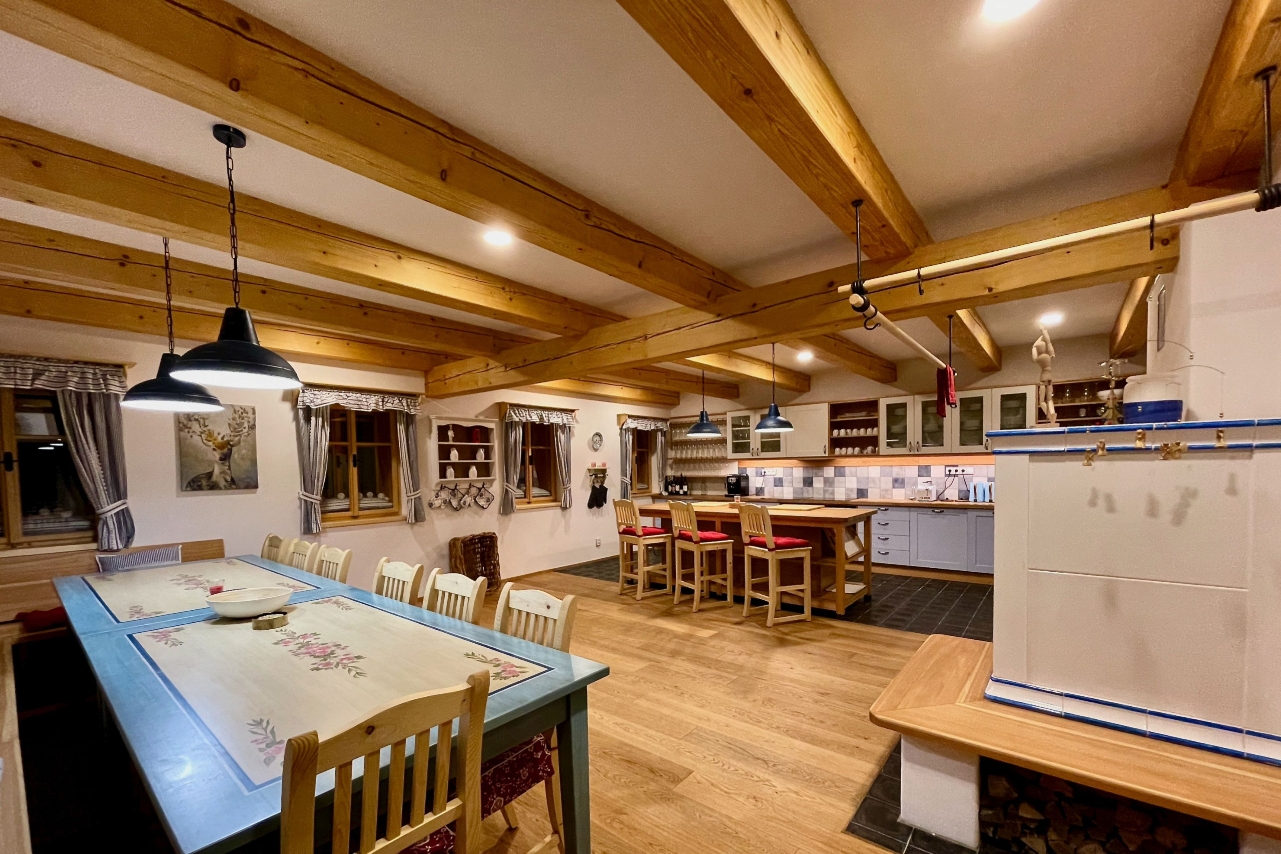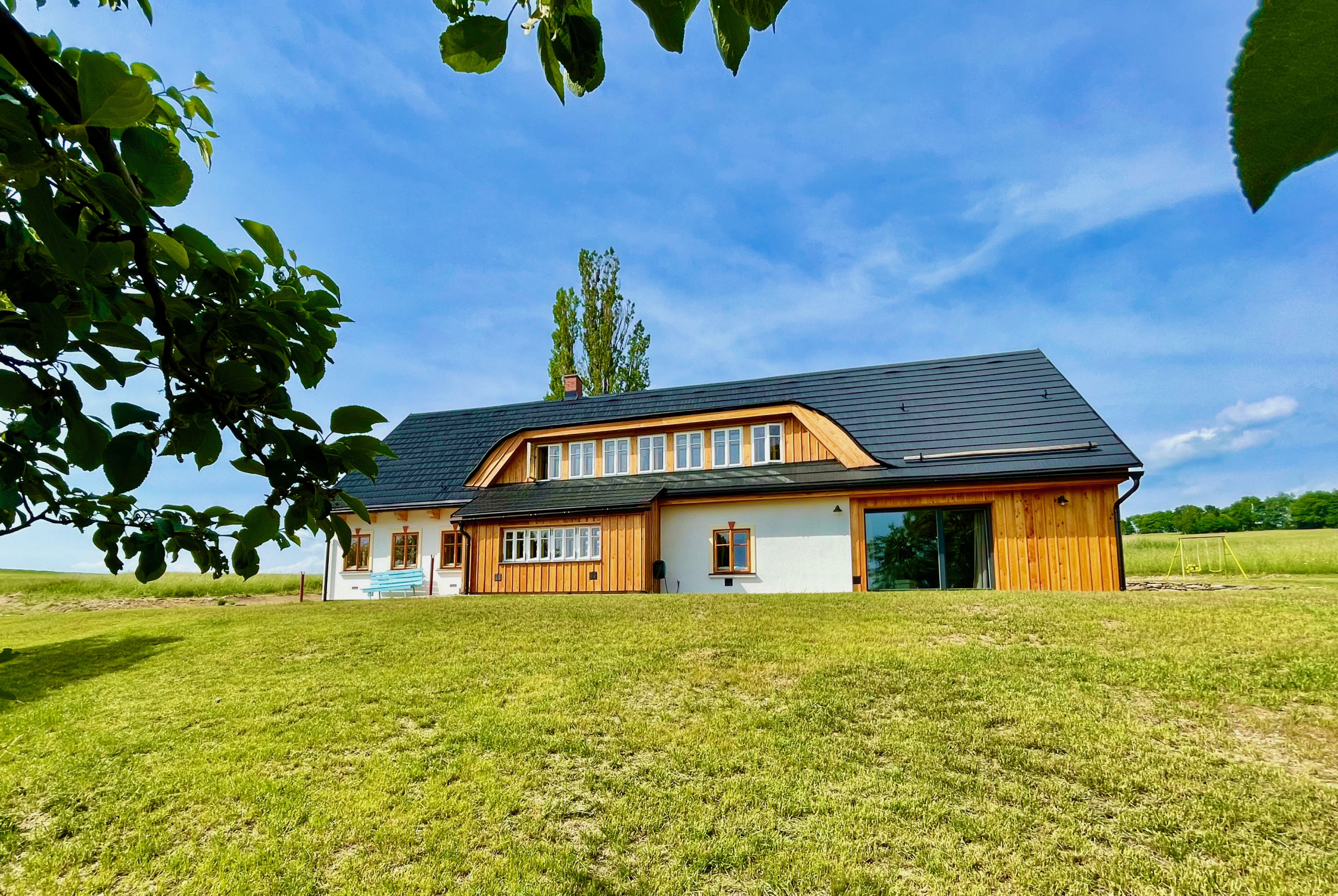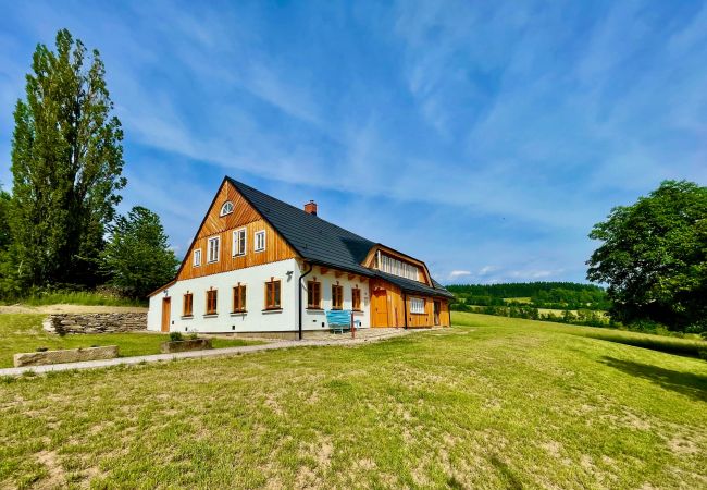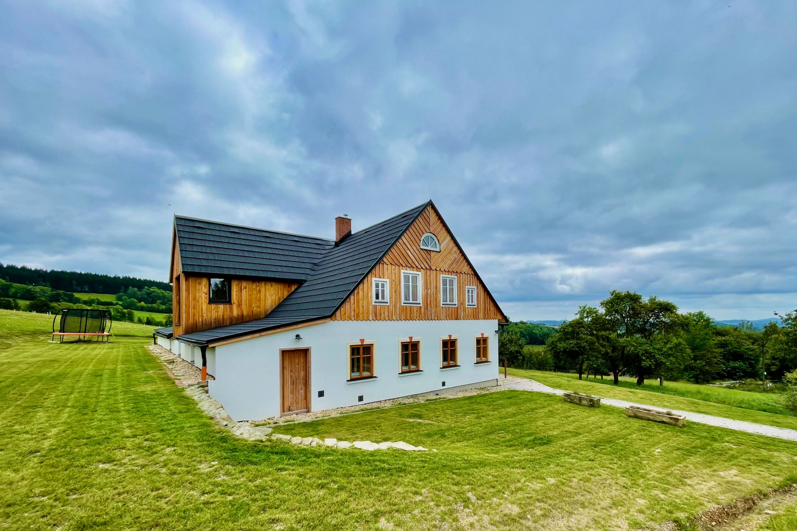 The large garden invites relaxation, whether you're enjoying a quiet morning coffee or a cozy evening under the stars. For your convenience, there is a private parking available. Inside, the traditional tile stove provides a warm and cozy atmosphere, while the sauna (usable with coins of 10/20/50 CZK) offers ultimate relaxation. Towels are provided in the sauna. The house is equipped with luxurious amenities throughout, making your stay unforgettable. Enjoy the peace and quiet under the down comforters and leave the stress of daily life behind.