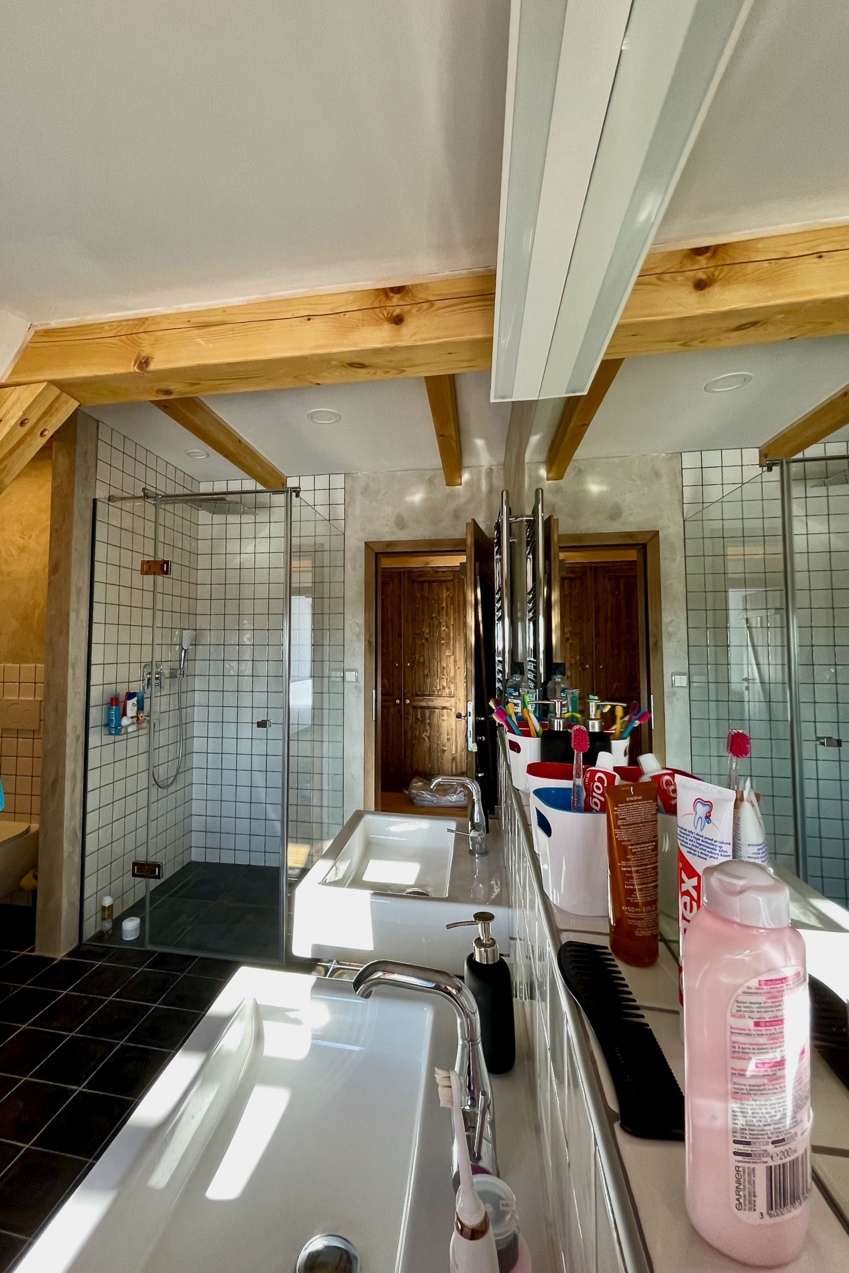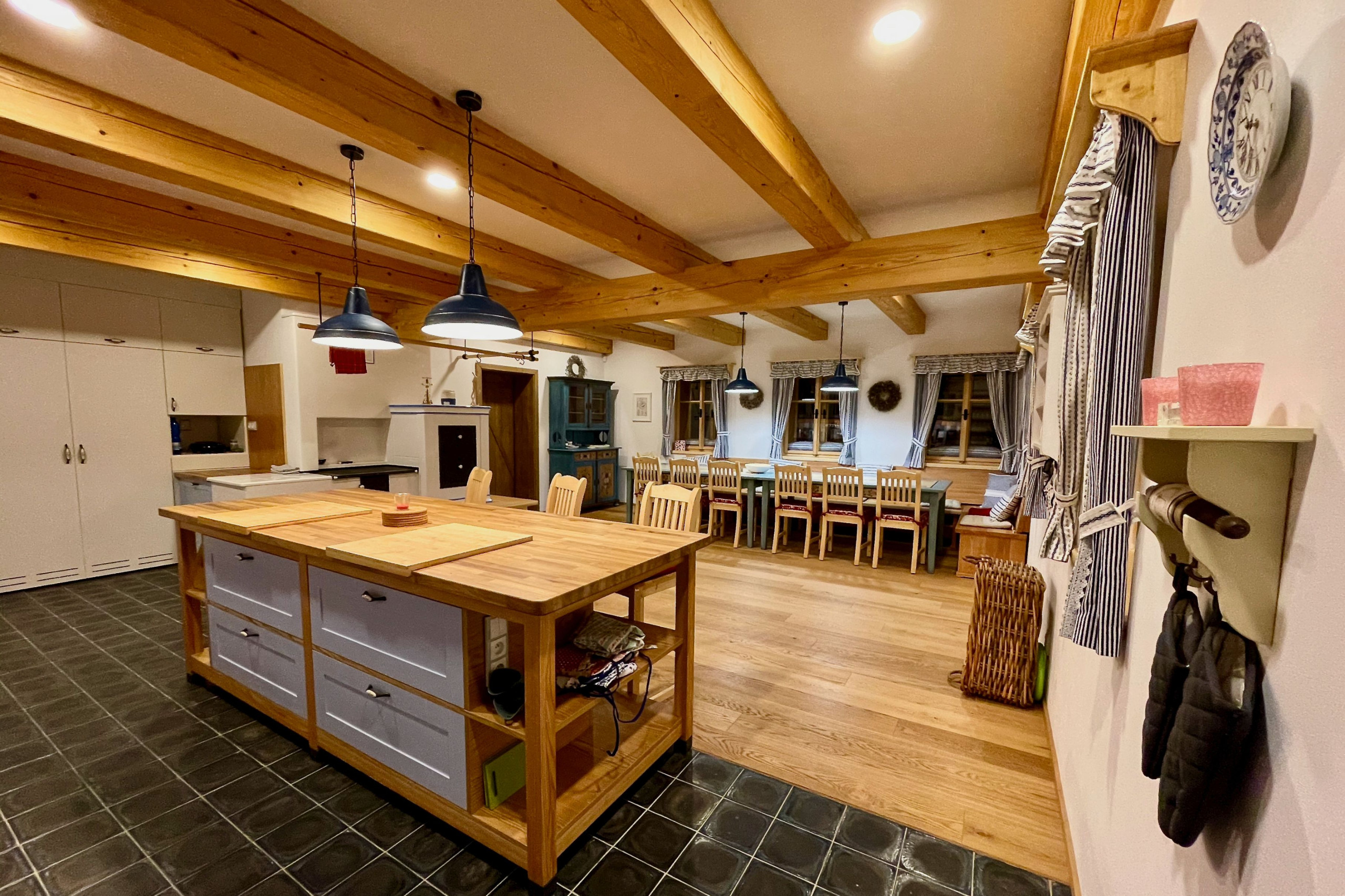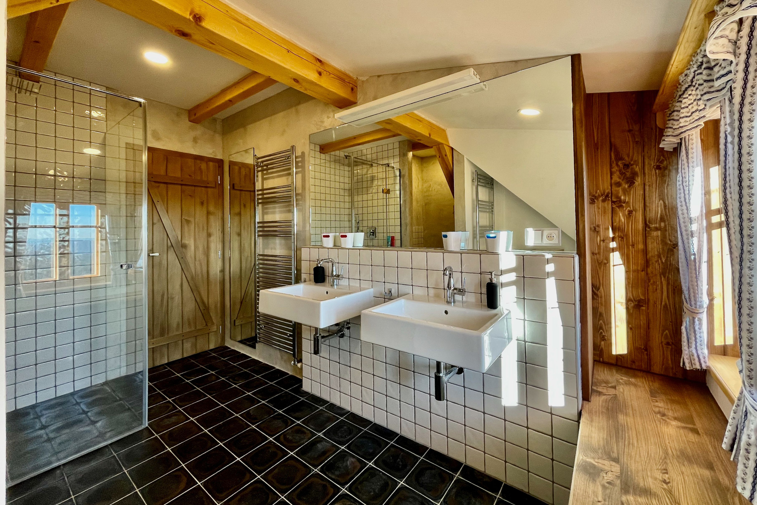 The spacious 400m² house accommodates 14 guests and is equipped with every imaginable luxury. Start your day with a delicious breakfast in the fully equipped kitchen and then enjoy a meal together in the spacious dining room. The five comfortable bedrooms, each with luxury beds and ample storage space, ensure a good night's sleep. With two spacious bathrooms and four toilets, you'll never have to wait.