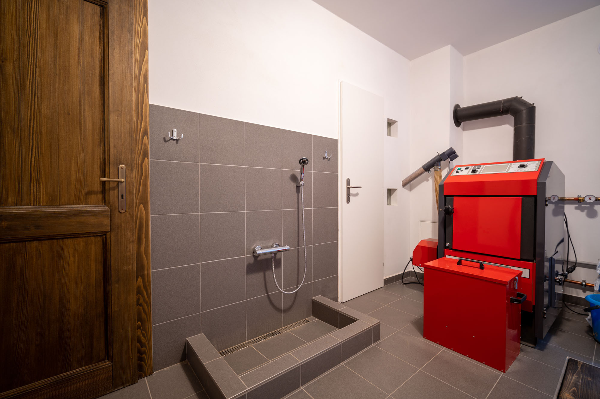 The chalet also offers a fantastic wellness experience. Relax in the sauna or enjoy the warmth of the wood-fired hot tub. Use of both the sauna and the hot tub is free of charge. For the sauna, you only pay for the energy consumed (€0.35/kWh), and for the hot tub, only the briquettes are charged – and only if you use a lot. This way, you can fully enjoy your private wellness moment without any worries.