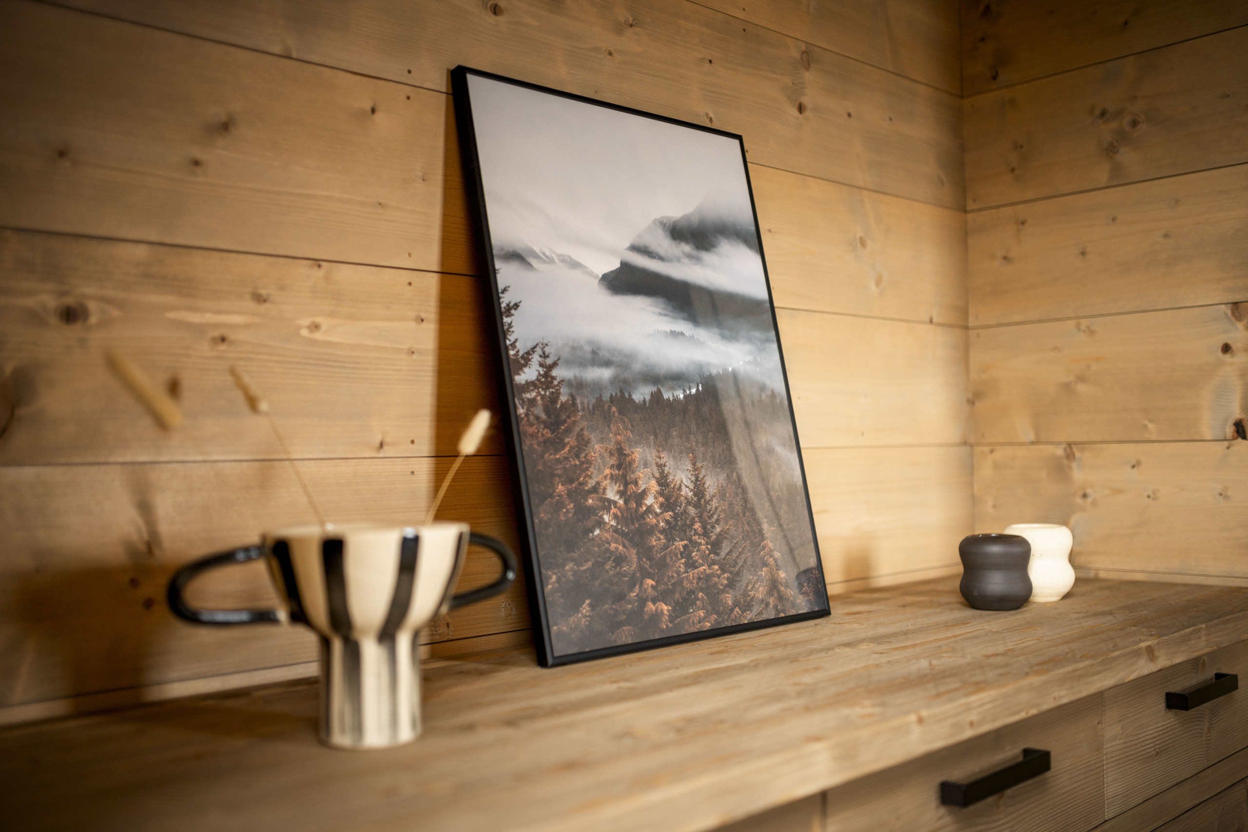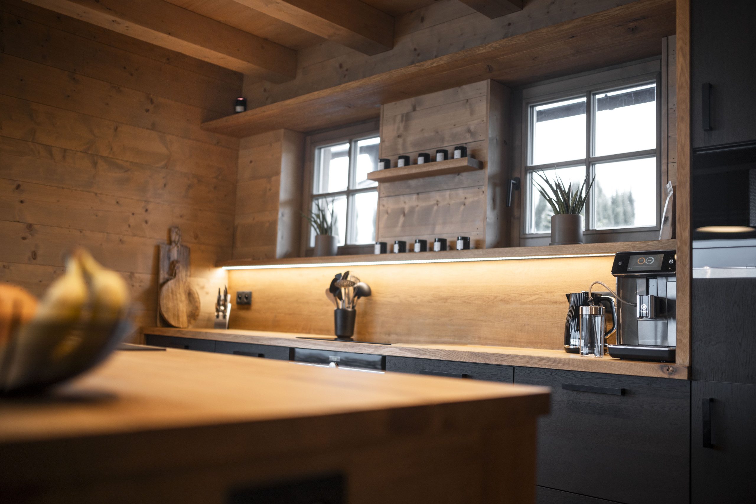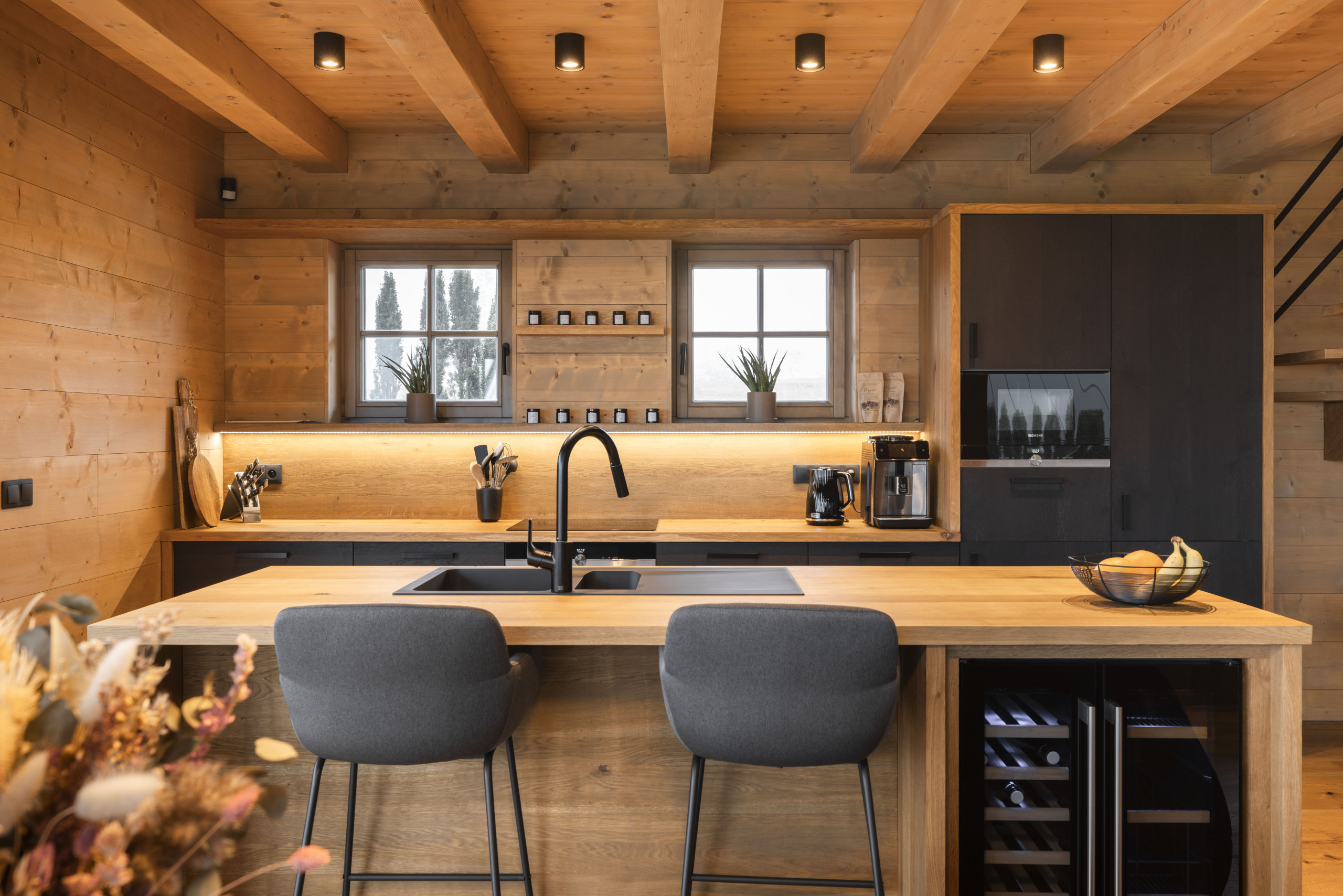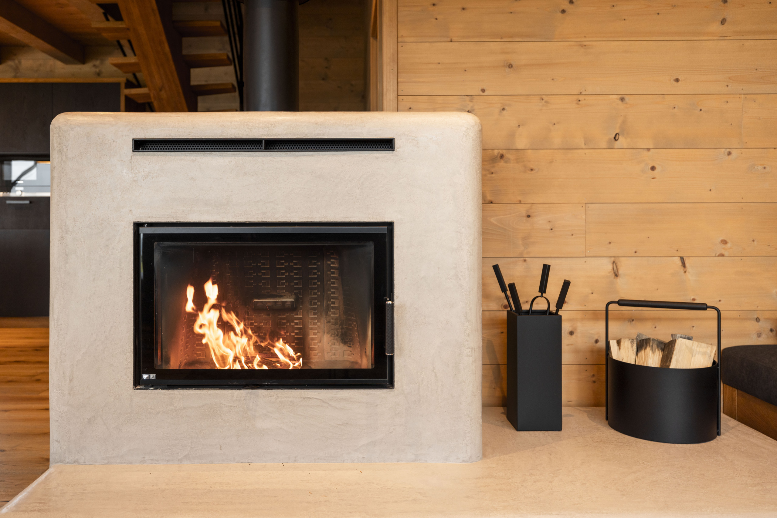 The stylishly furnished holiday home accommodates up to 10 people. On the ground floor, you will find a cozy living area with a fully equipped kitchen, a spacious dining area, and a comfortable sitting nook by the fireplace. Enjoy the breathtaking panoramic views while sipping a fine glass of wine or a warm cup of coffee.