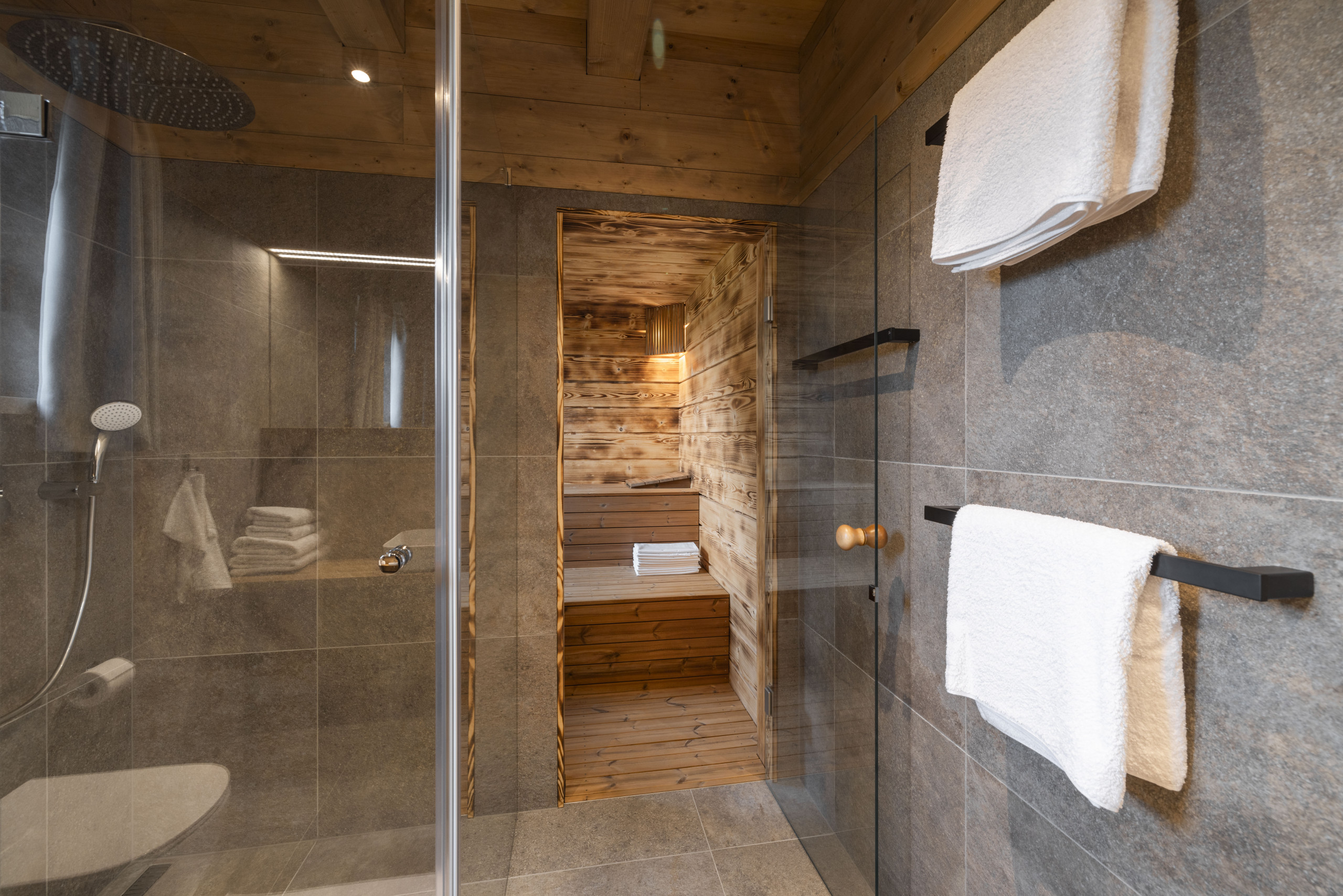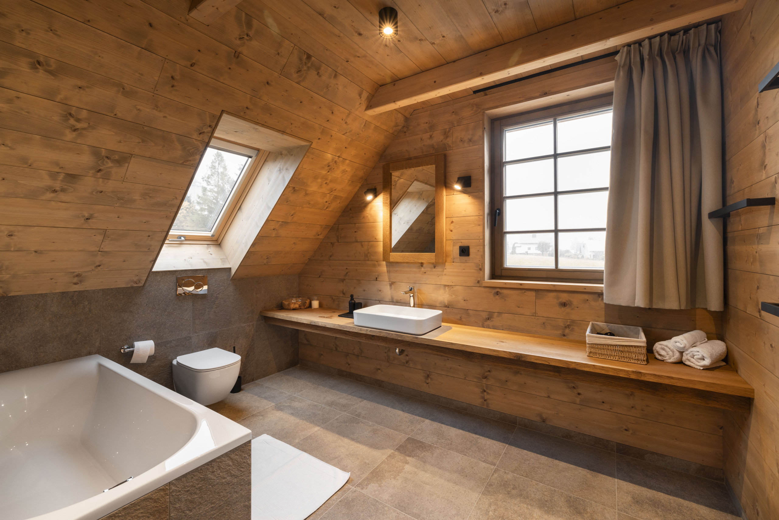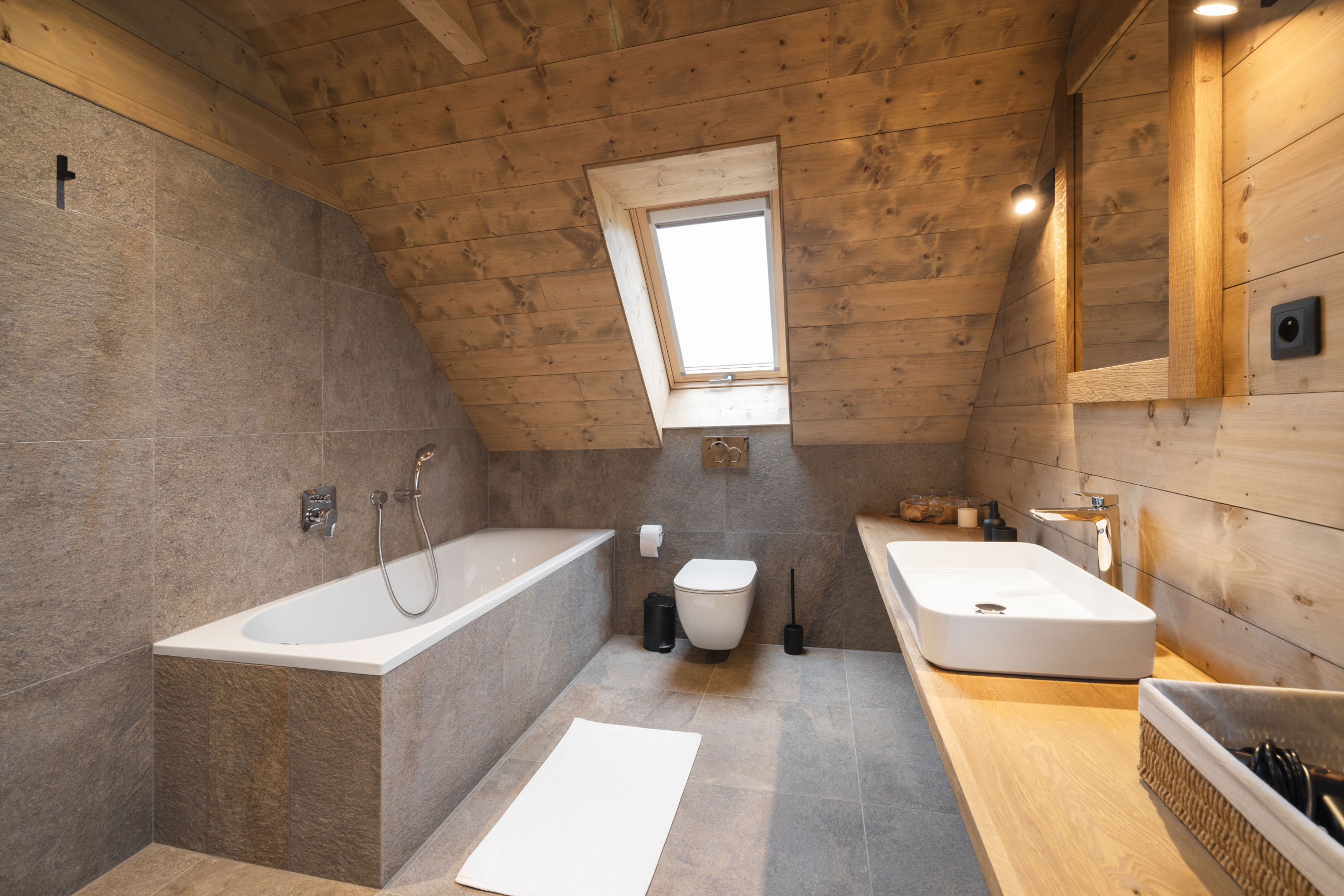 The chalet also offers a fantastic wellness experience. Relax in the sauna or enjoy the warmth of the wood-fired hot tub. Use of both the sauna and the hot tub is free of charge. For the sauna, you only pay for the energy consumed (€0.35/kWh), and for the hot tub, only the briquettes are charged – and only if you use a lot. This way, you can fully enjoy your private wellness moment without any worries.
