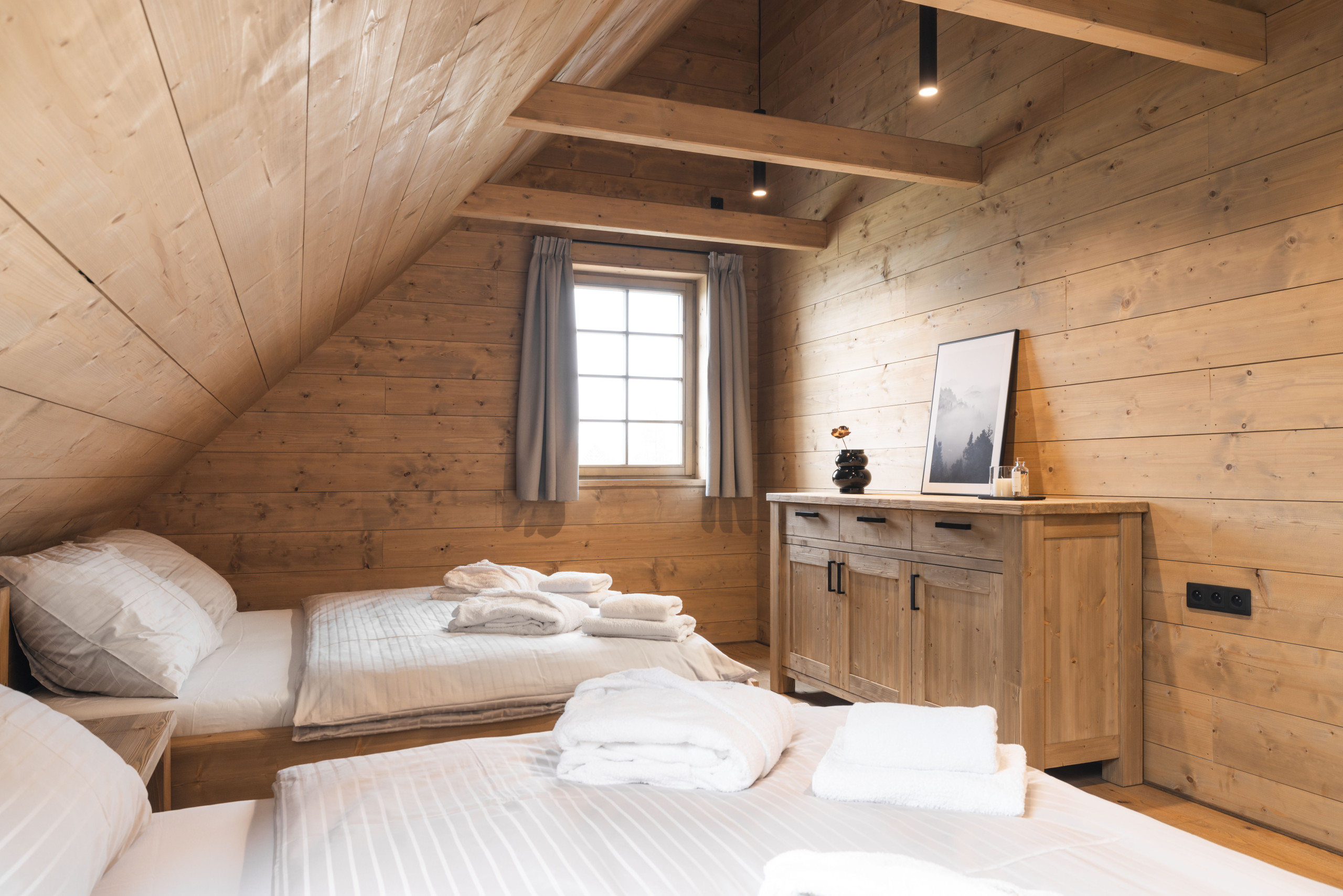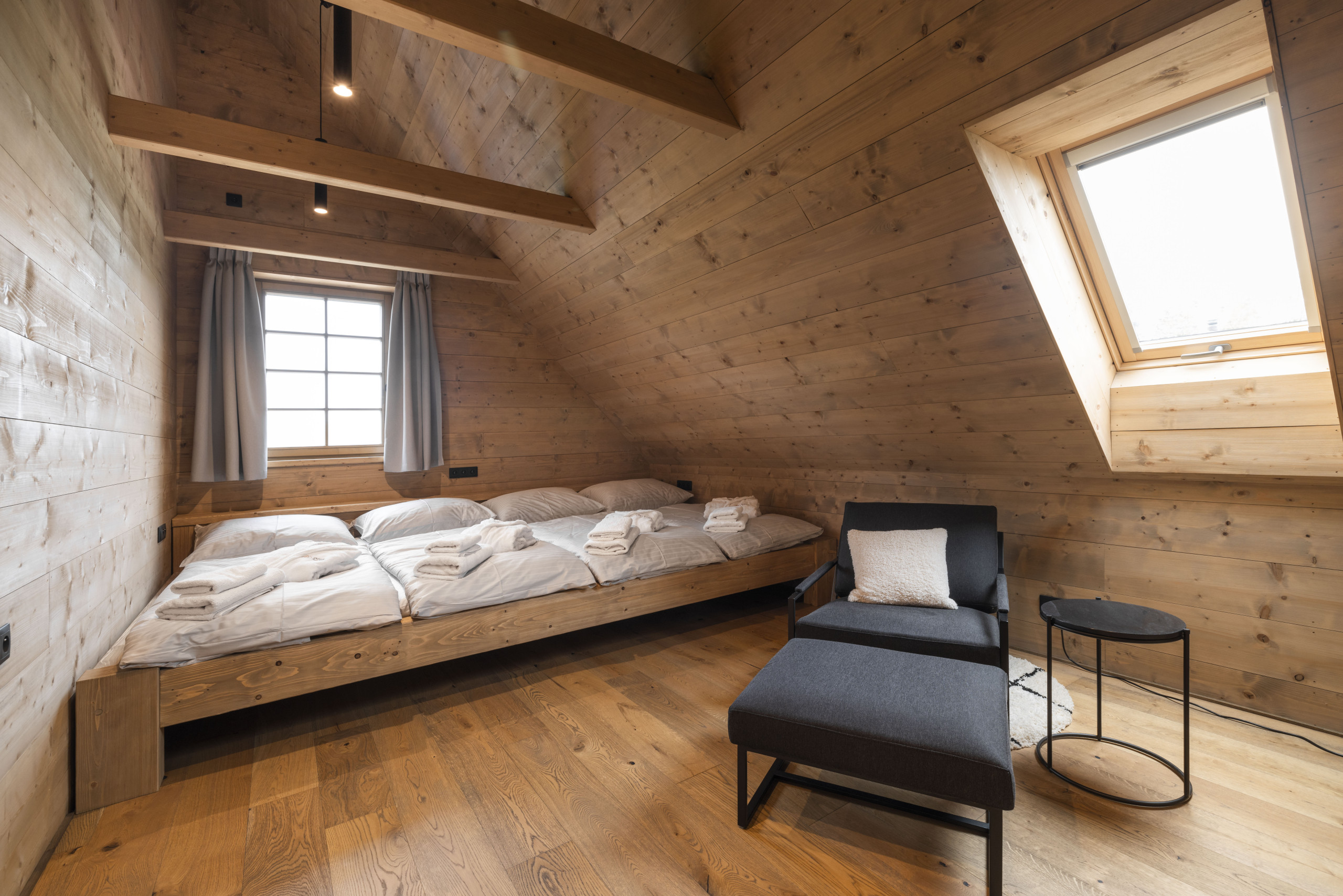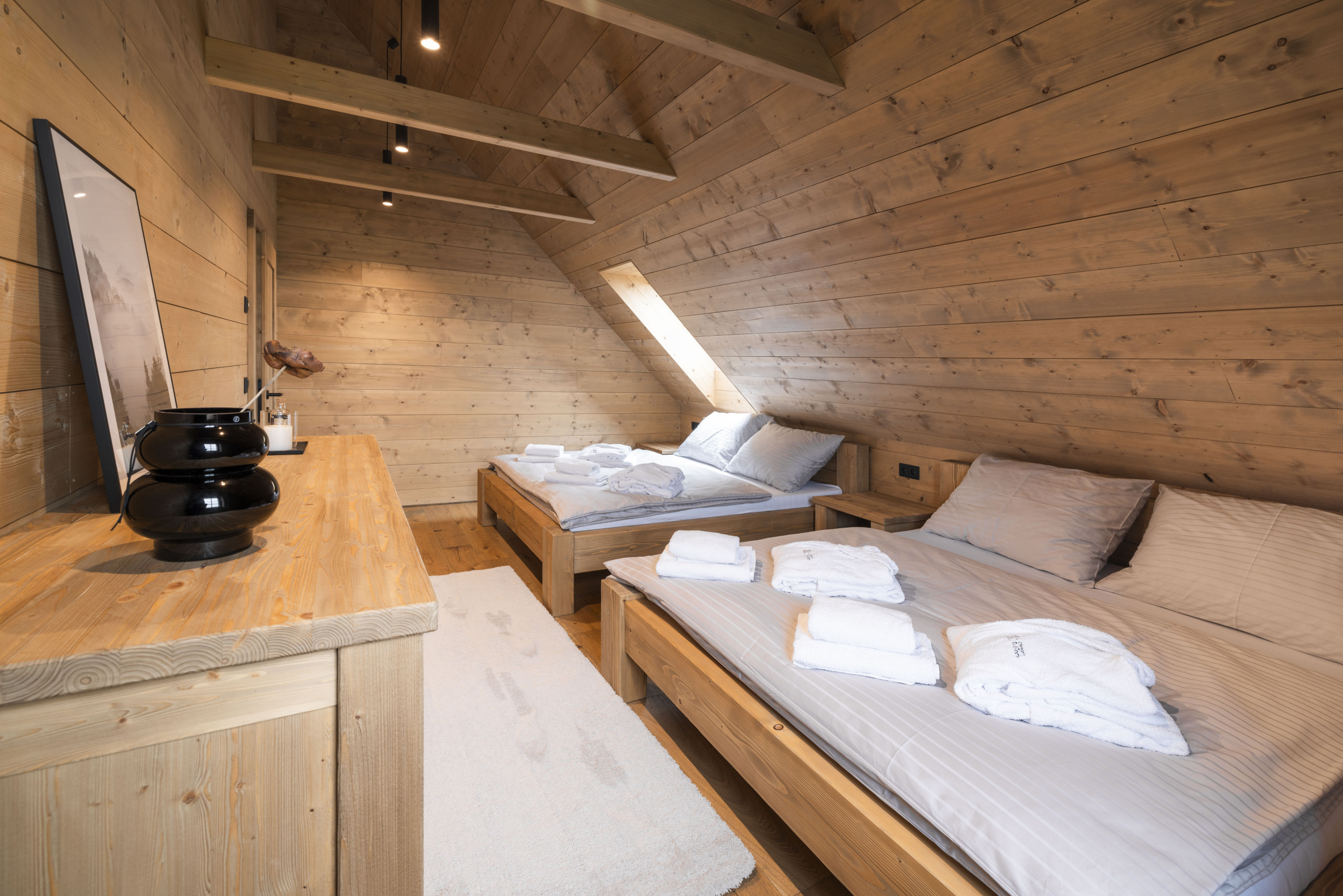 • 1 spacious four-person room with two beds (180x200 cm)