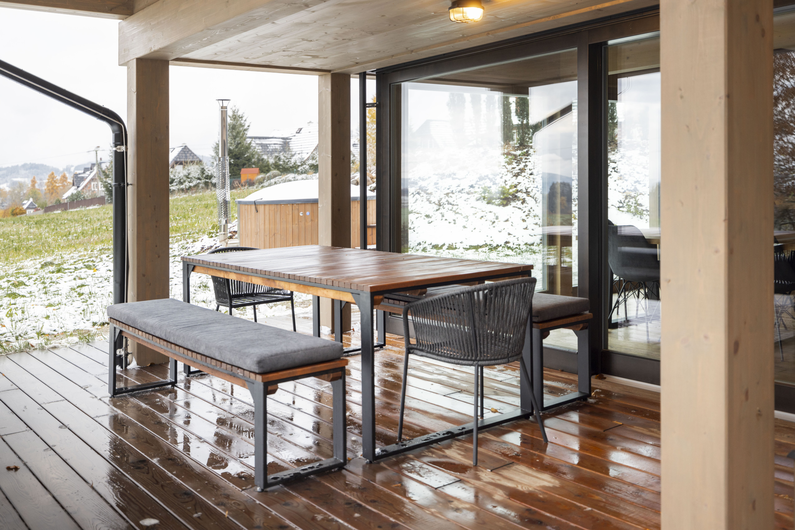 Outdoor life is just as pleasant. Unwind on the terrace with cozy seating and a gas barbecue. Bikes and ski equipment can be stored safely in the storage room.
